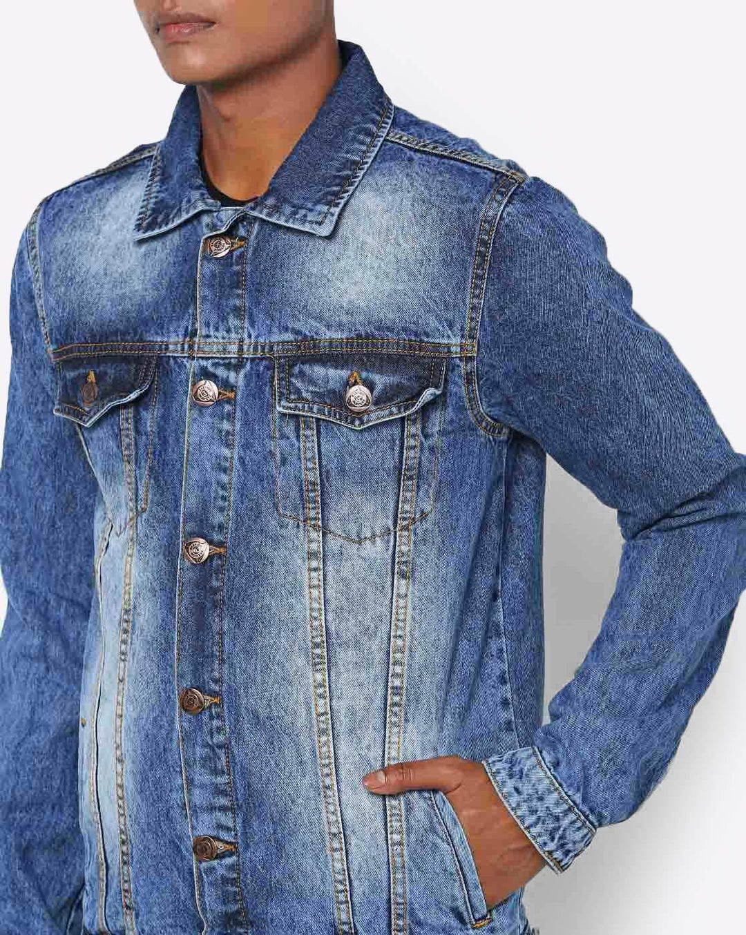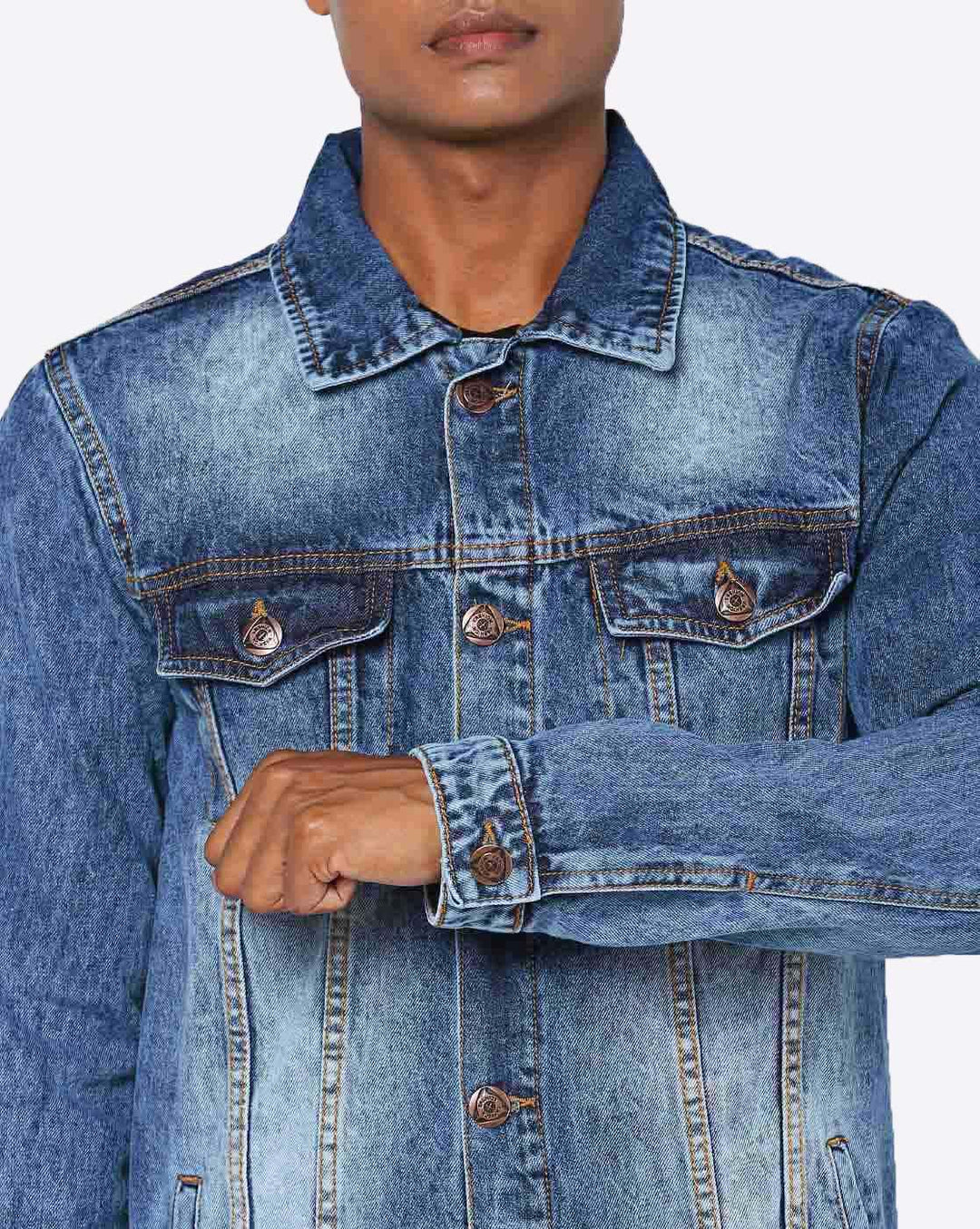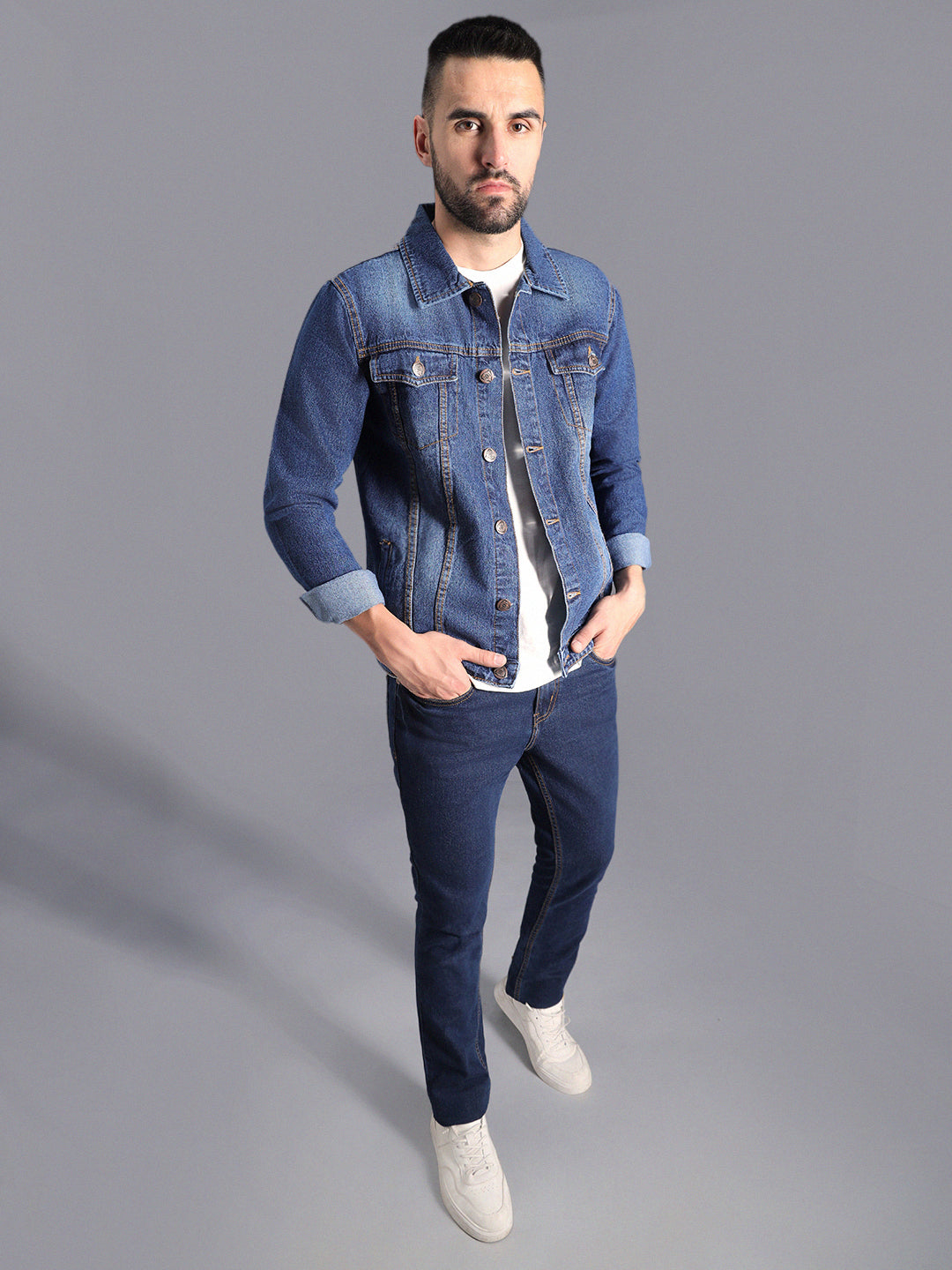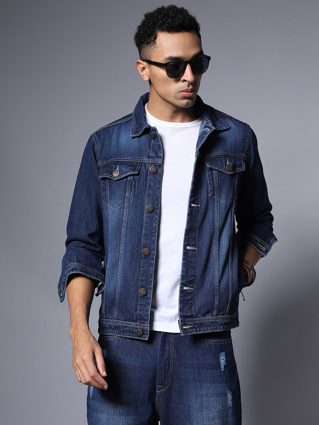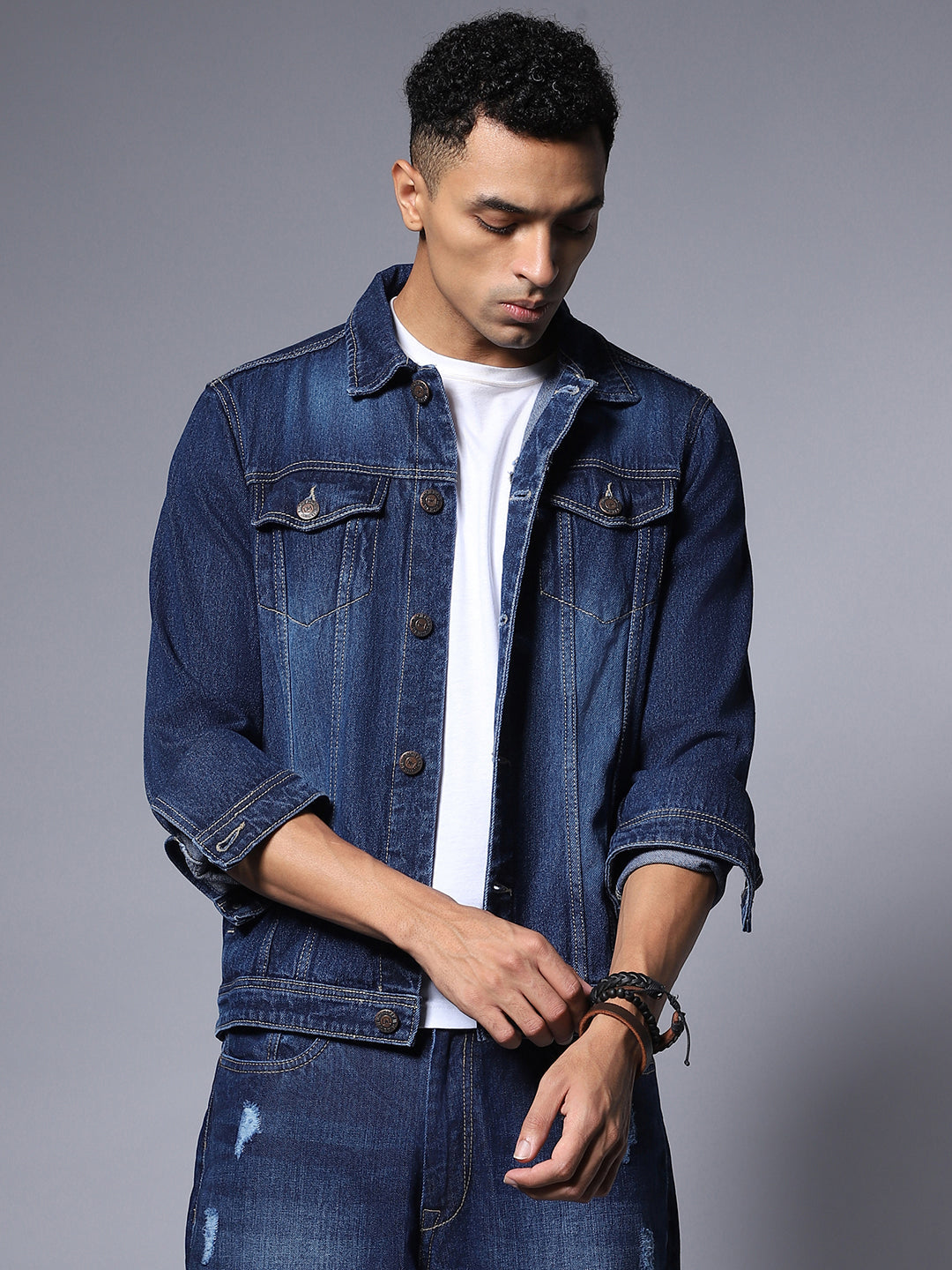 Men's Indigo Washed Regular Fit Fit Collar Full Sleeves Denim Jacket Denim Jacket
