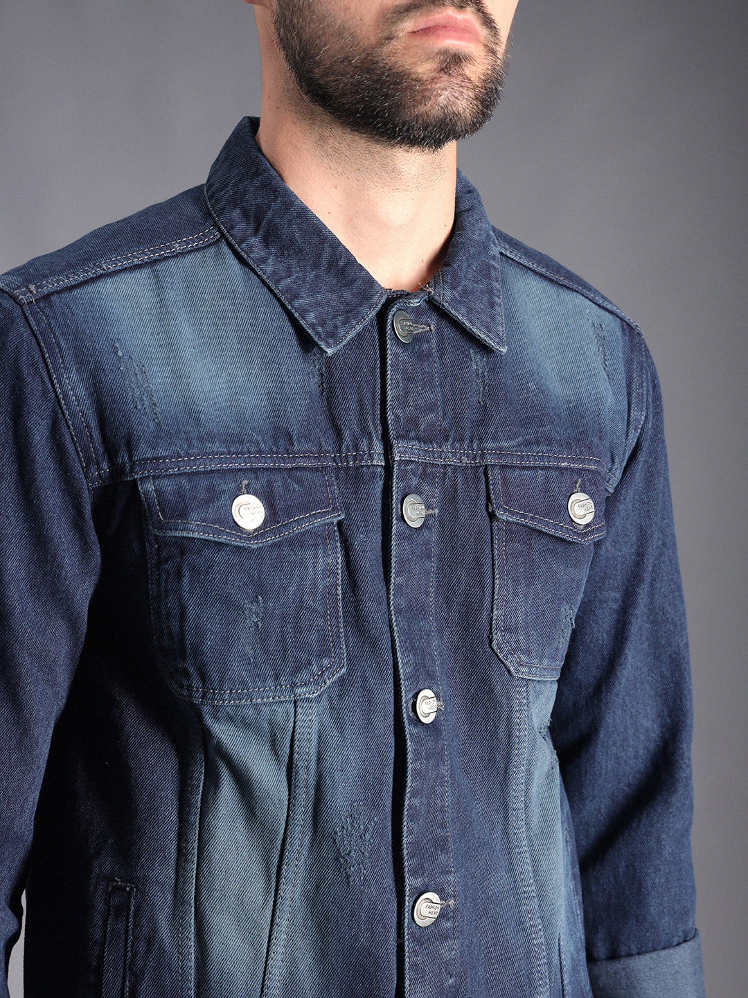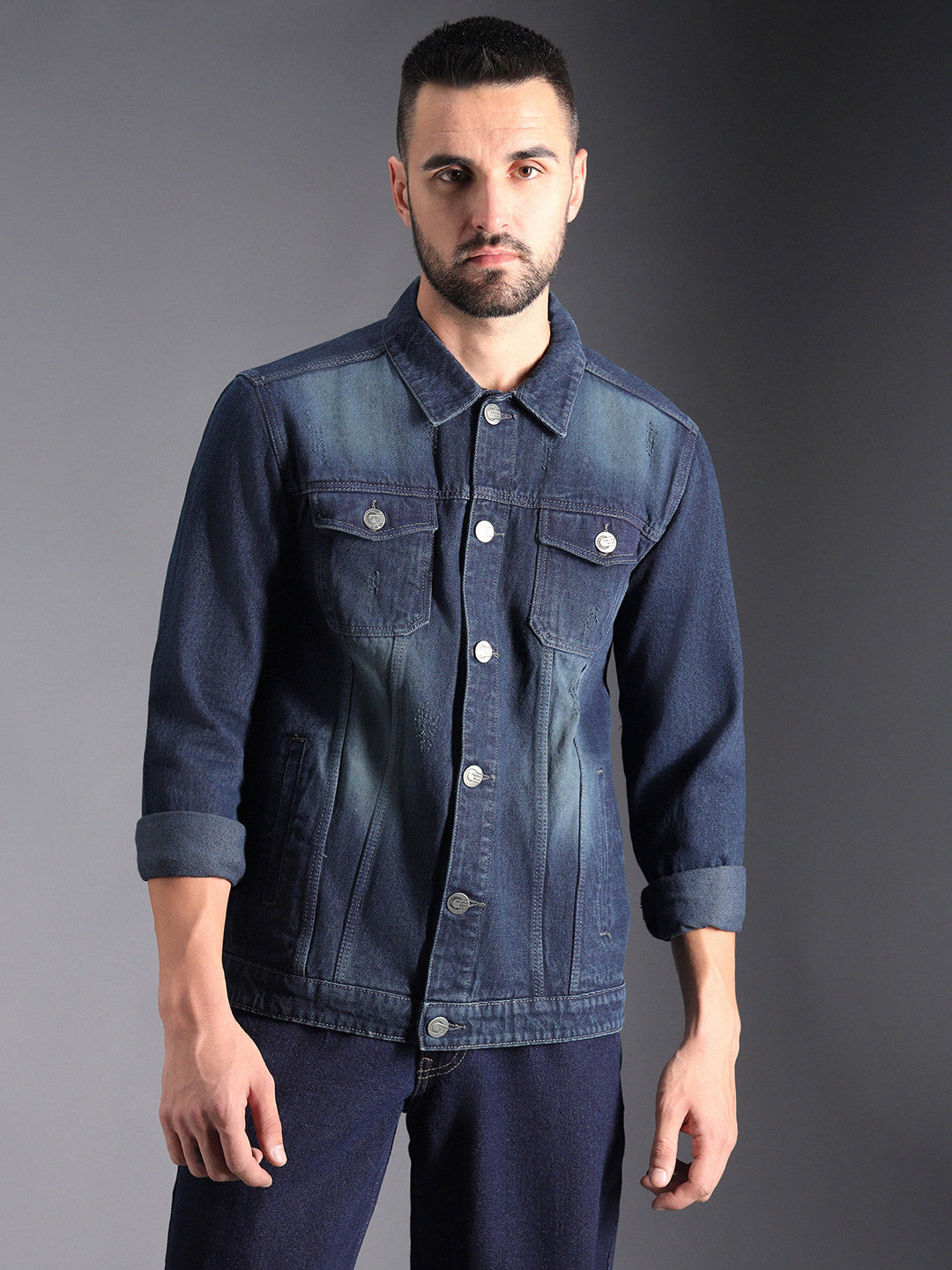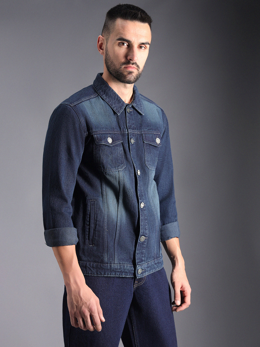 Men's Indigo Washed Regular Fit Fit Collar Full Sleeves Denim Jacket Denim Jacket
