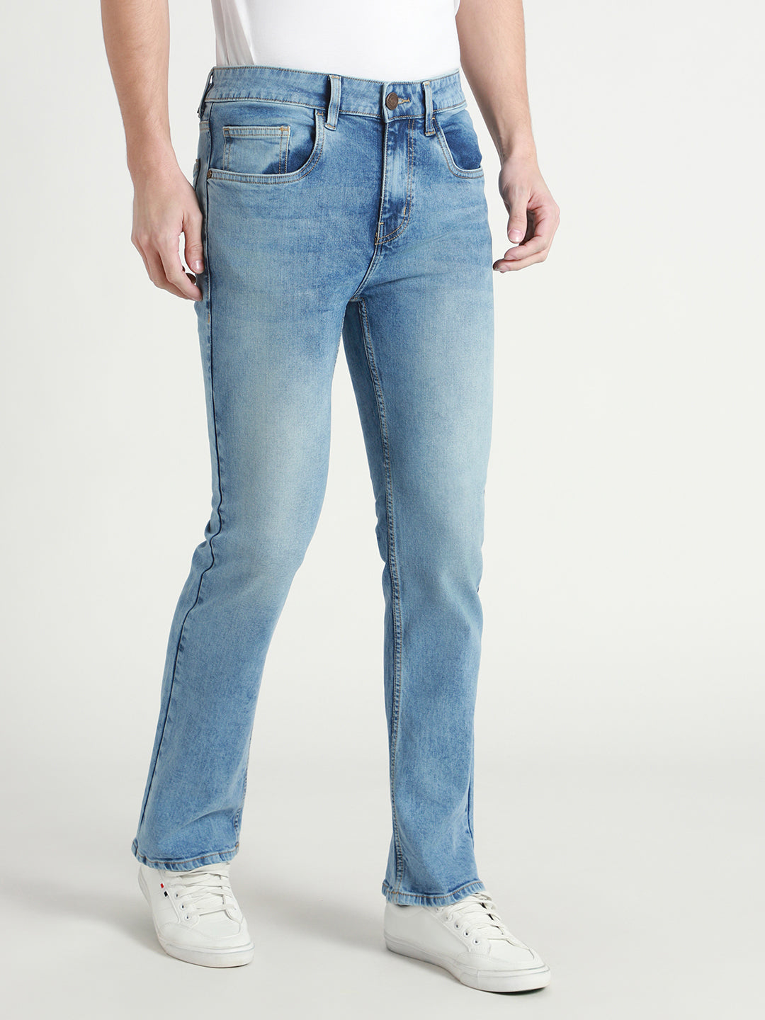 Men's Bootcut light fade Mid Blue Stretchable Jeans