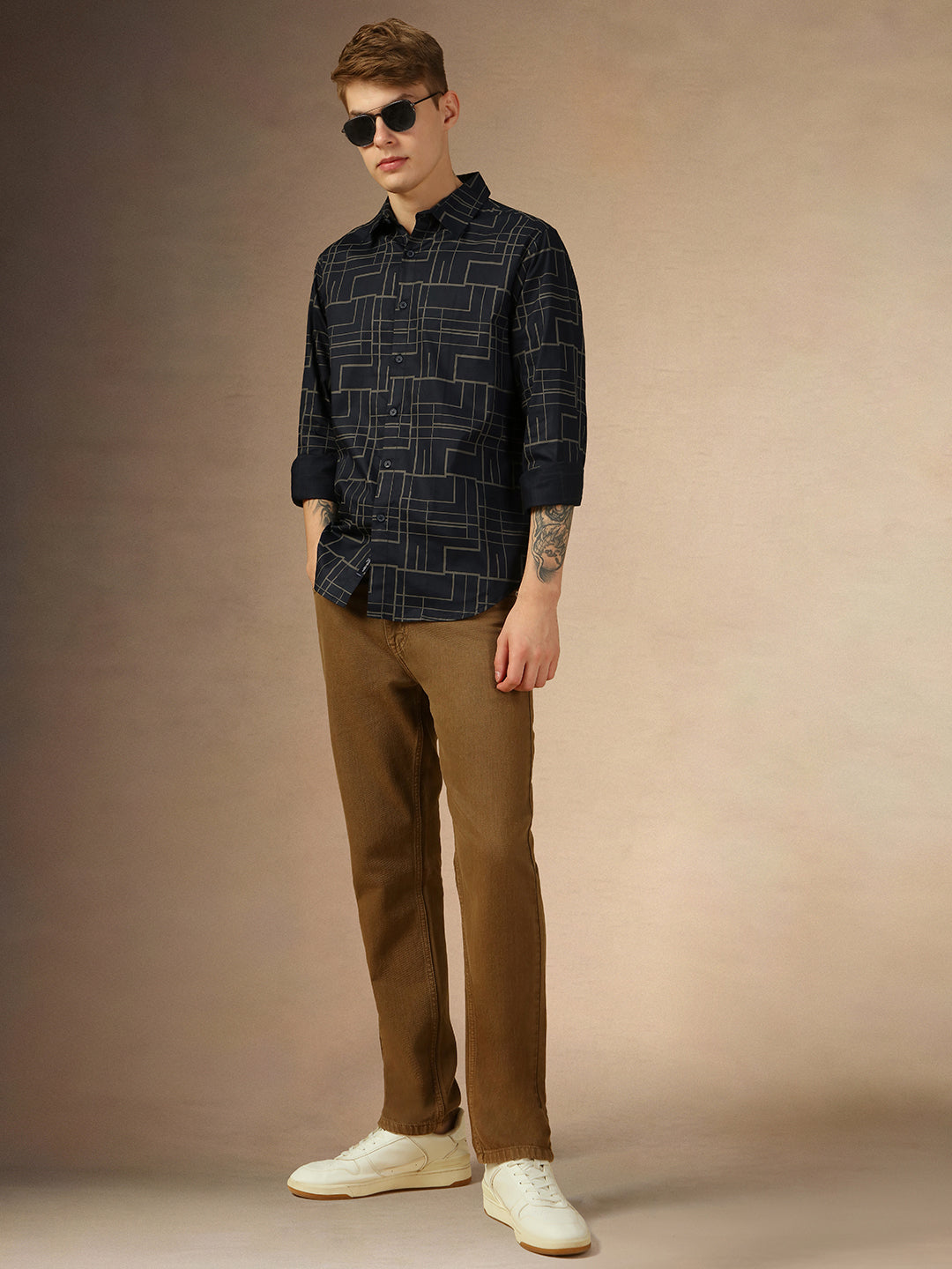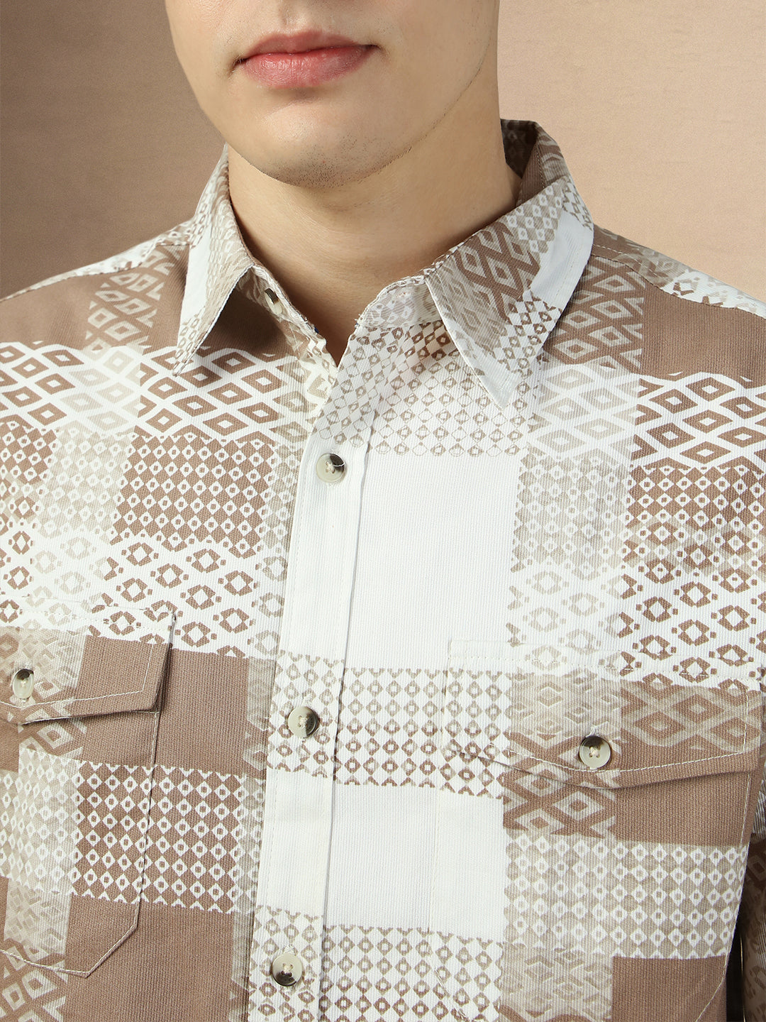 Men's Brown Printed Spread Collar Full Sleeves Relaxed Fit Shirt