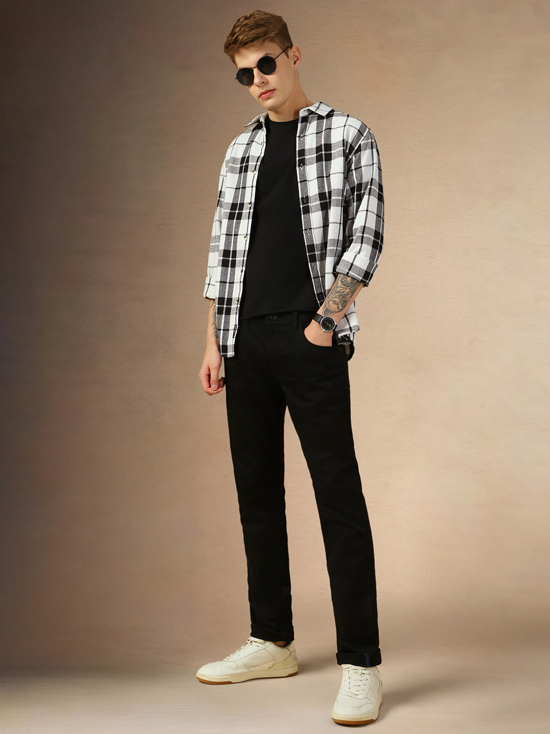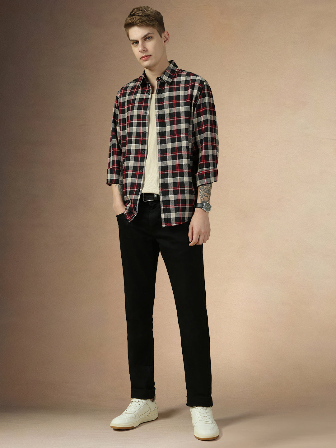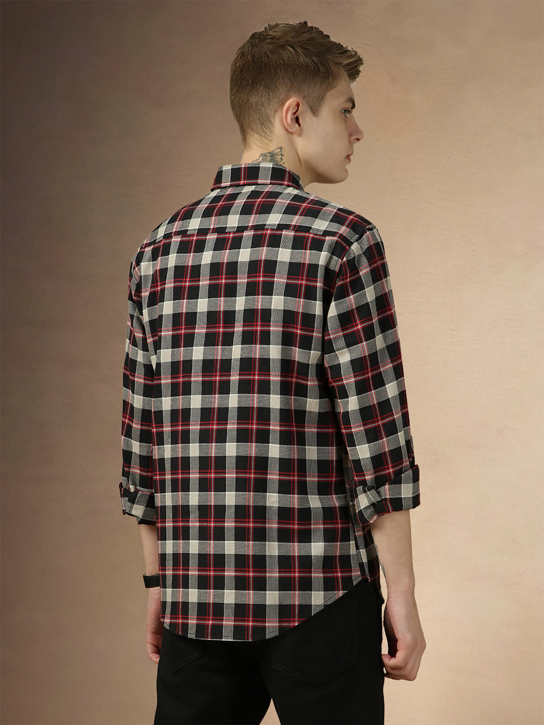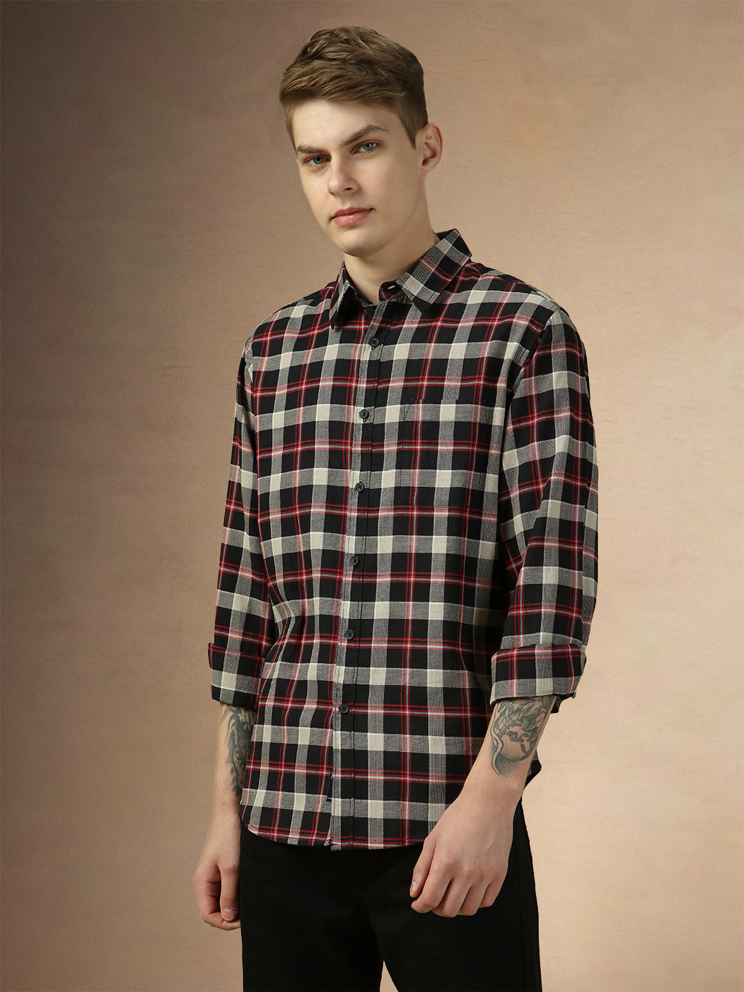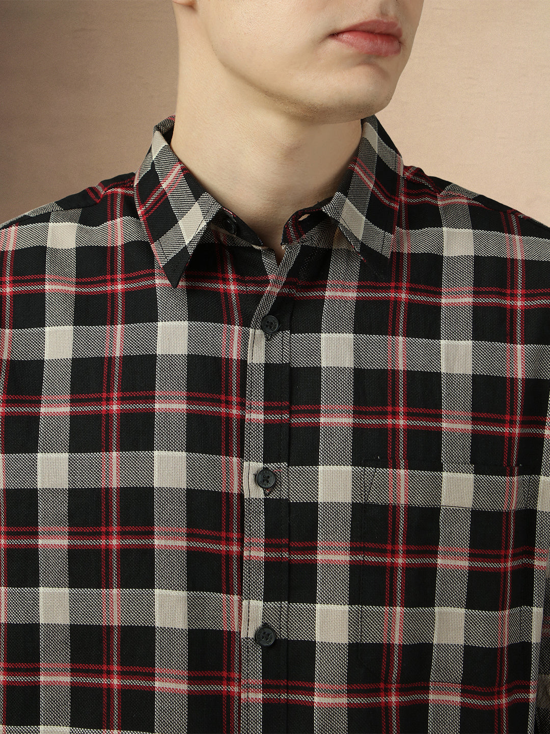 Men's Black Checks Spread Collar Full Sleeves Relaxed Fit Shirt
