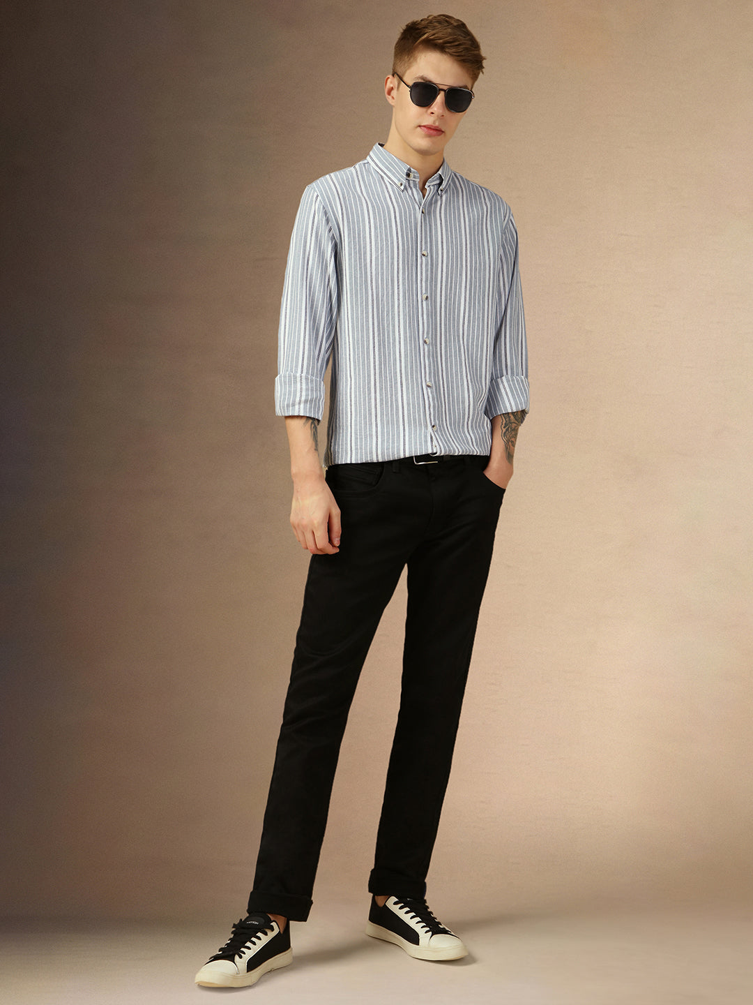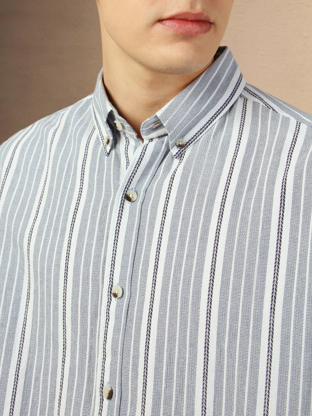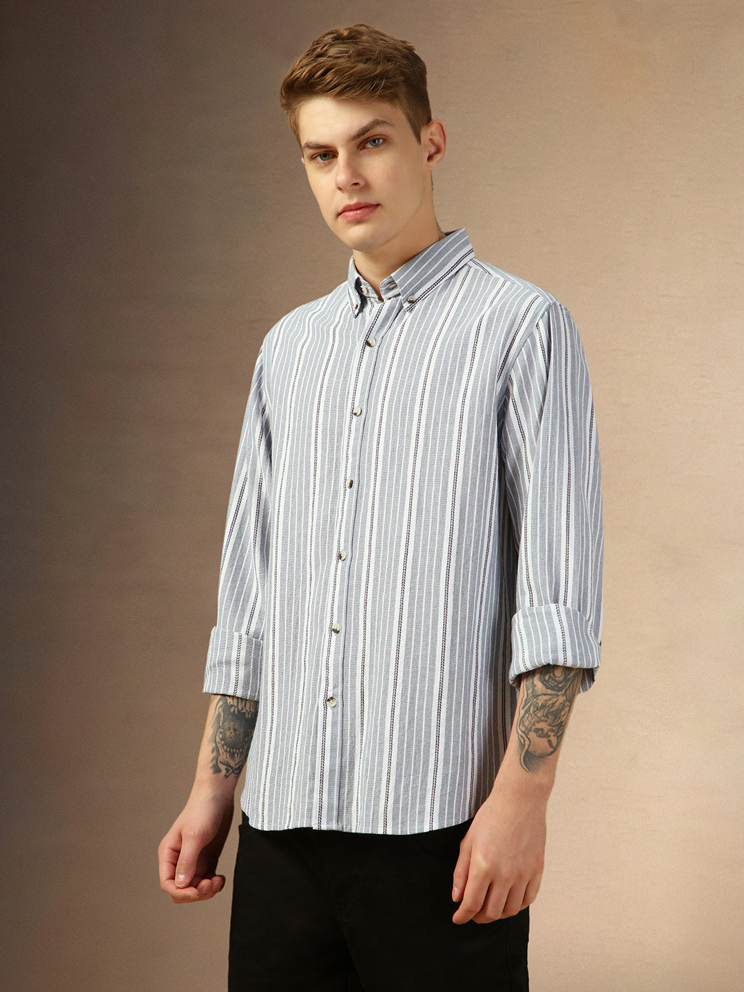 Men's Blue Striped Button Down Collar Full Sleeves Relaxed Fit Shirt