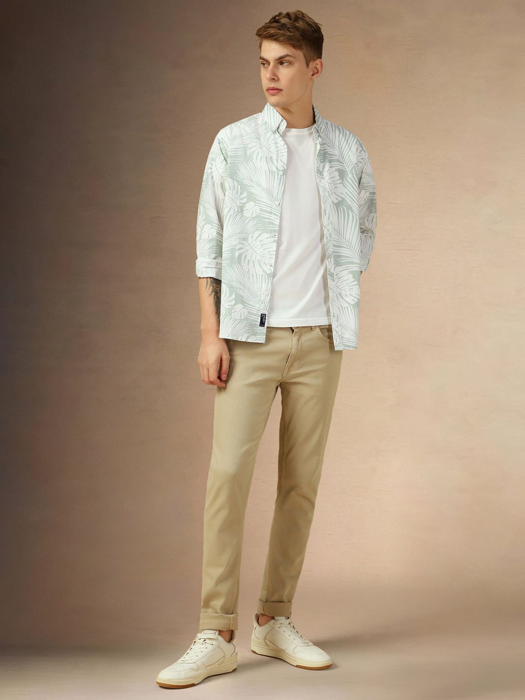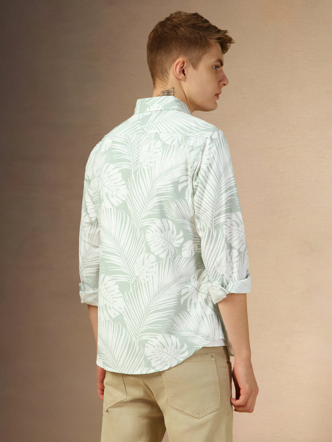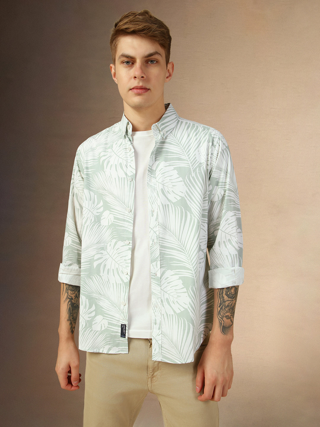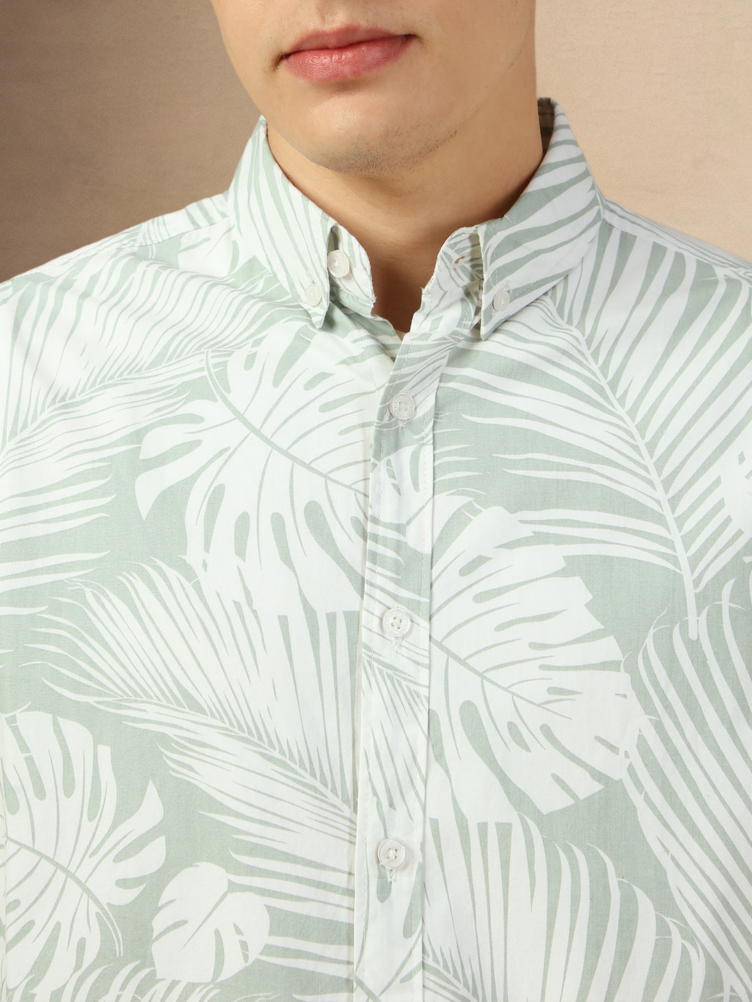 Men's Sage Green Printed Button down Collar Full Sleeves Relaxed Fit Shirt
