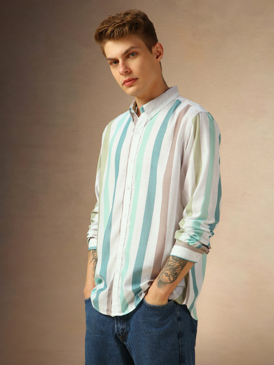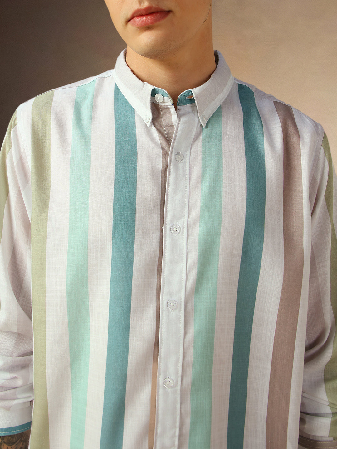 Men's Multi Color Printed Stripes Button Down Collar Full Sleeves Shirt