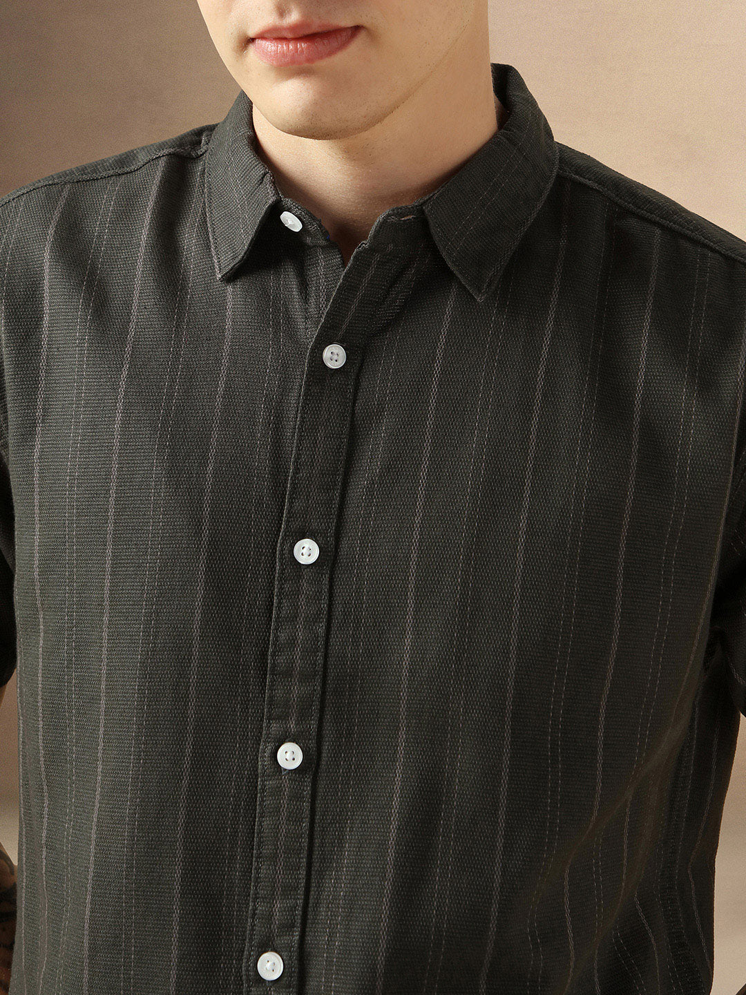 Men's Grey Textured Spread Collar Full Sleeves 100% Cotton Casual Shirt
