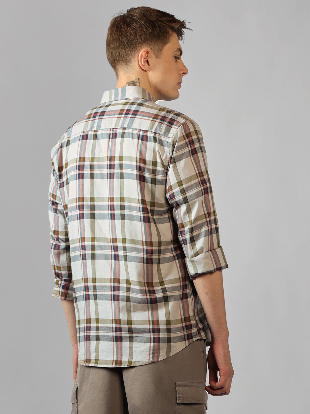 Men's Off-White Checks Button Down Collar Full Sleeve Regular Fit Shirt