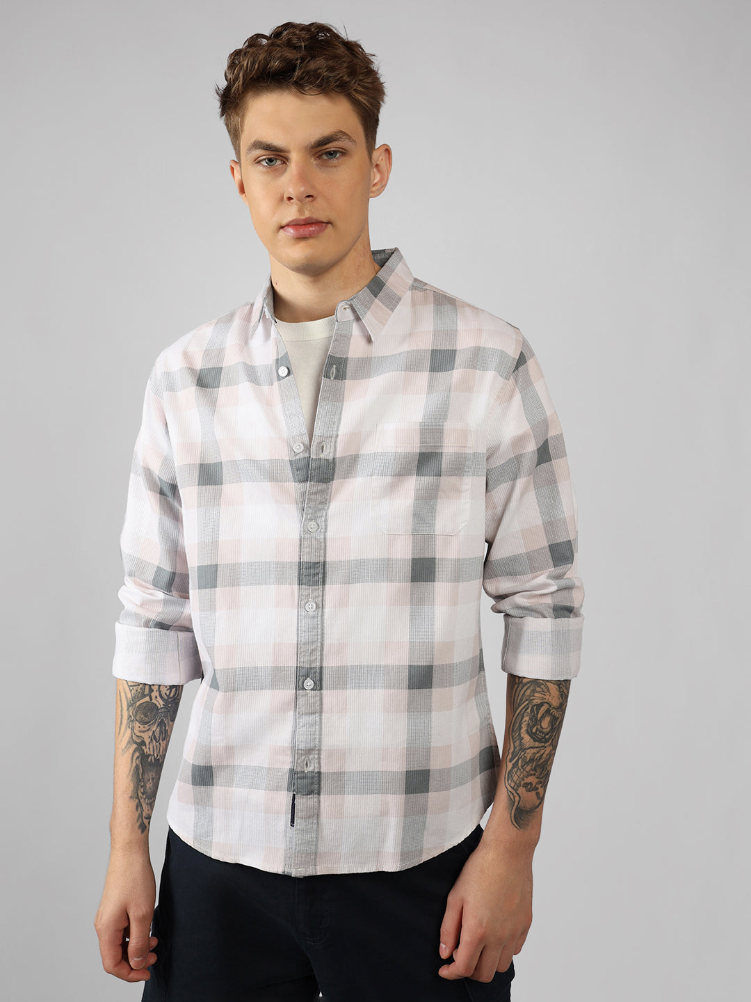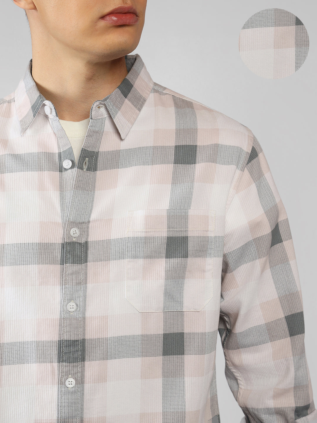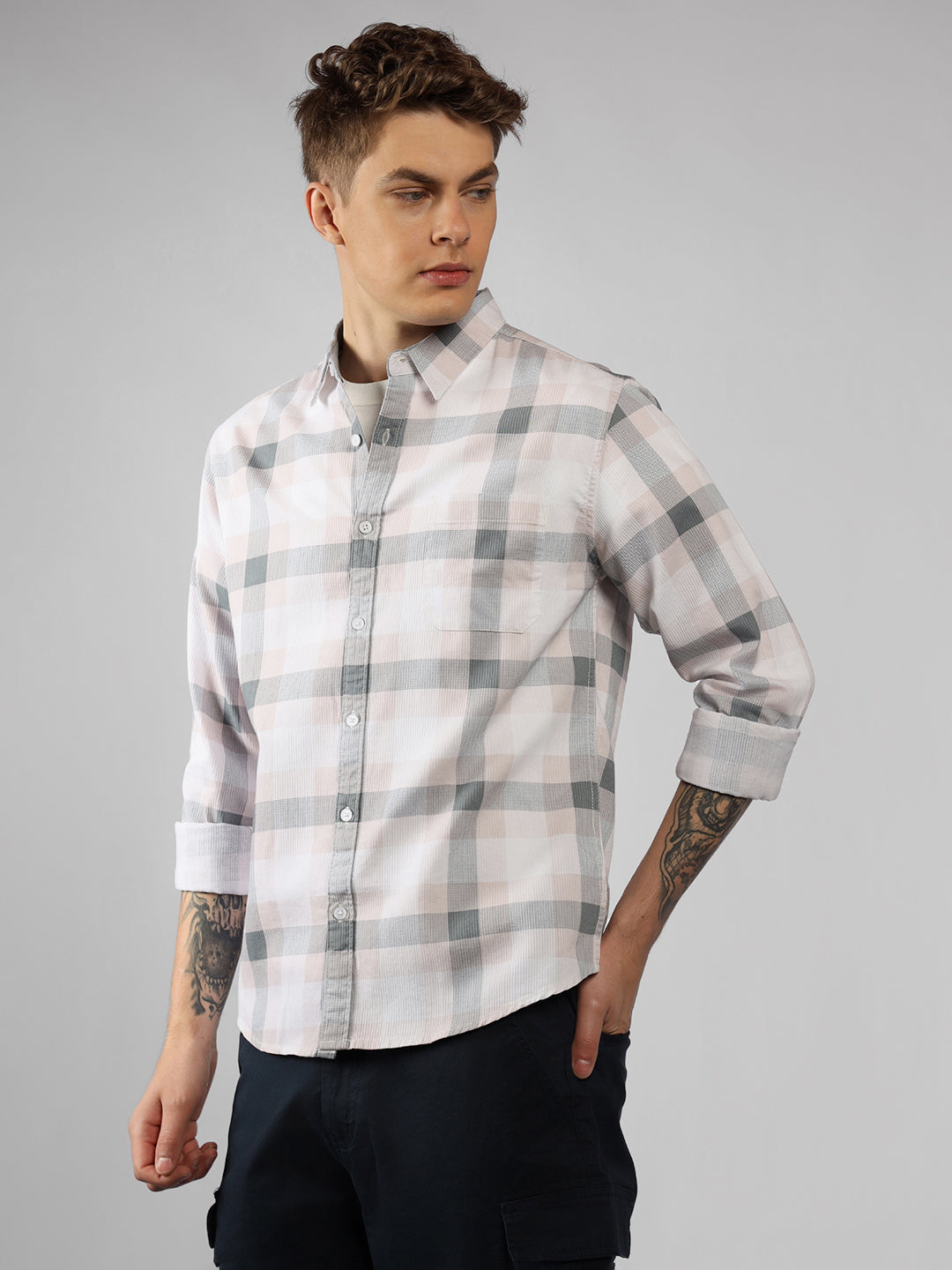 Men's Pink Checks Spread Collar Full Sleeve Regular fit Shirt