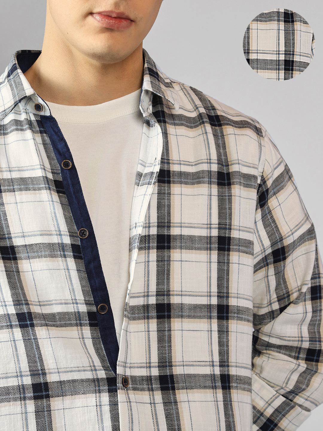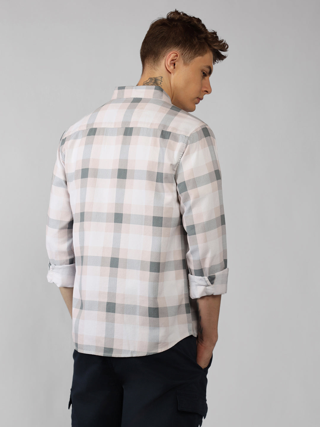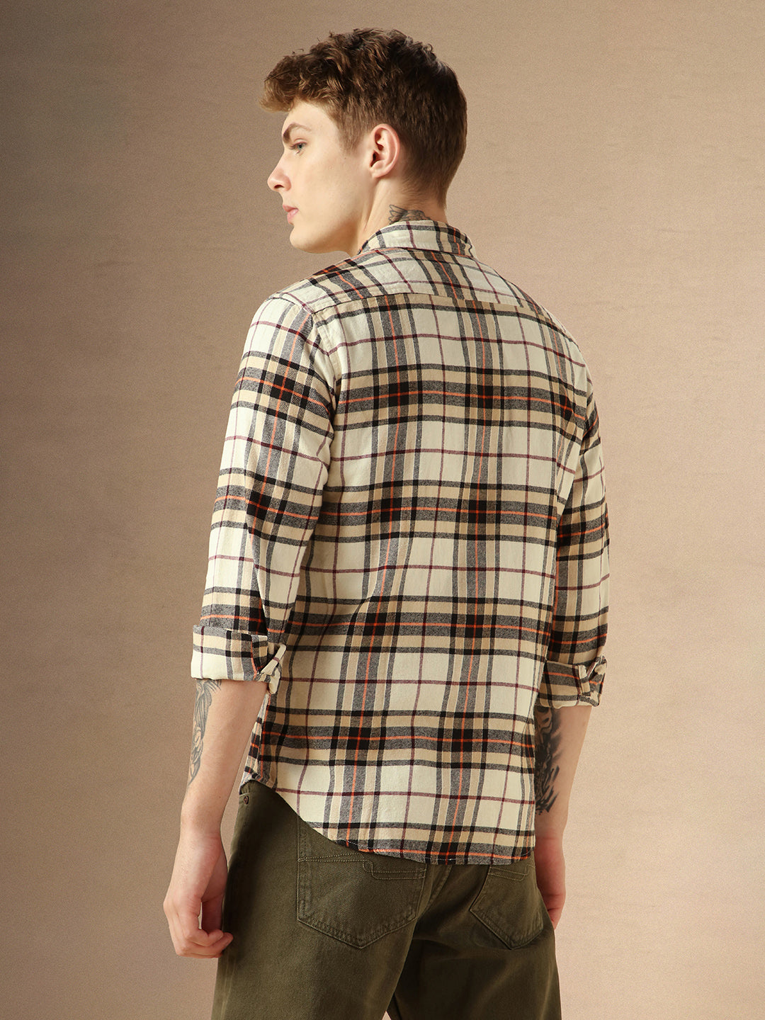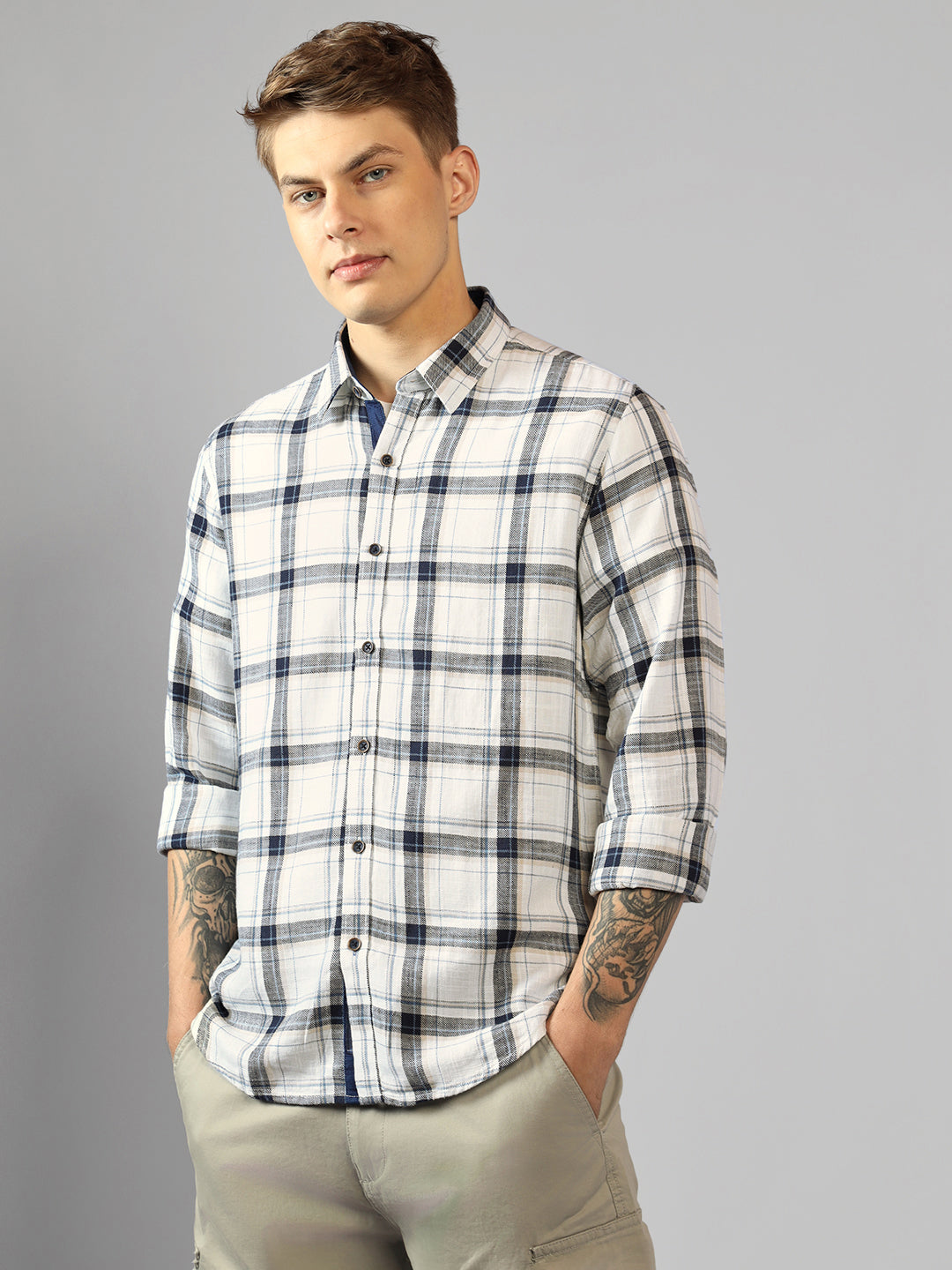 Men's Off-White Checks Spread Collar Full Sleeve Regular Fit Shirt
