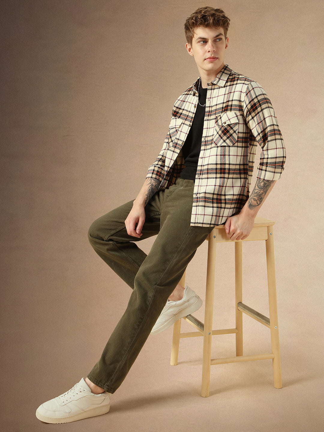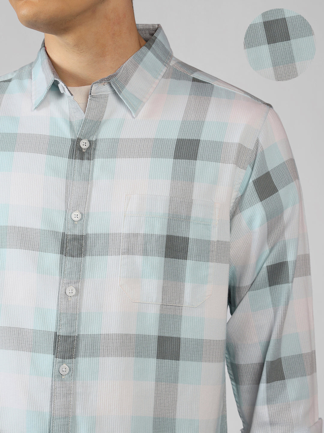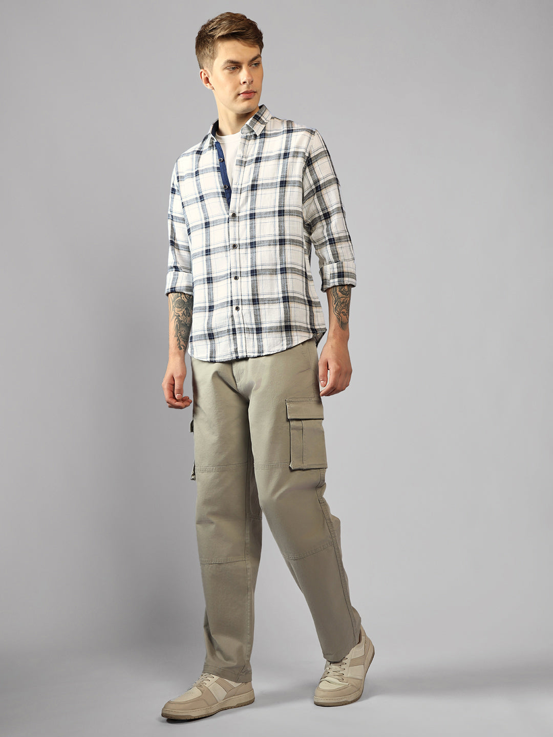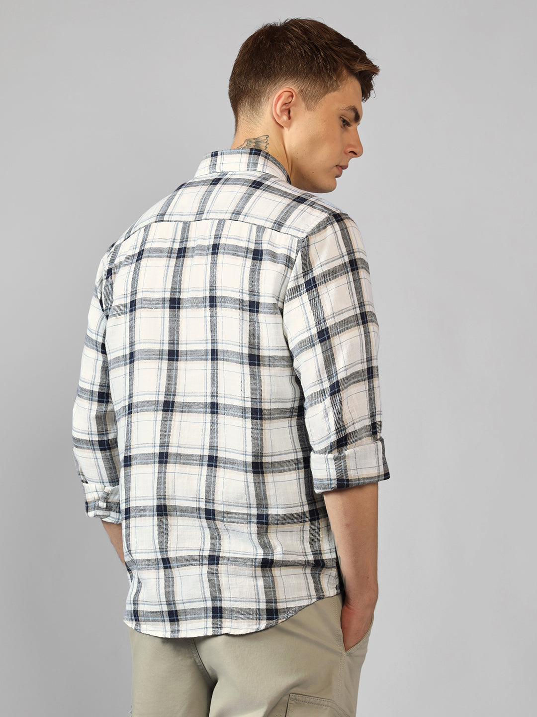 Men's Off-White Checks Spread Collar Full Sleeve Regular Fit Shirt