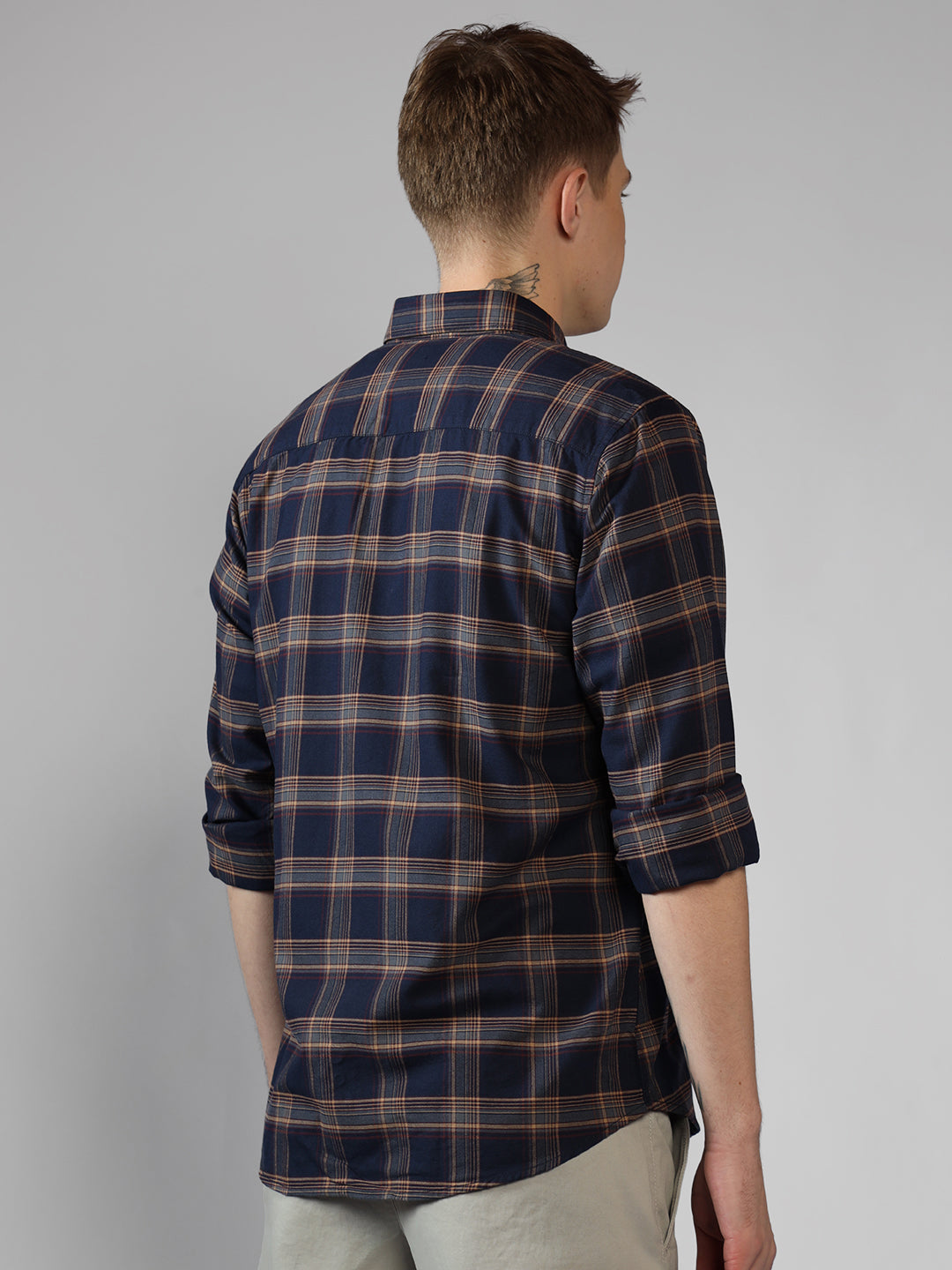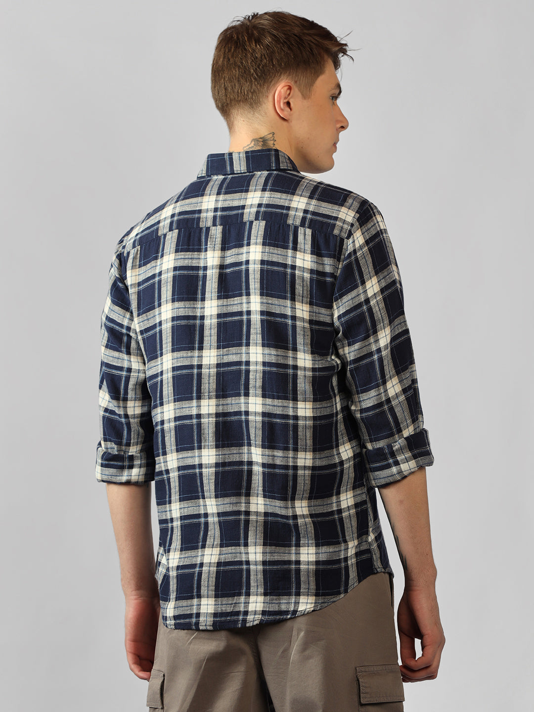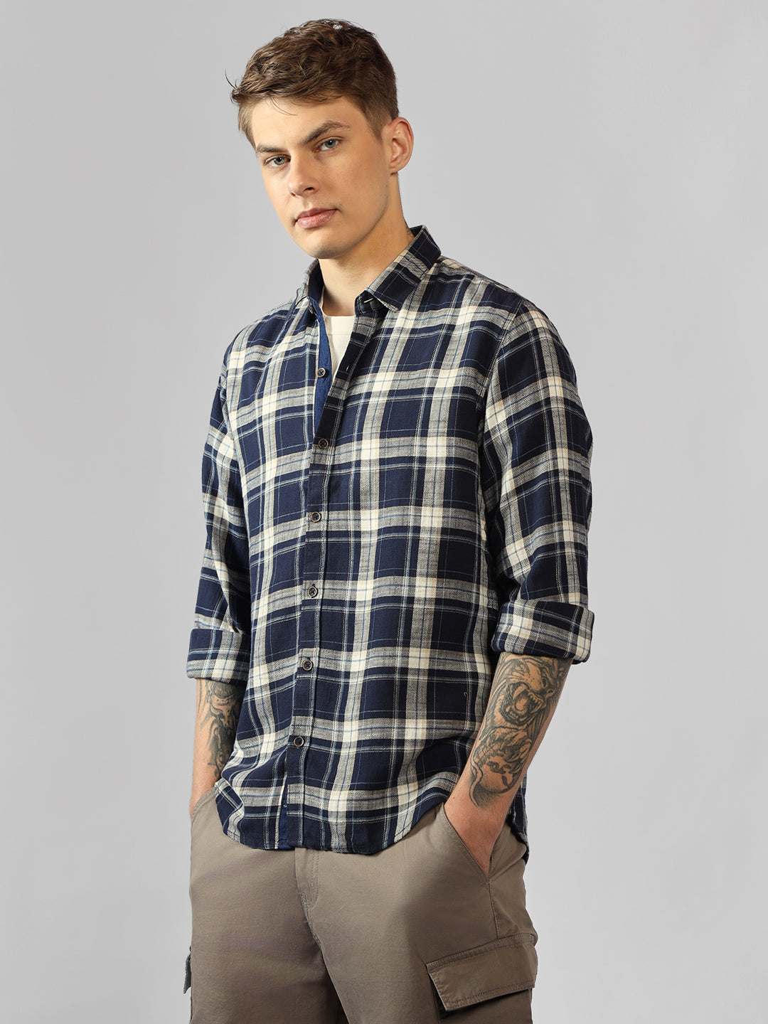 Men's Indigo Checks Spread Collar Full Sleeve Regular Fit Shirt