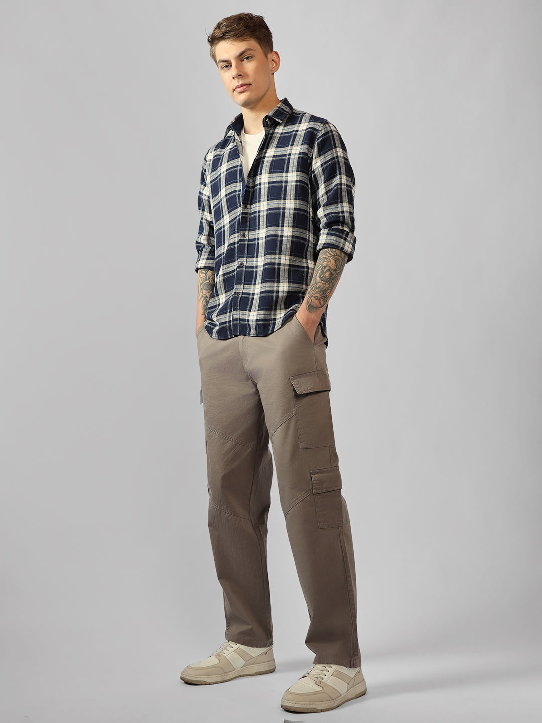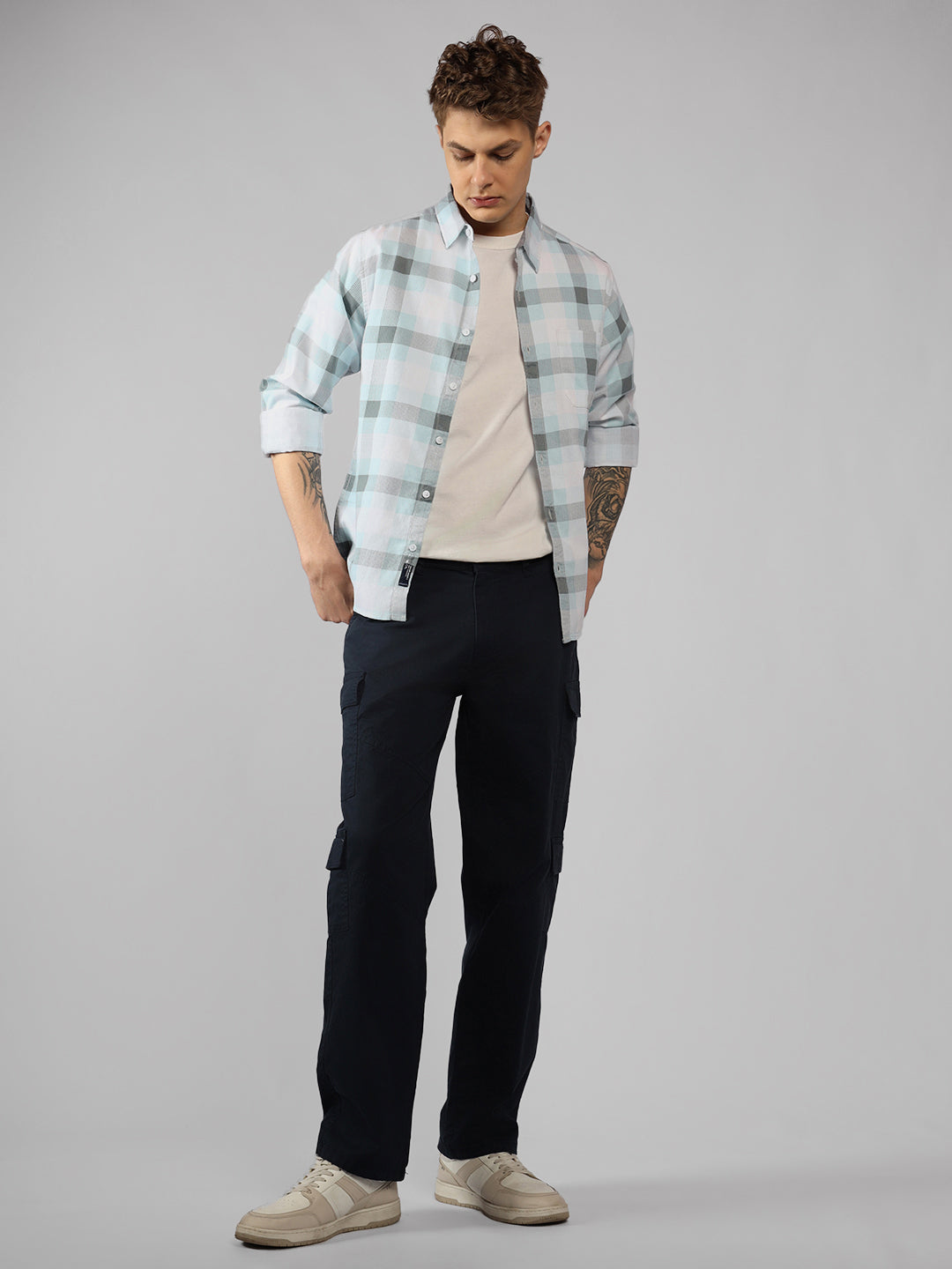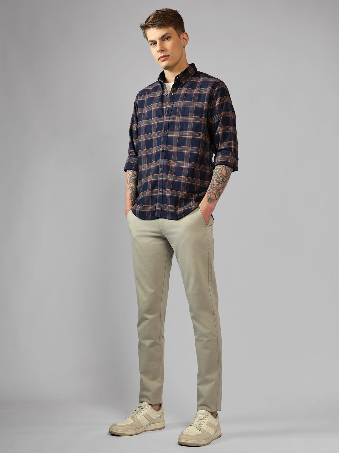 Men's Indigo Checks Spread Collar Full Sleeve Regular Fit Shirt