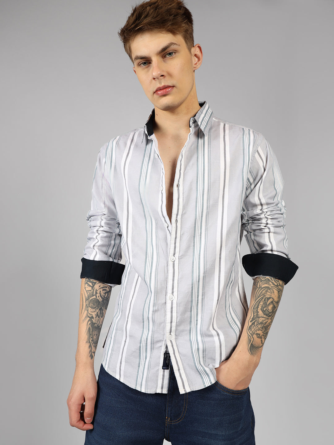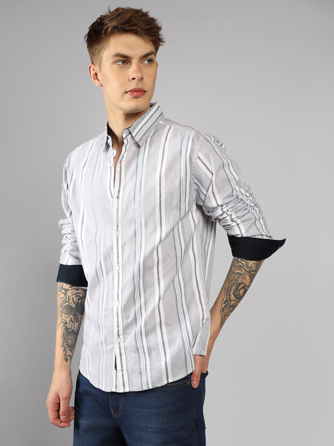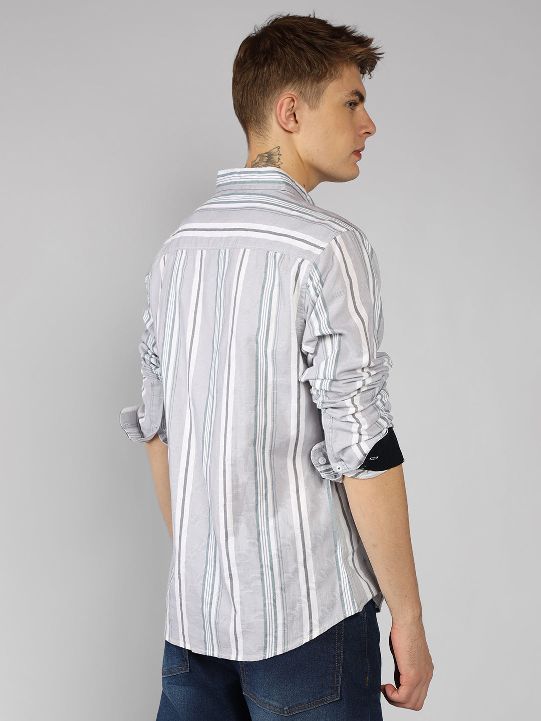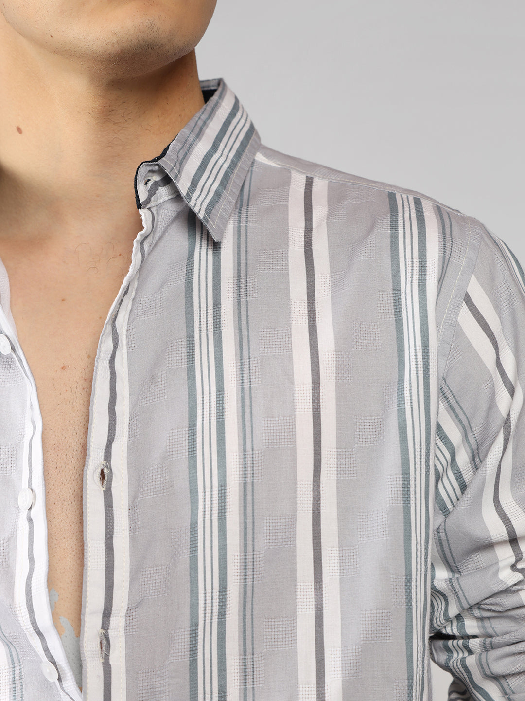 Men's Ash Striped Spread Collar Full Sleeve Regular Shirt