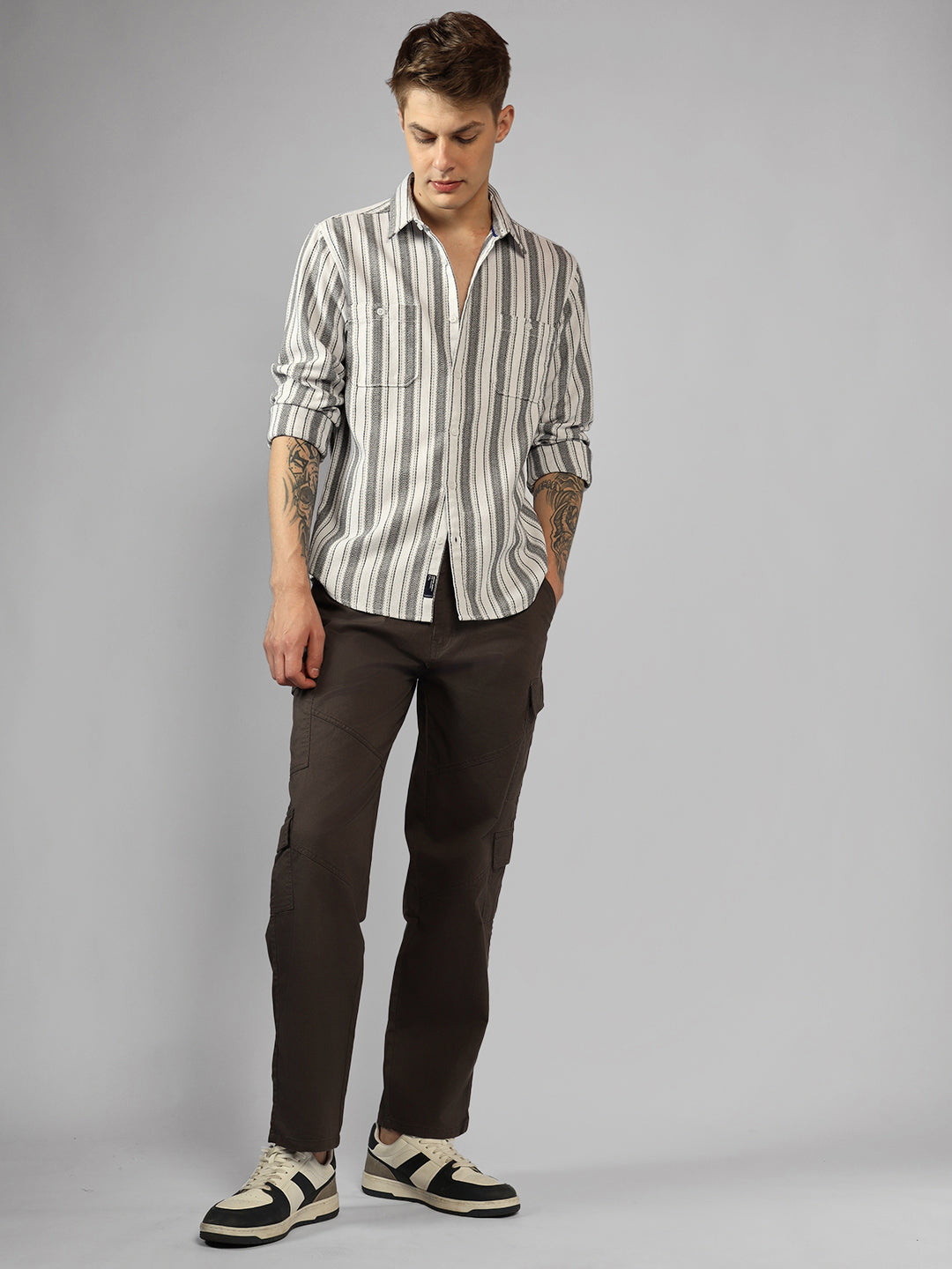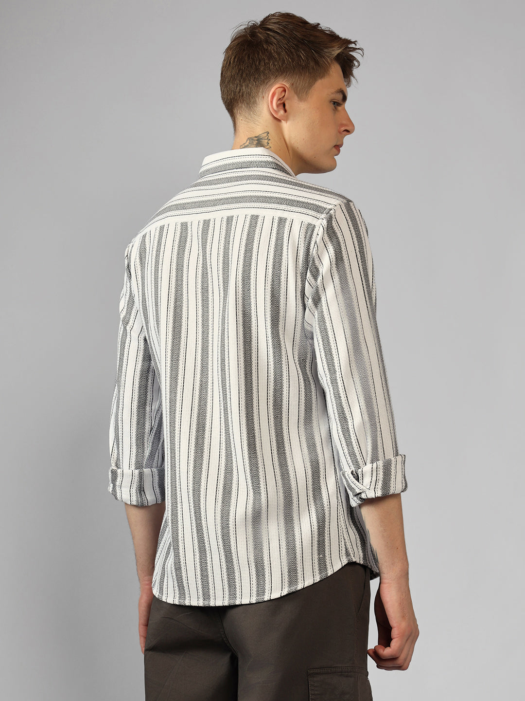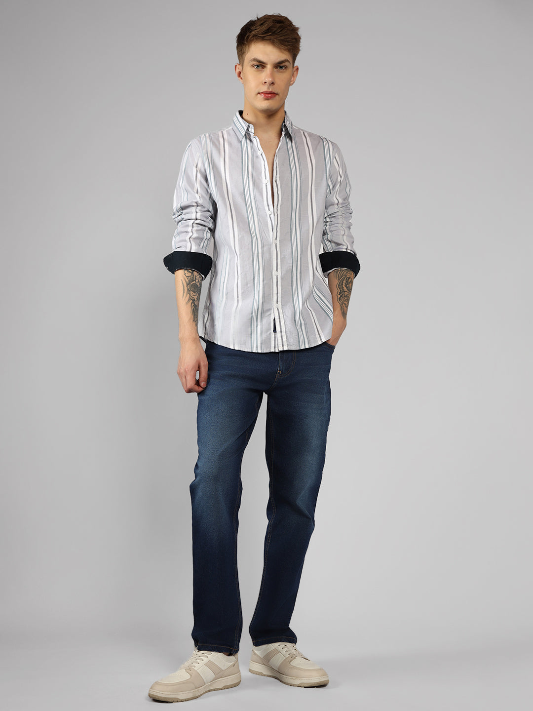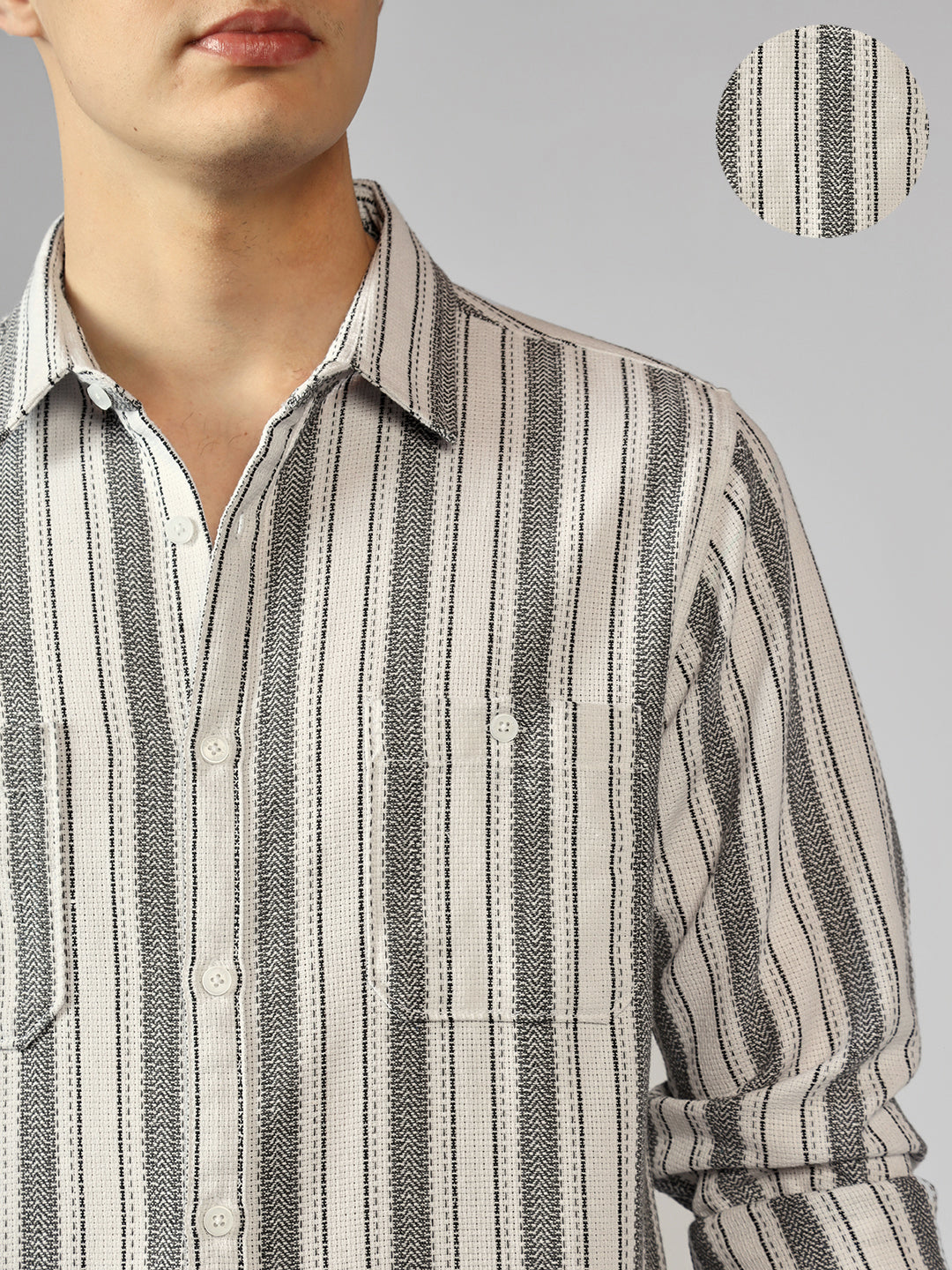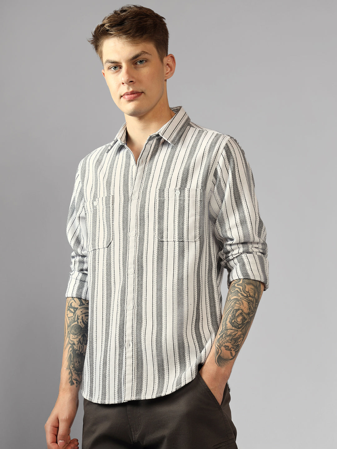 Men's Ash Striped Spread Collar Full Sleeve Regular Shirt