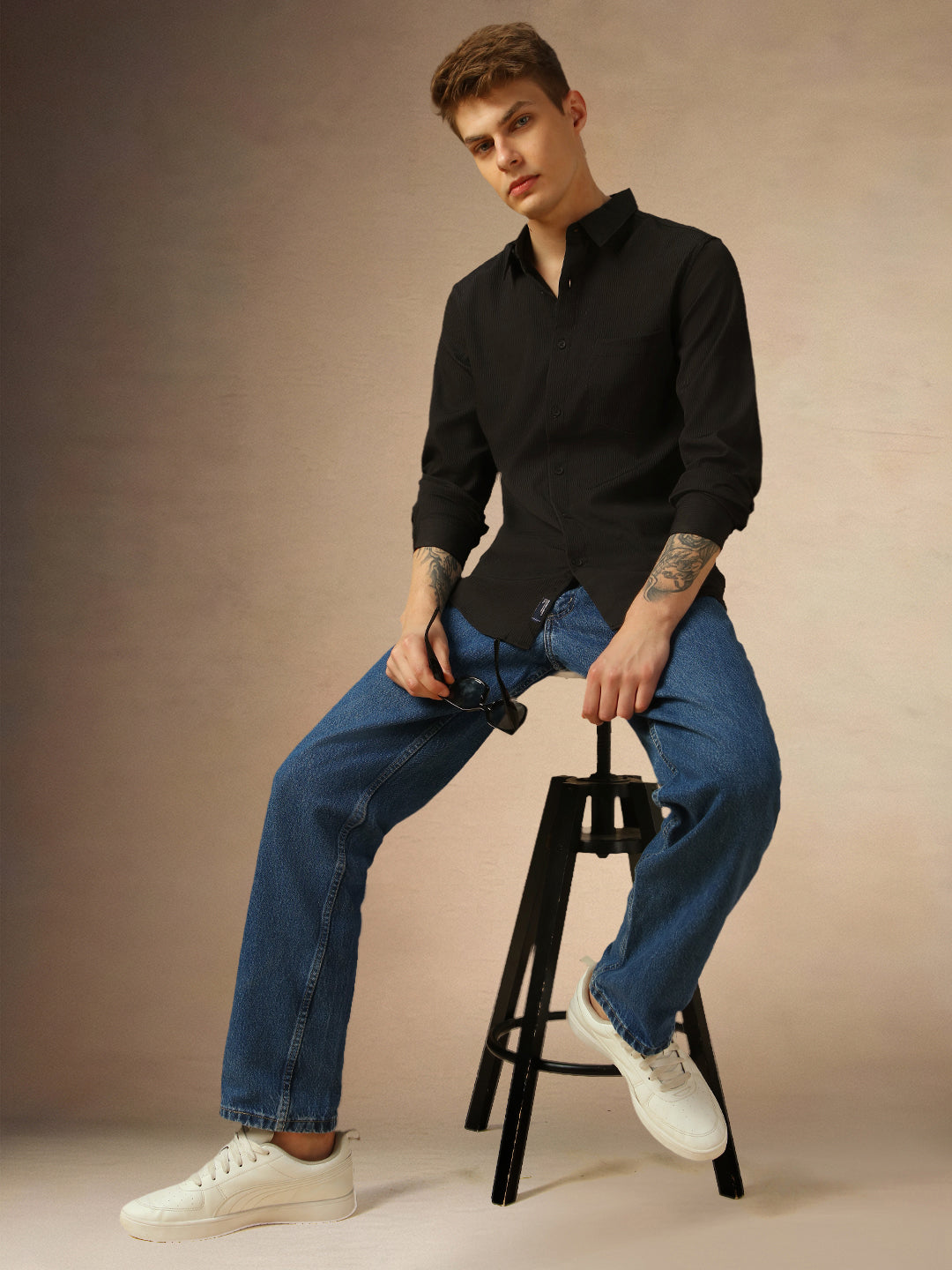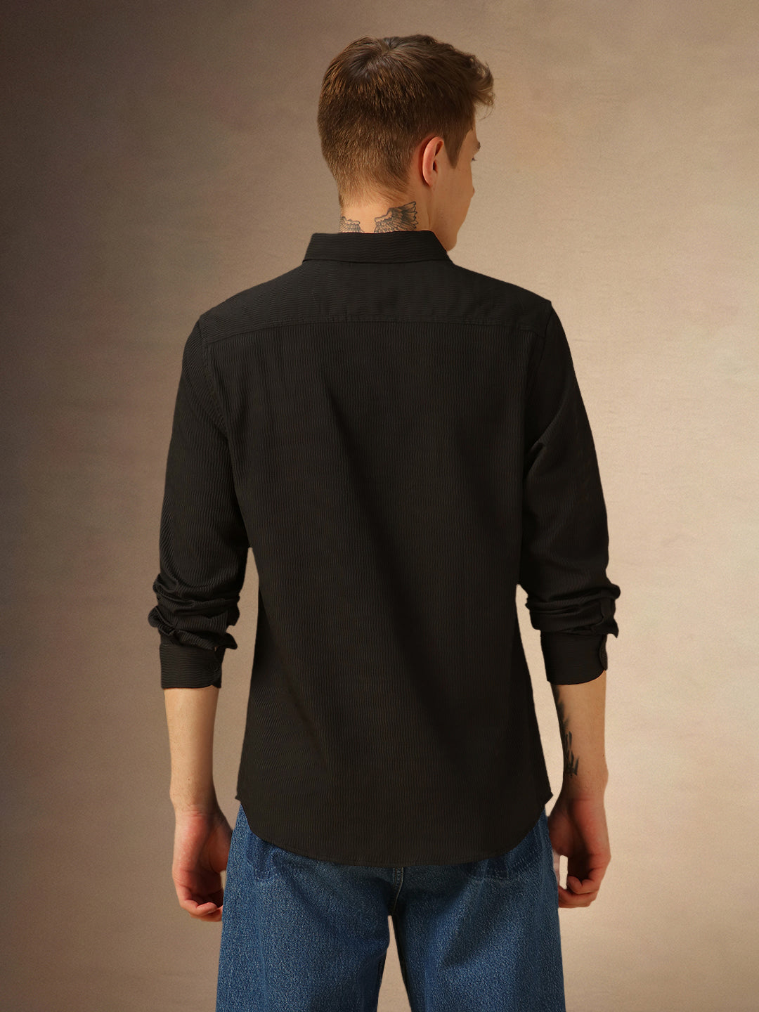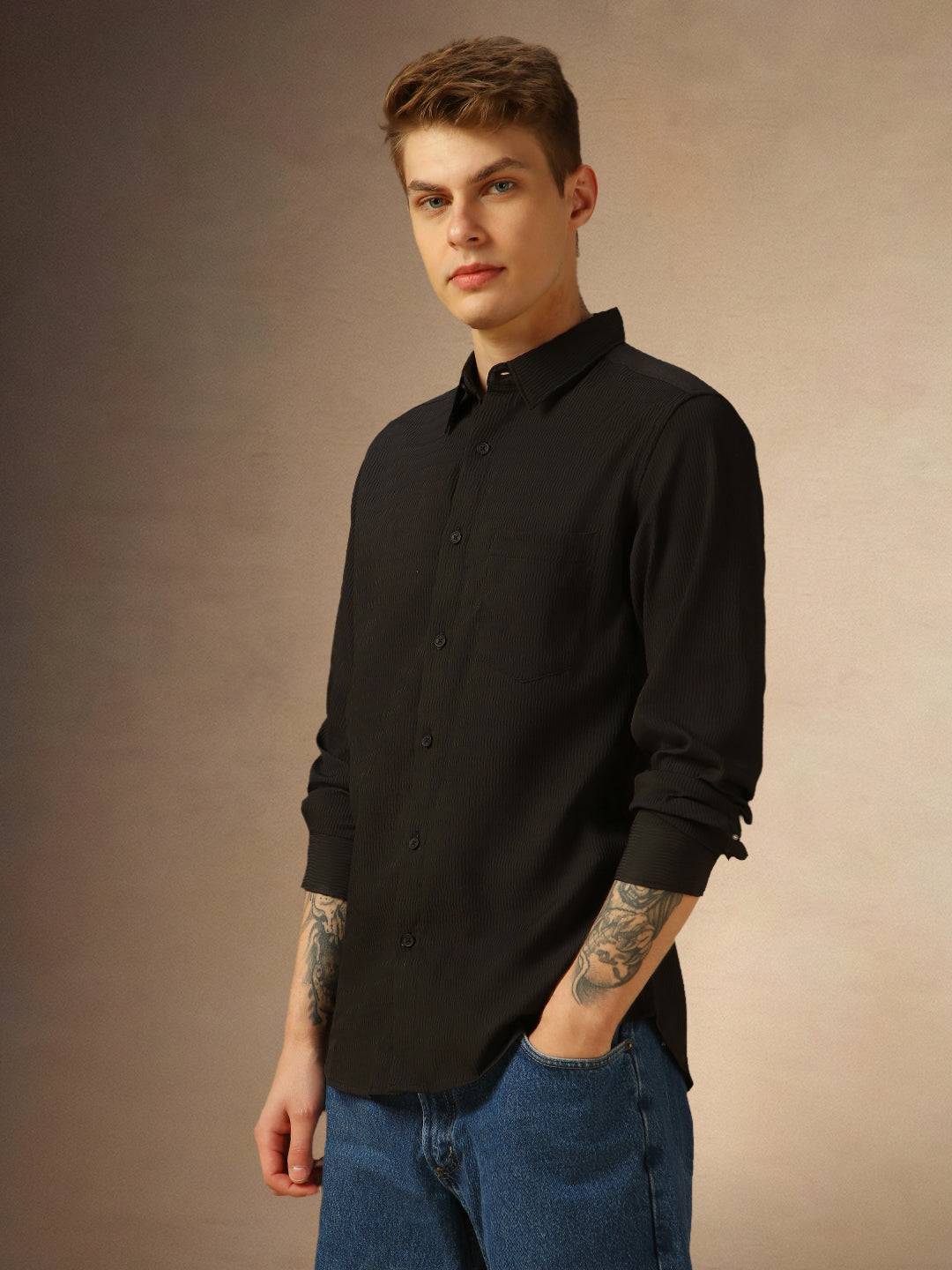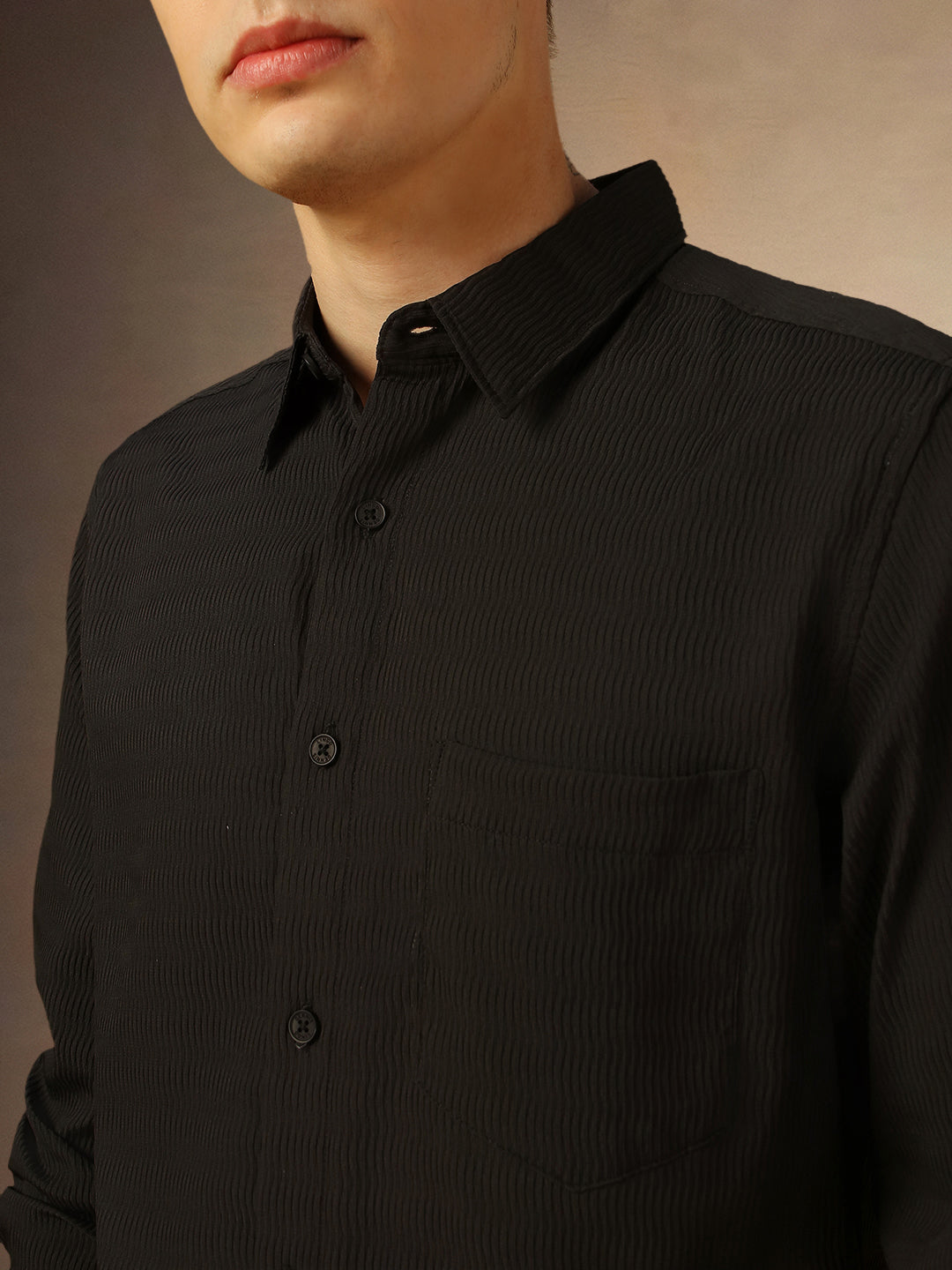 Men's Black Textured Spread Collar Full sleeve Regular Fit Shirt