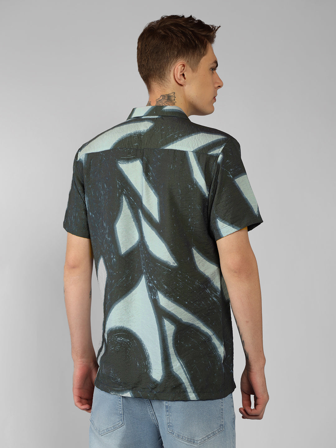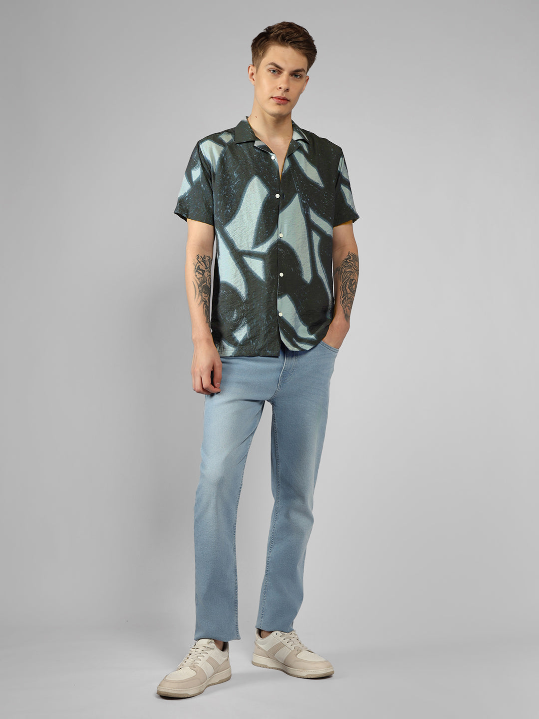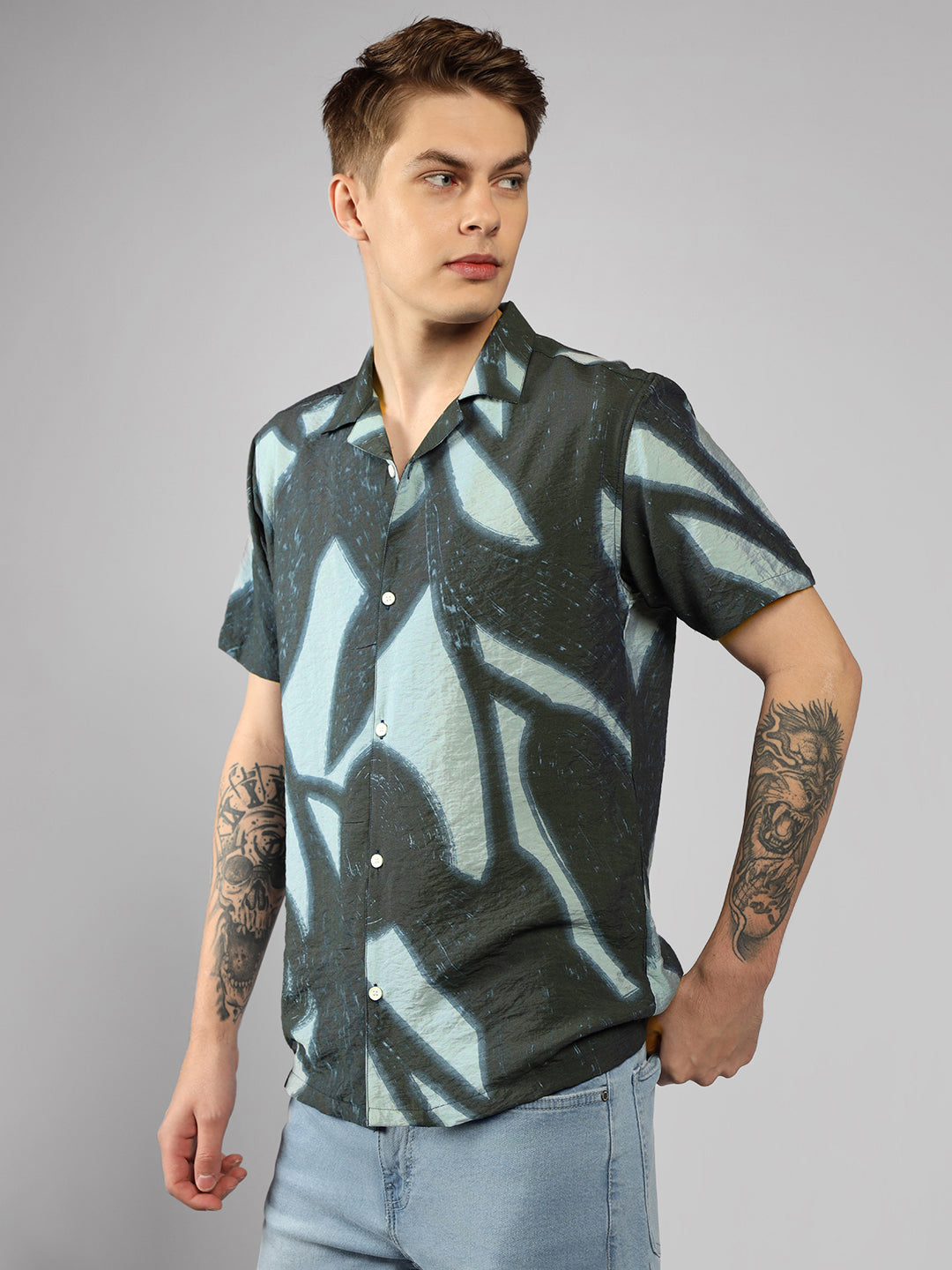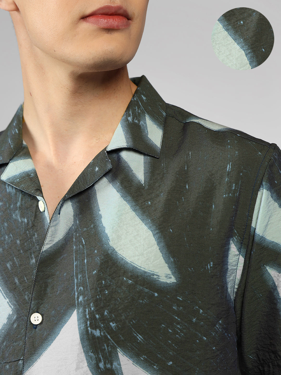 Men's Green Printed Cuban Collar Half sleeve Relaxed Fit Shirt