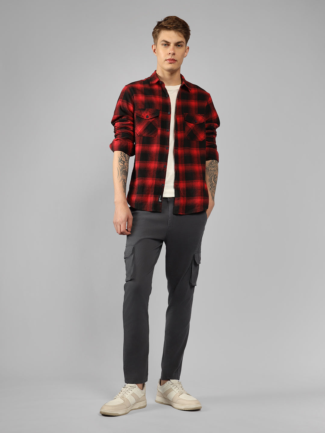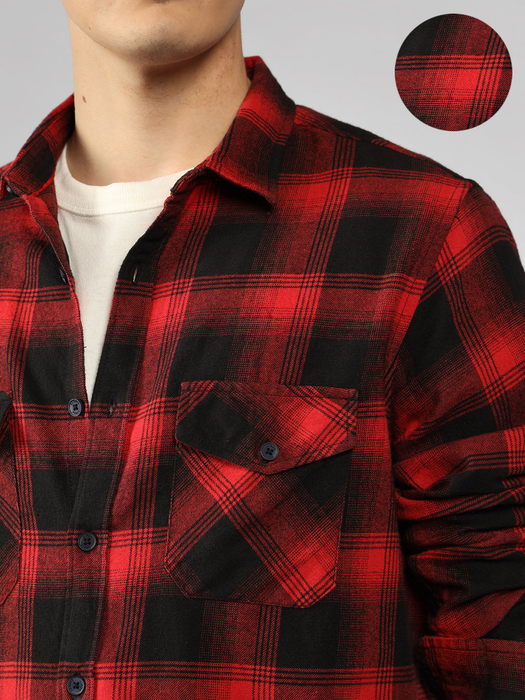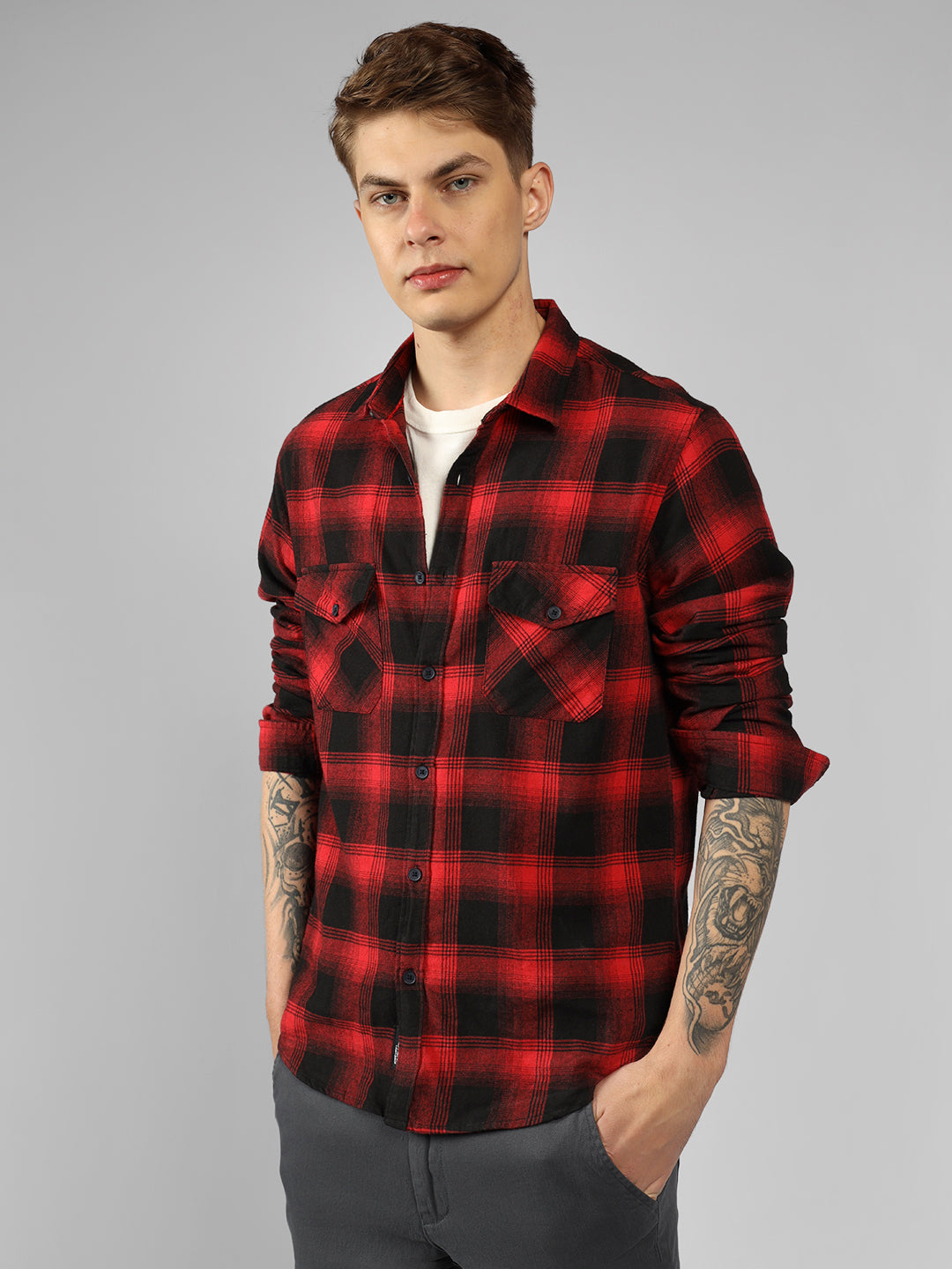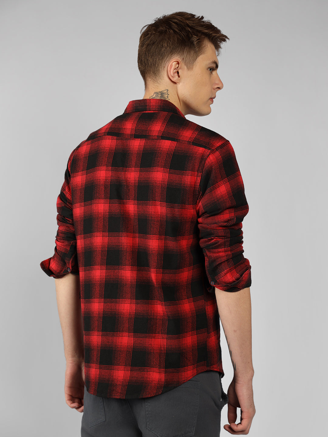 Men's Red Checks Spread Collar Full Sleeve Relaxed Fit Shirt