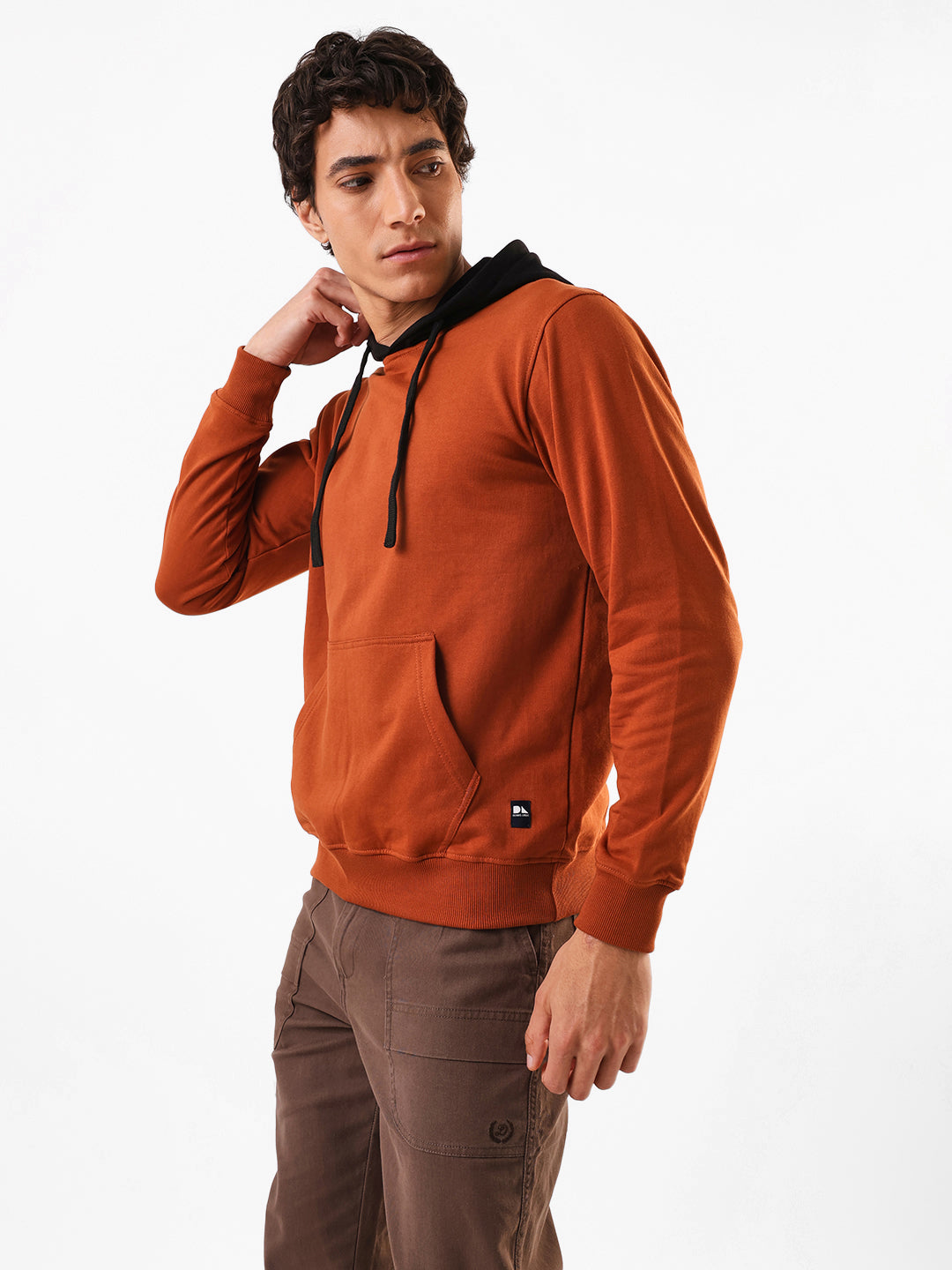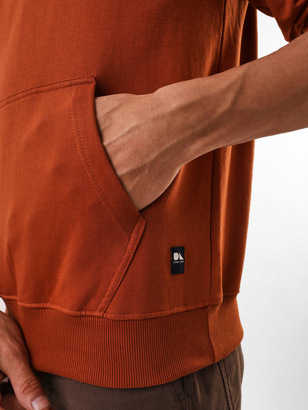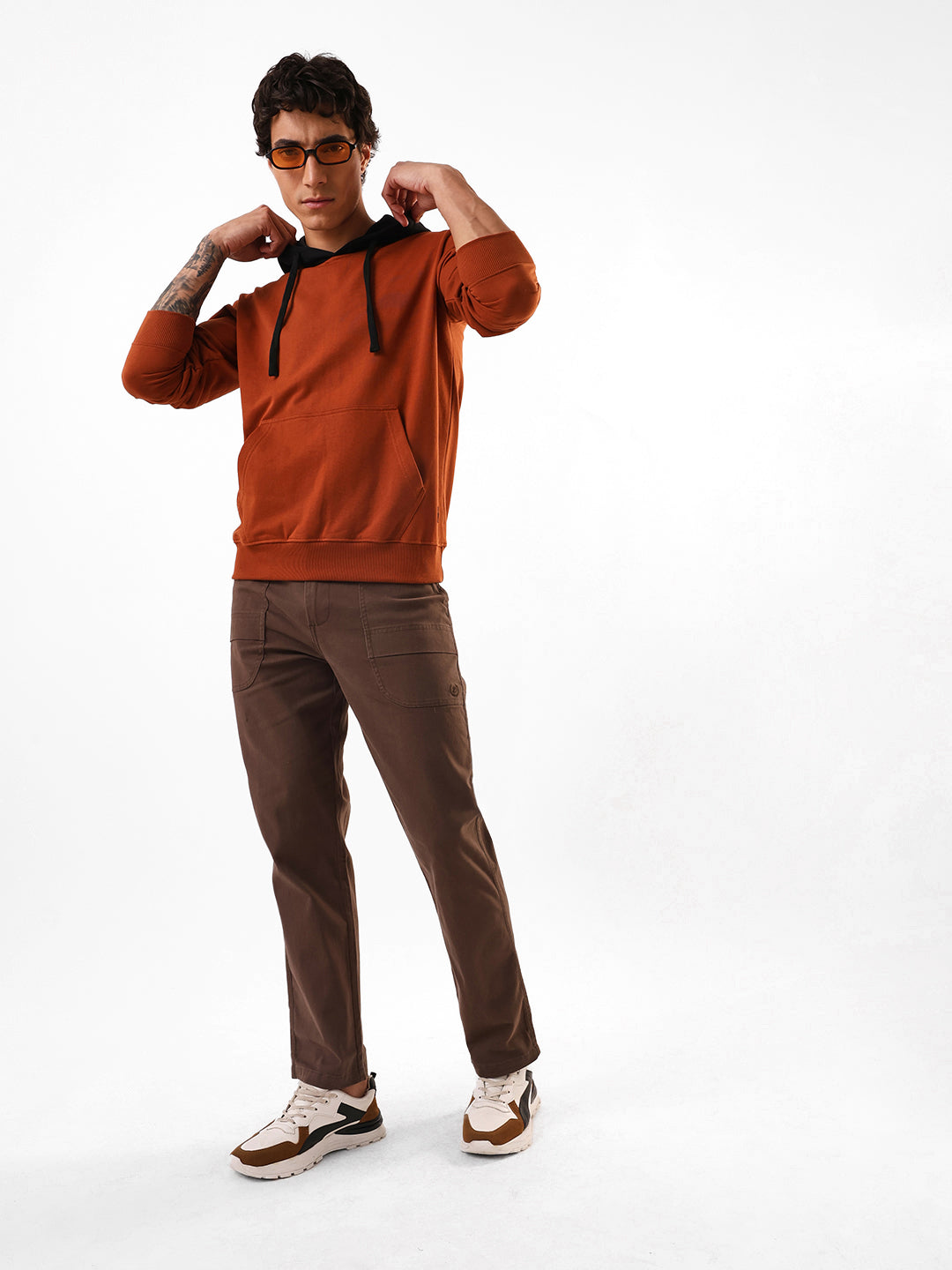 Men's Brown Solid Hooded Pullover Fleece Hoodie