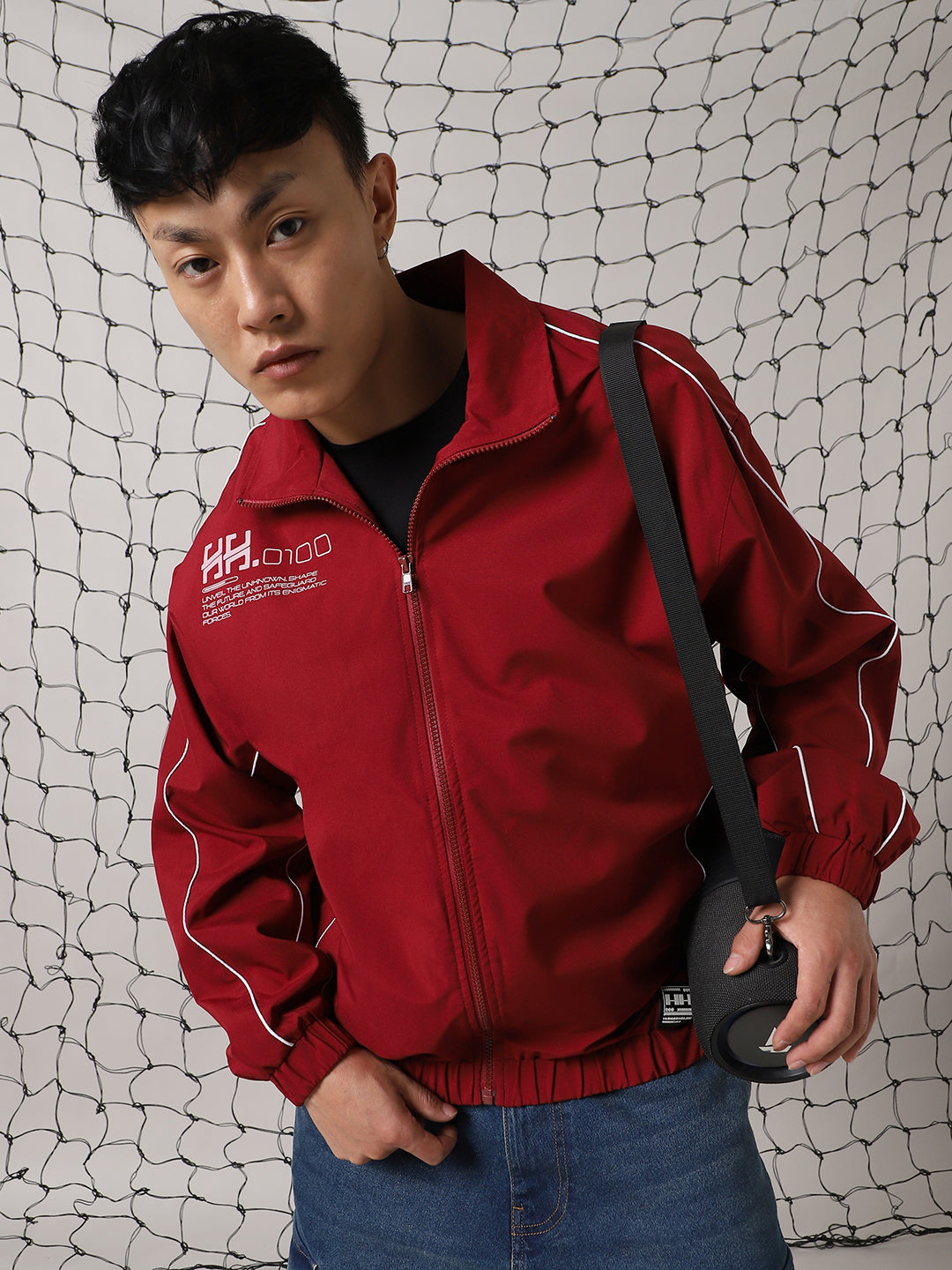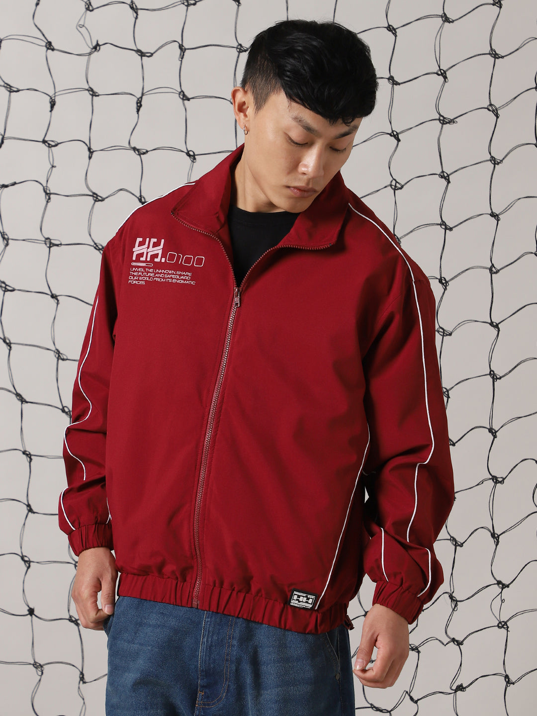Men's Mock Collar Typography Printed Casual Bomber Jacket - Hubberholme x Dennis Lingo