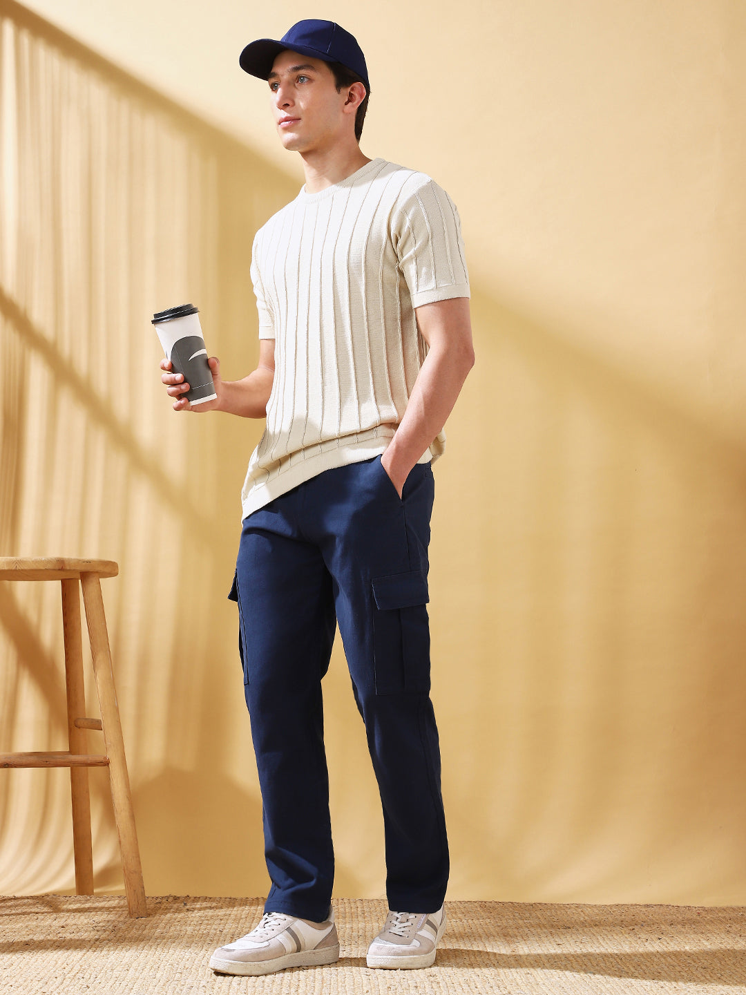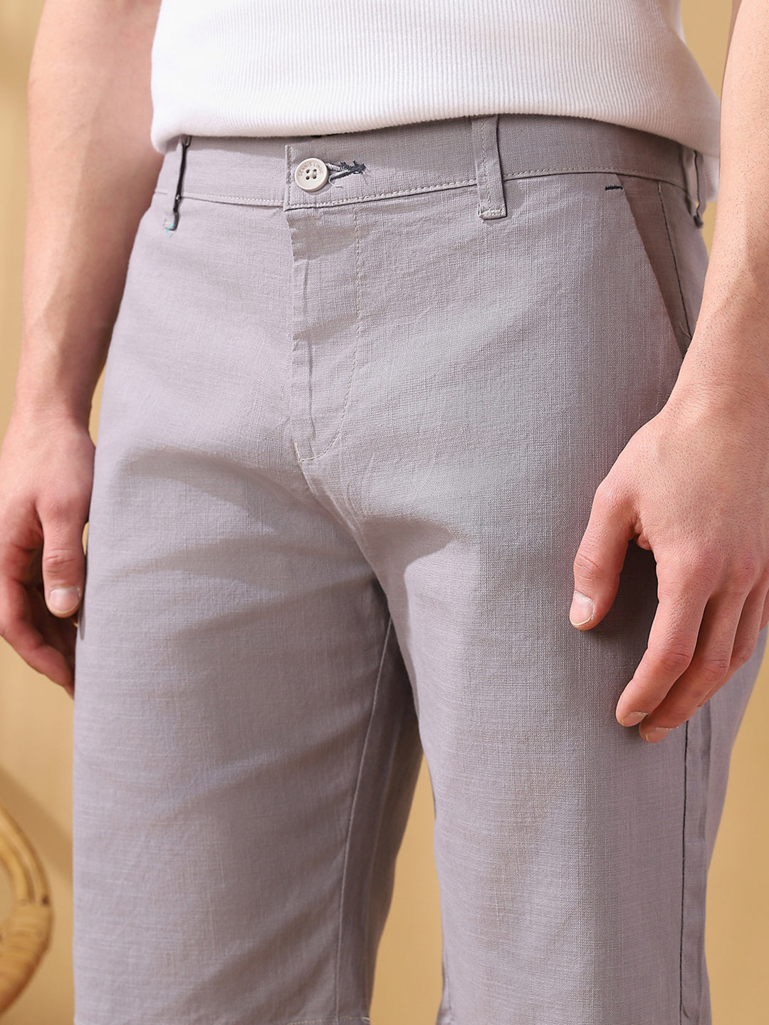 Men Beige Striped Straight Fit Chinos Trousers