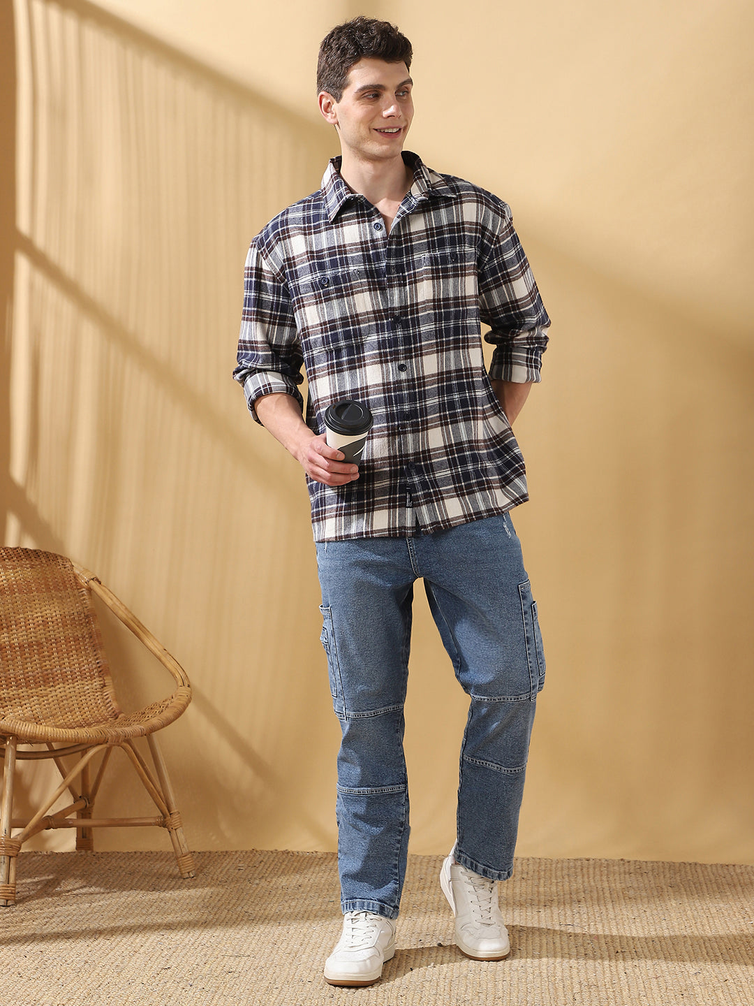 Men Brown Relaxed Fit Flannel Checks Spread Collar Casual Shirt