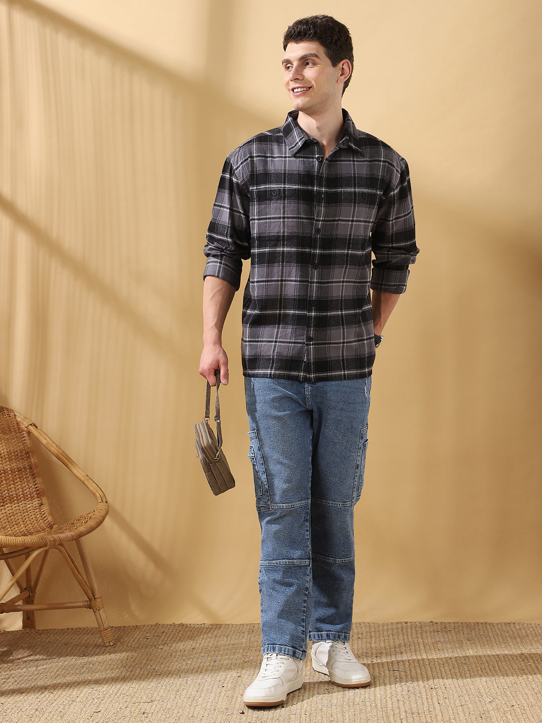 Men Relaxed Fit Flannel Checks Spread Collar Casual Shirt