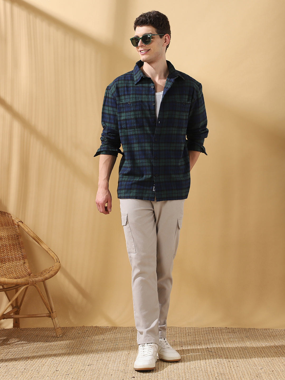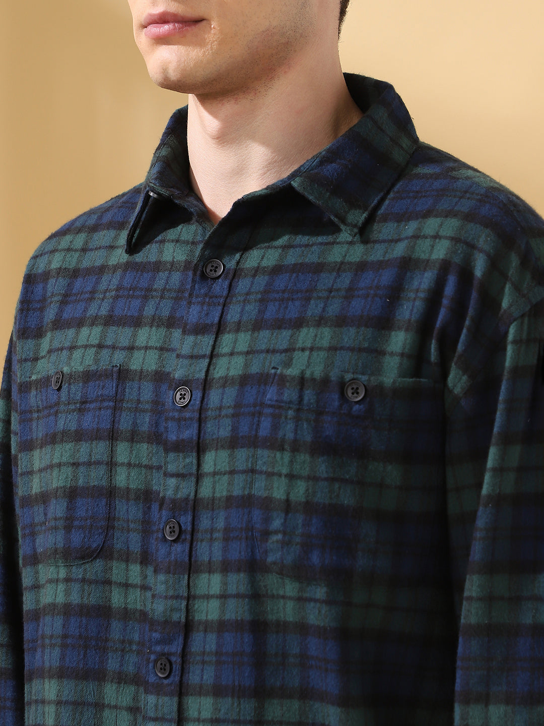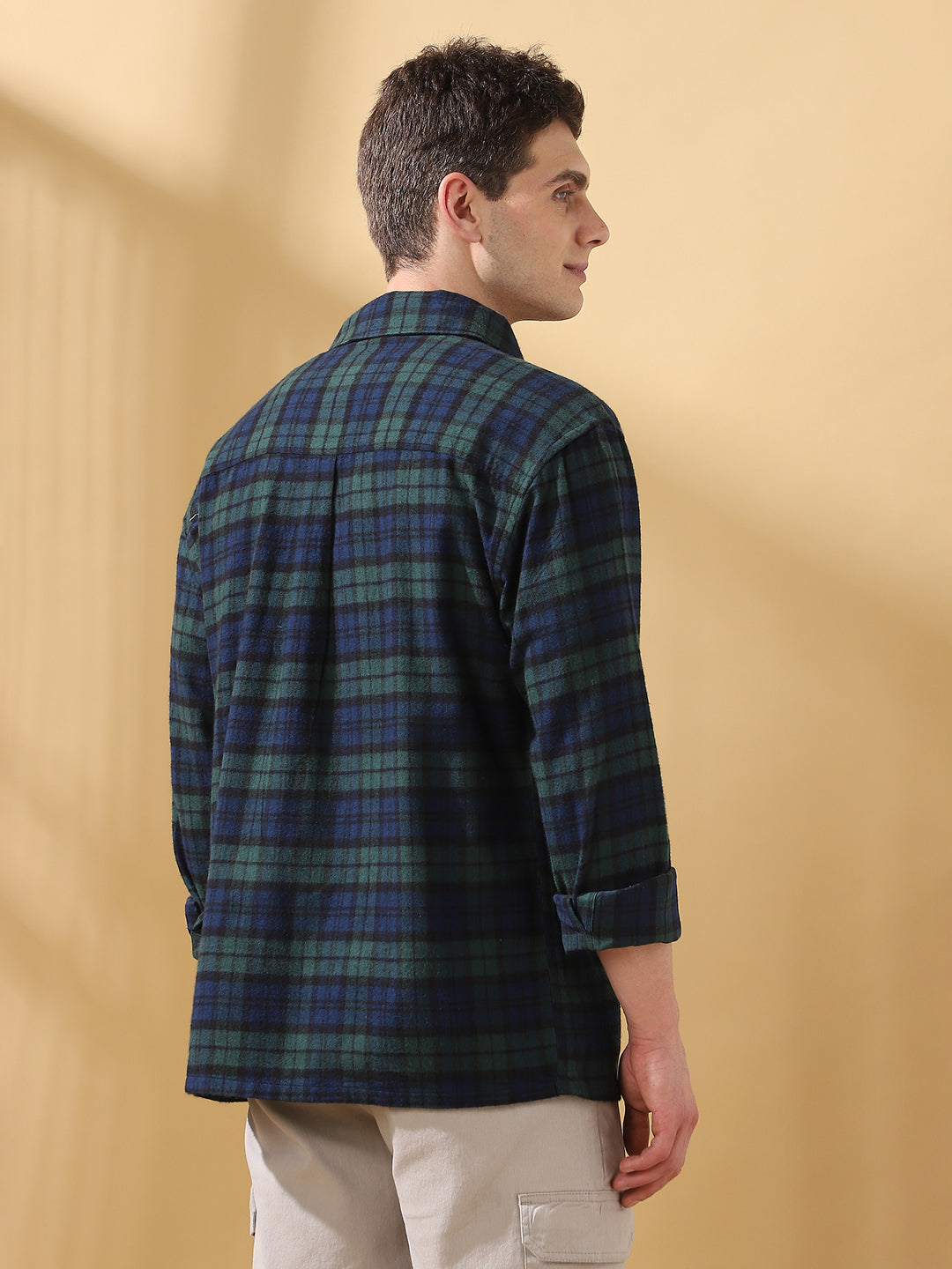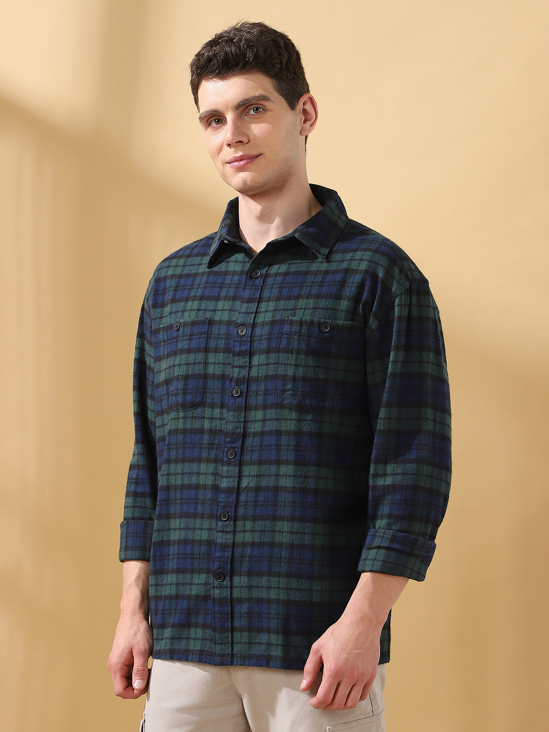 Men Green Relaxed Fit Flannel Checks Spread Collar Casual Shirt