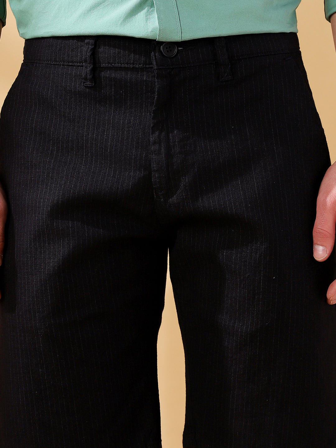 Men Black Striped Straight Fit Chinos Trousers