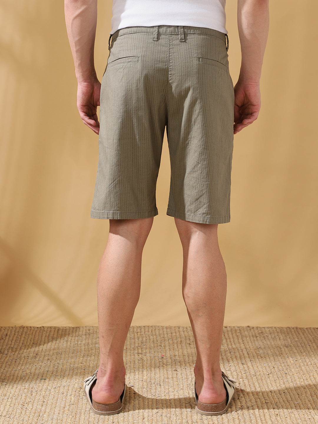 Men Cotton Striped Regular Fit Knee length Shorts