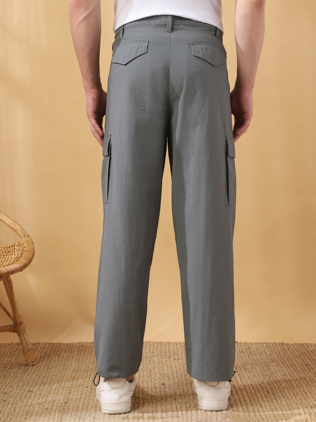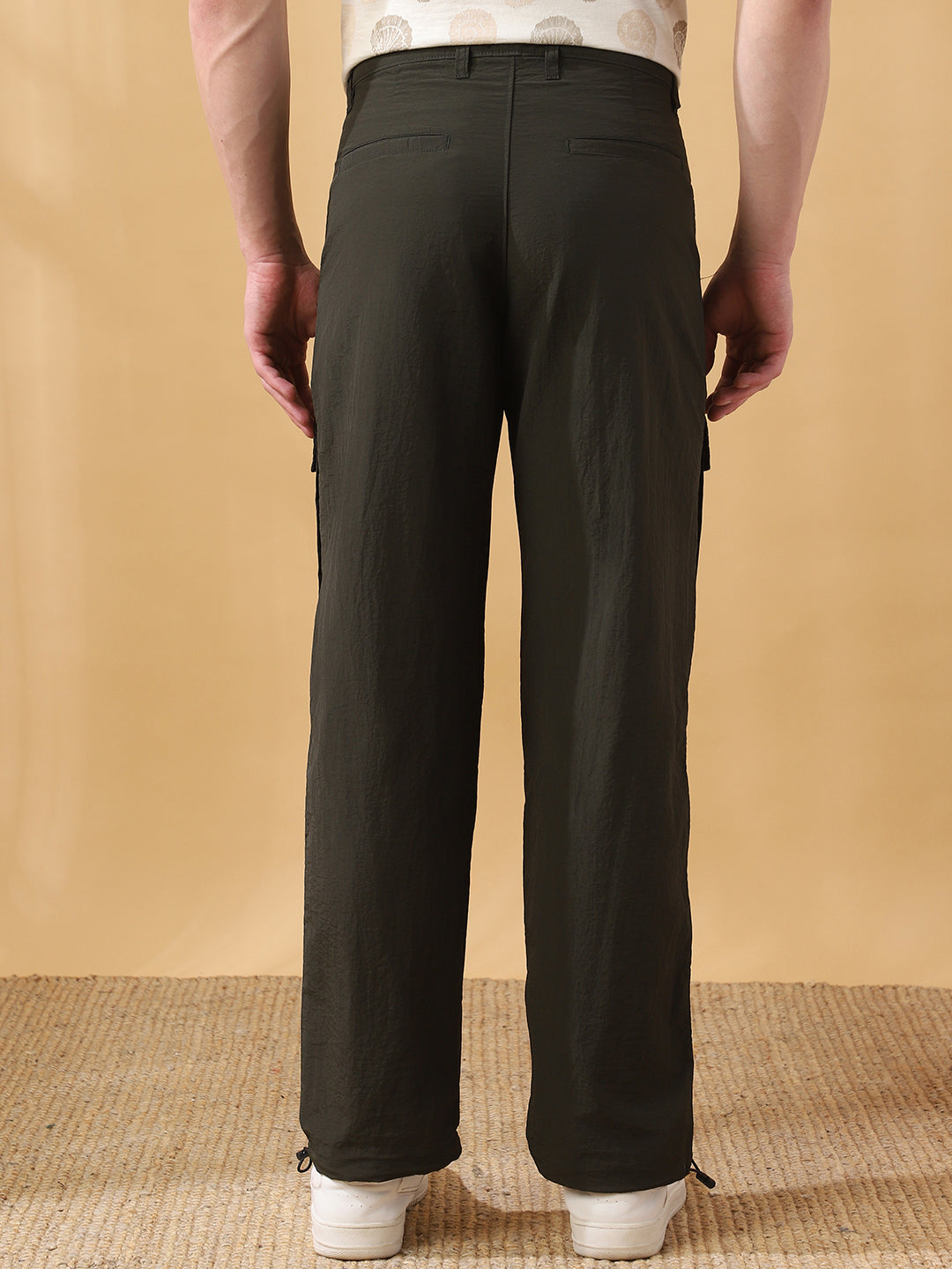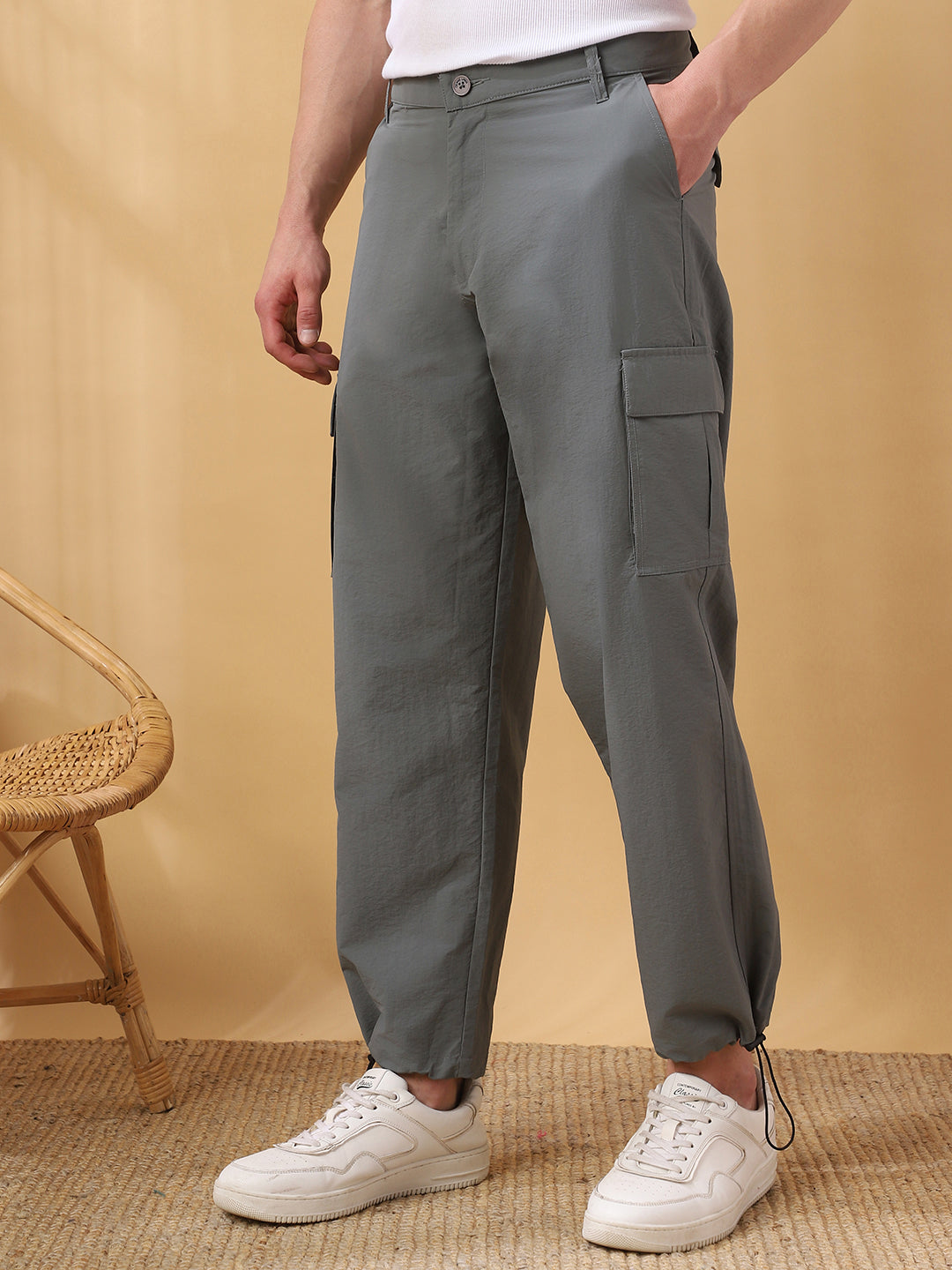 Men's Solid Straight Fit Parachute Cargo Trousers