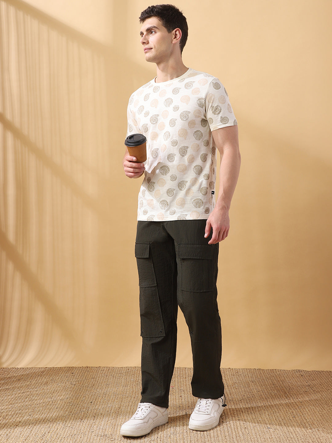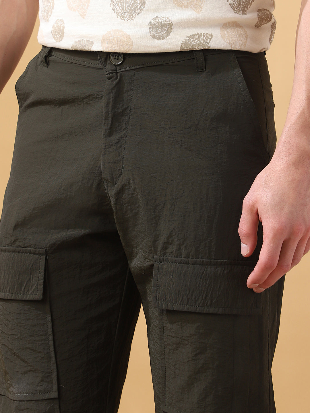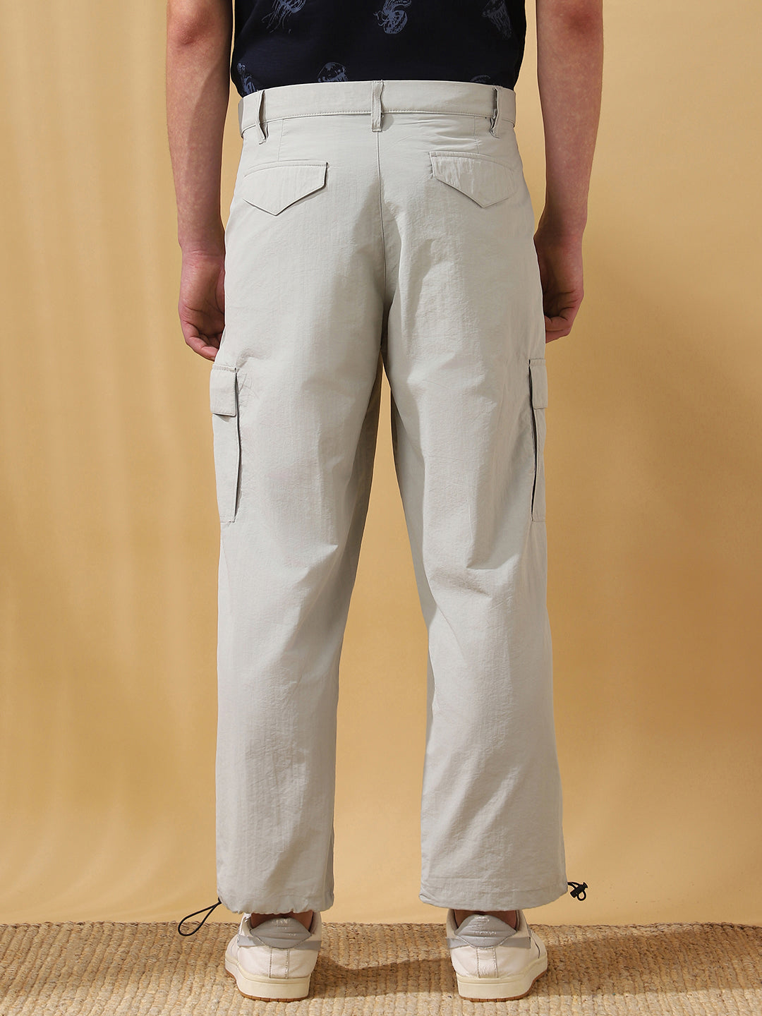 Men's Solid Straight Fit Parachute Cargo Trousers