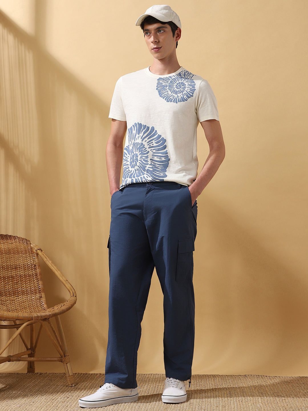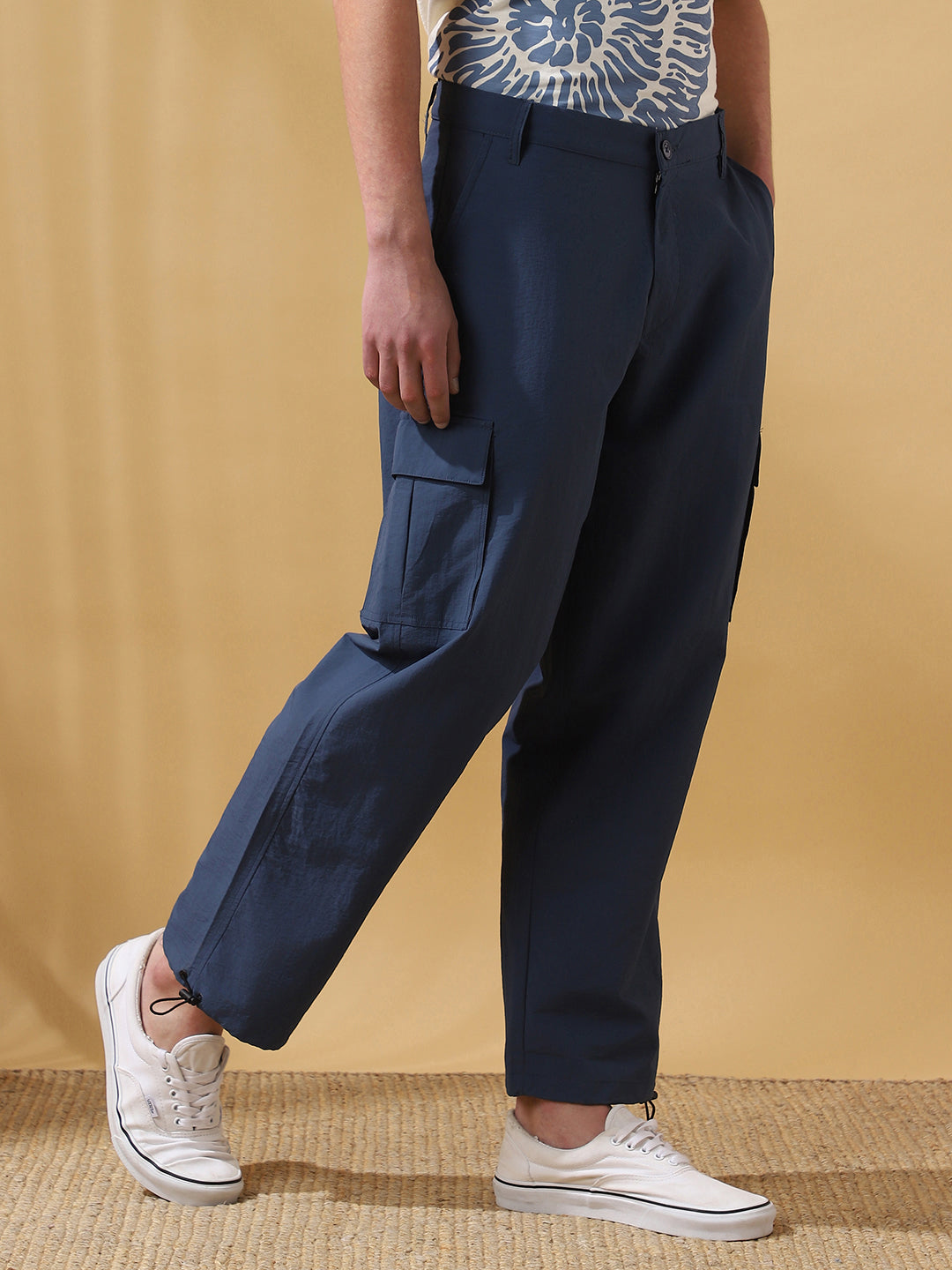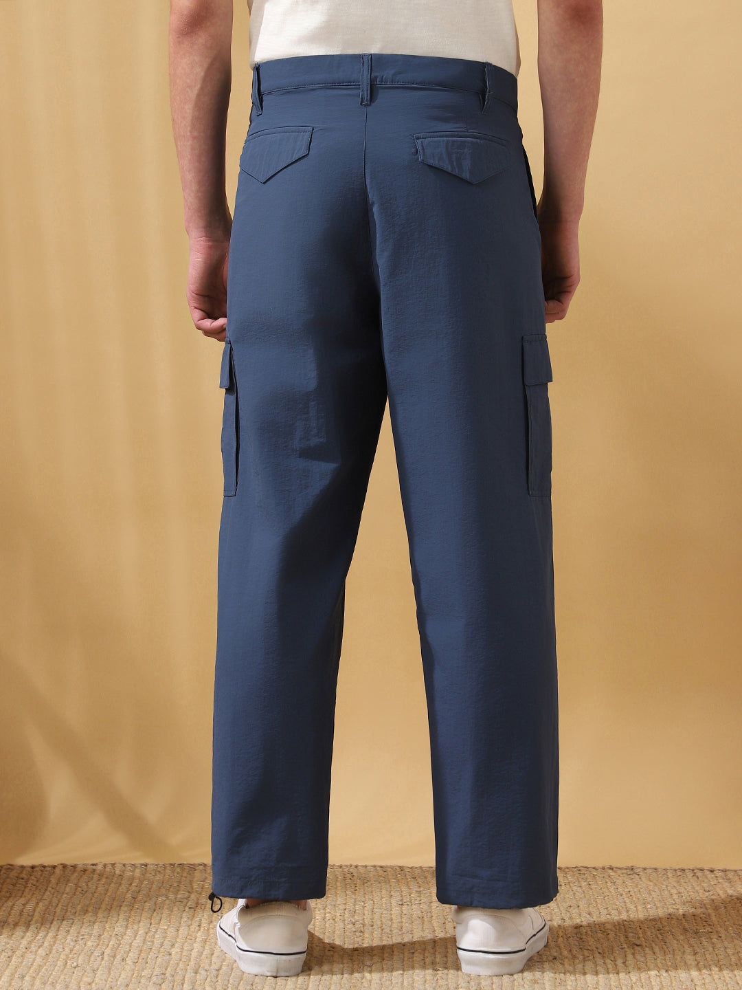 Men Navy Solid Straight Fit Parachute Cargo Trousers