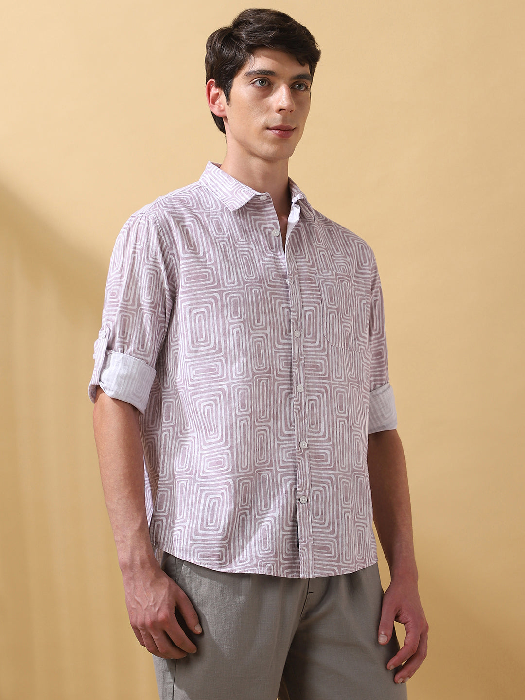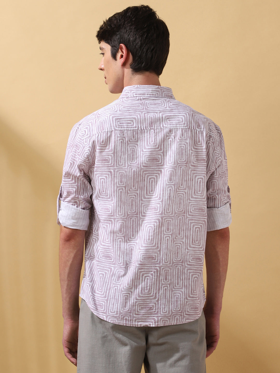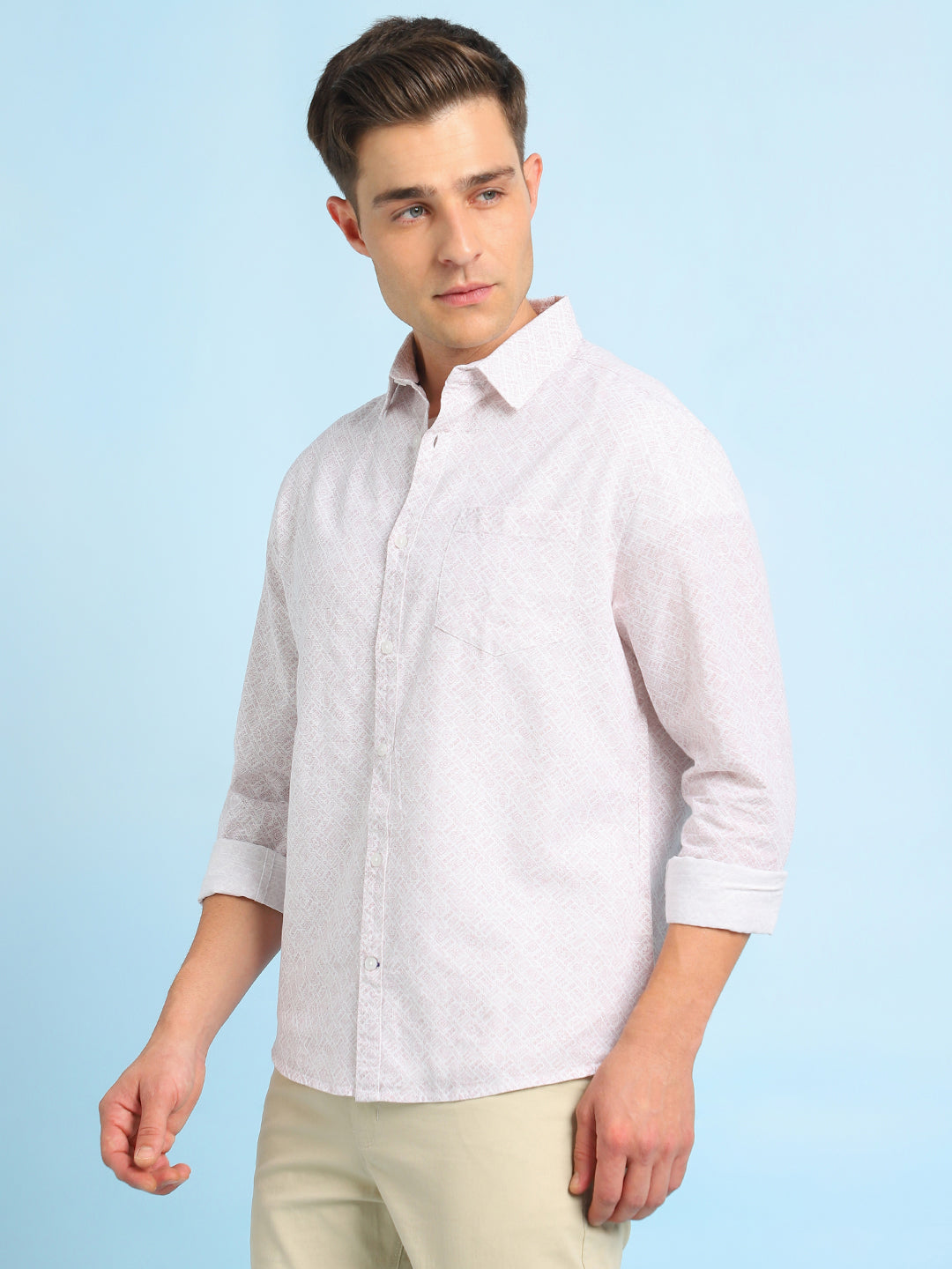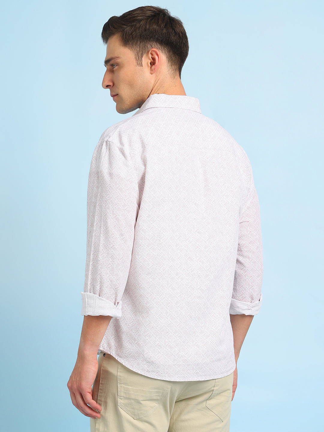 Men Pink Printed Spread Collar Full Sleeves Casual Shirt
