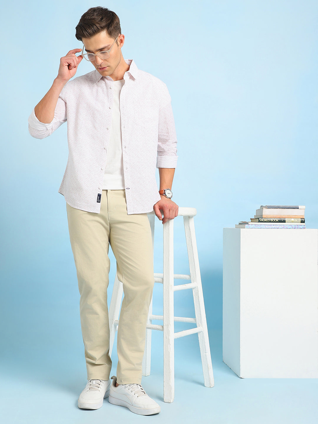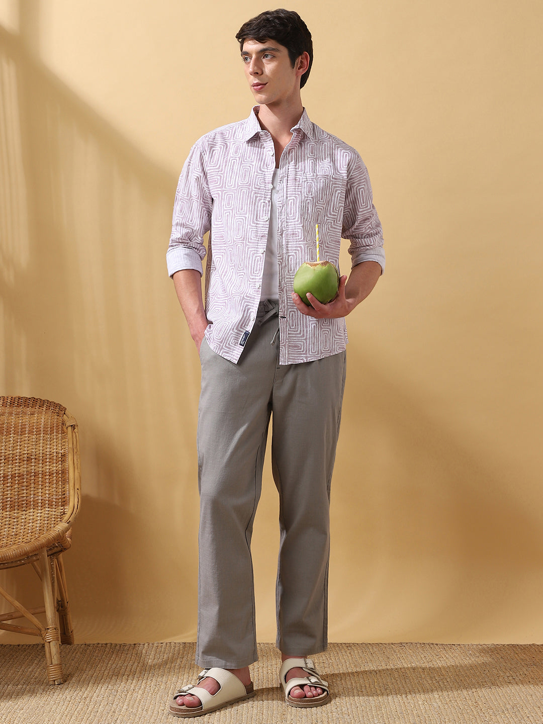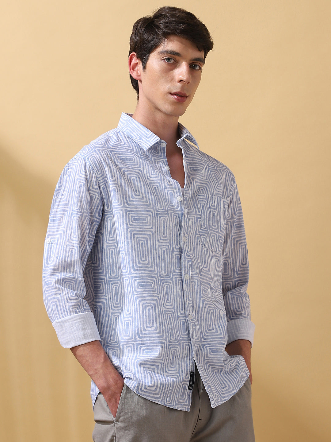 Men Printed Spread Collar Full Sleeves Regular Fit Shirt