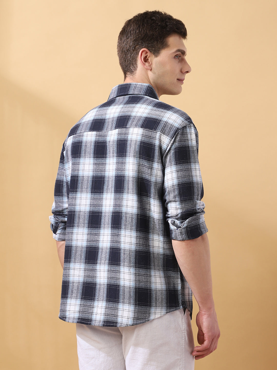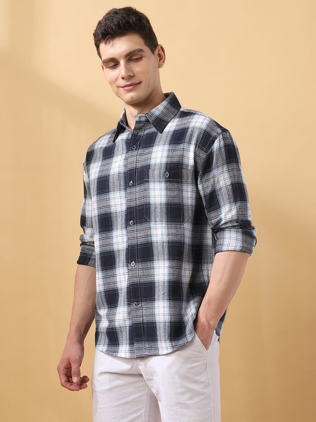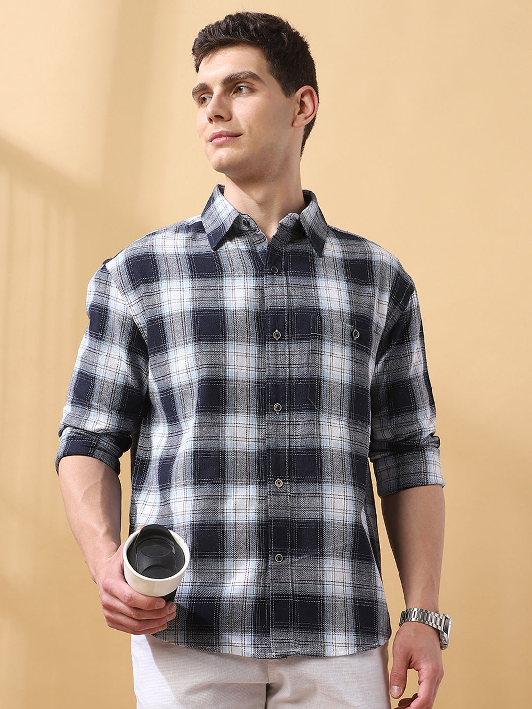 Men Checked Spread Collar Full Sleeves Relaxed Fit Shirt