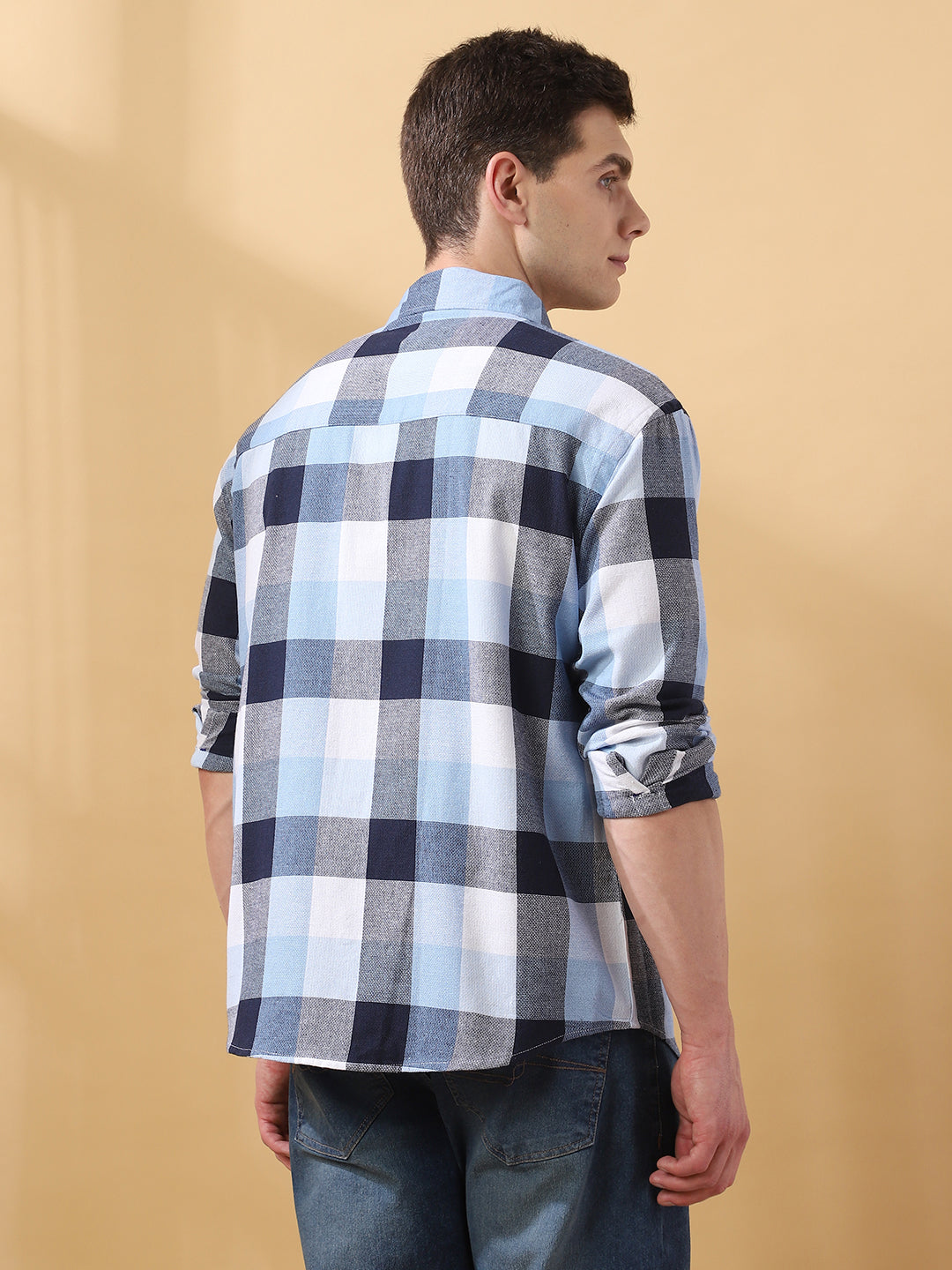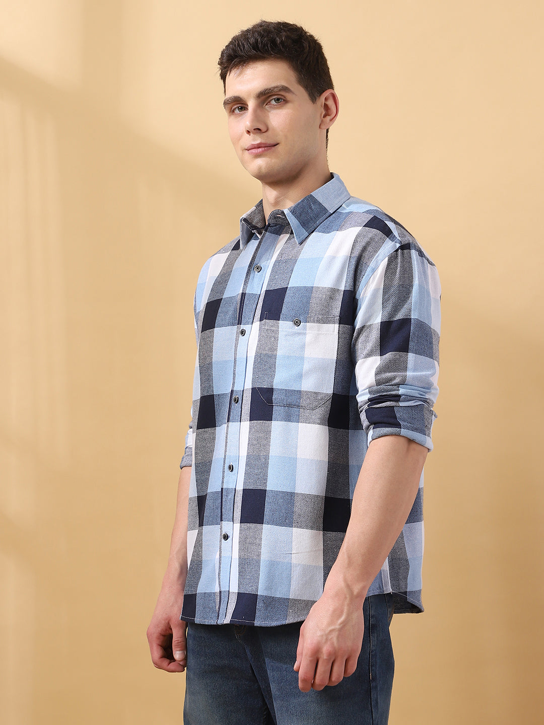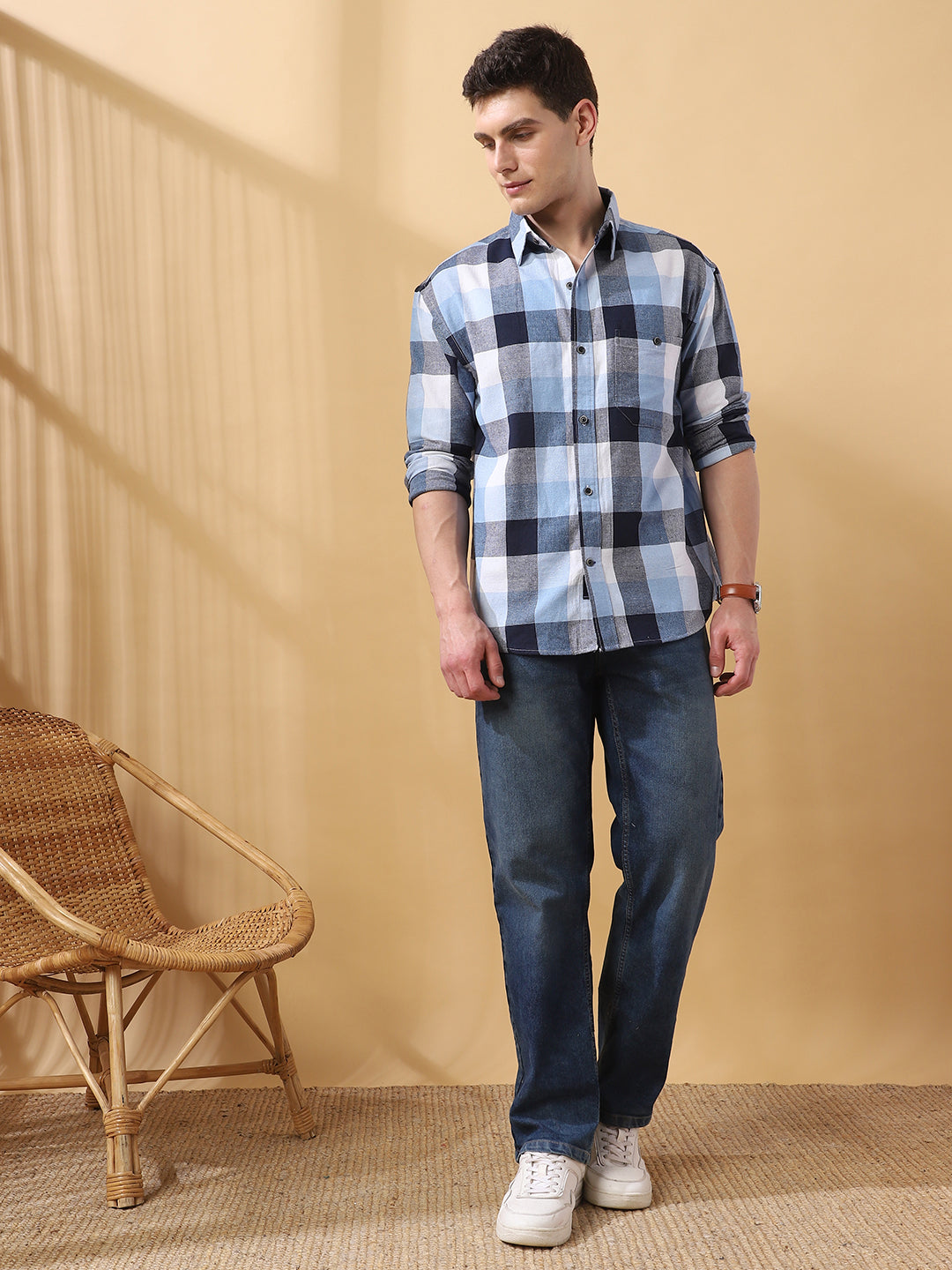 Men Checks Spread Collar Full Sleeves Relaxed Fit Shirt