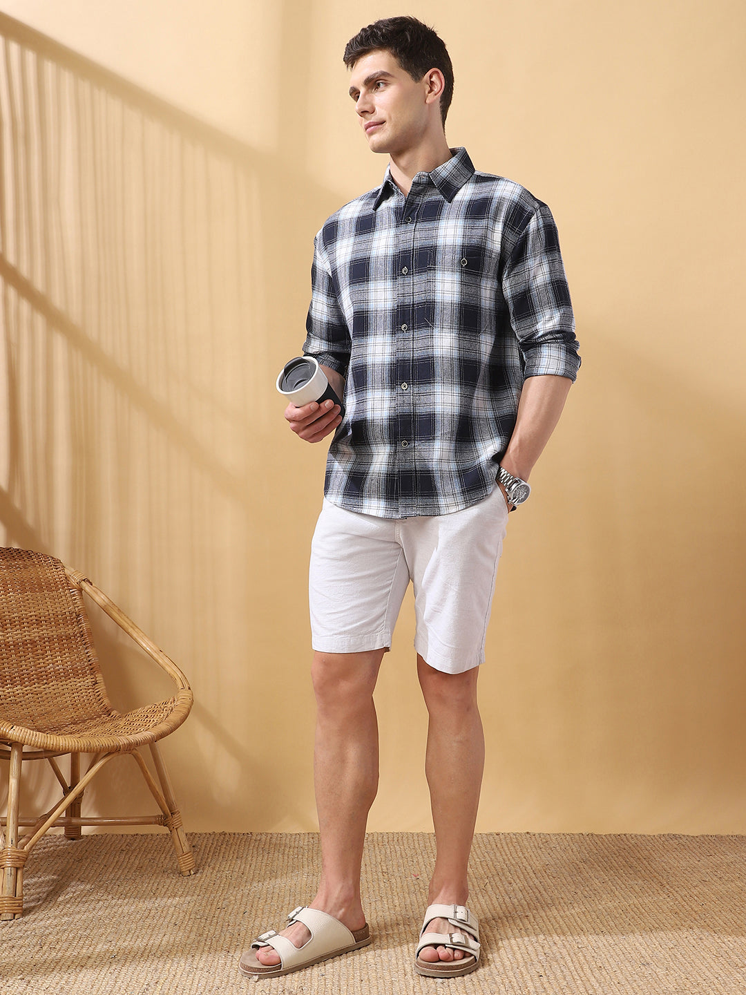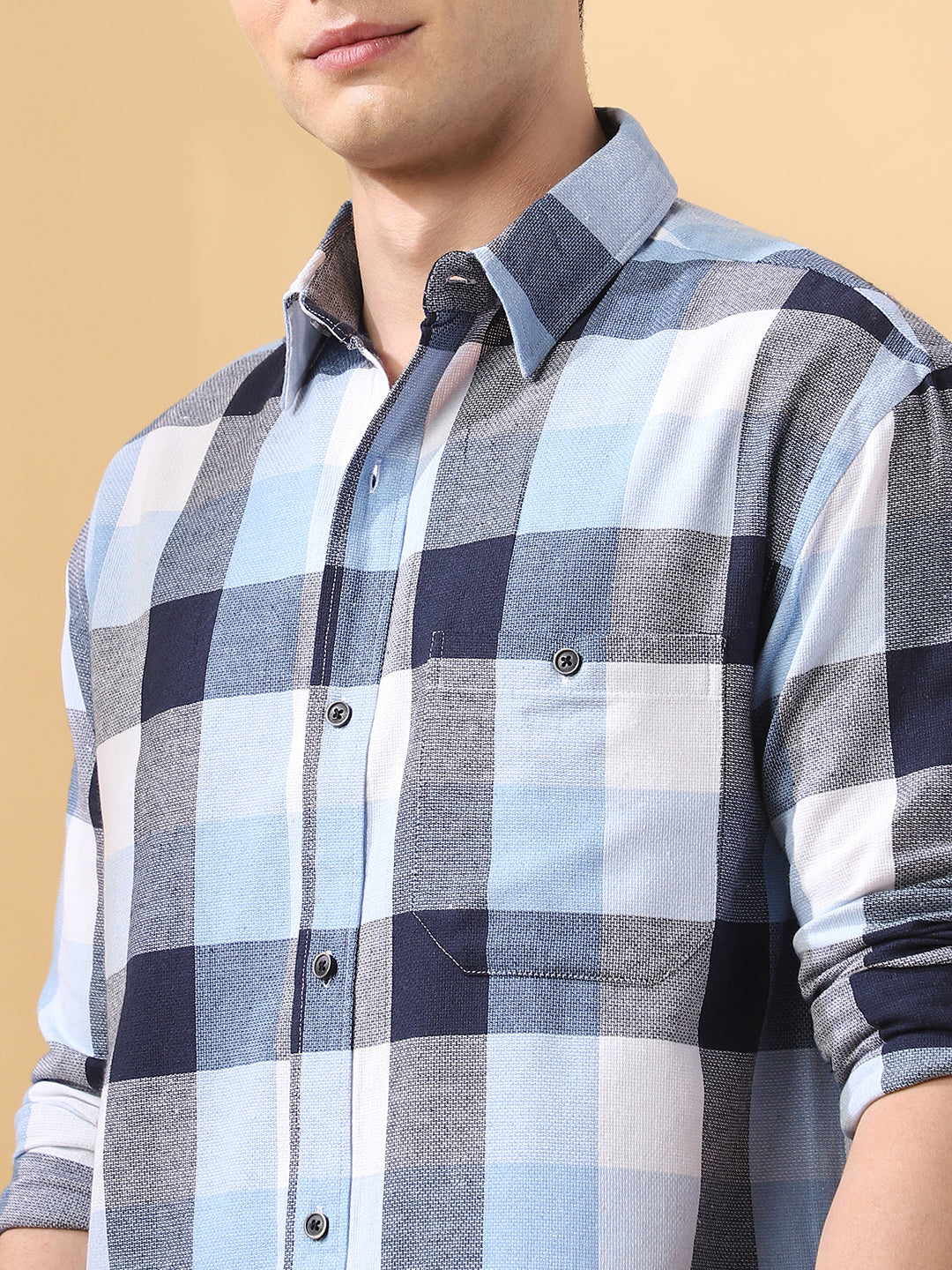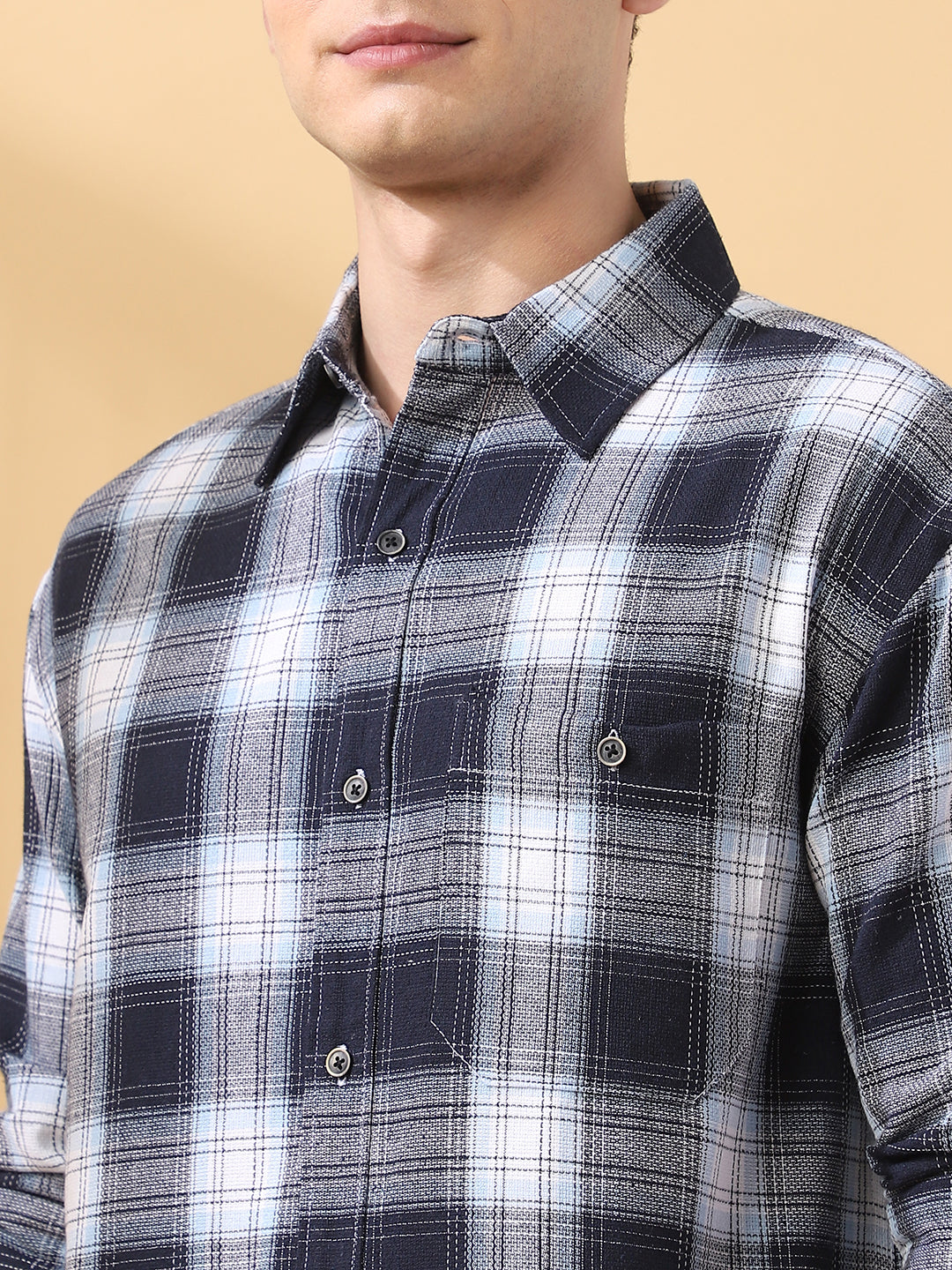 Men Checks Spread Collar Full Sleeves Relaxed Fit Shirt
