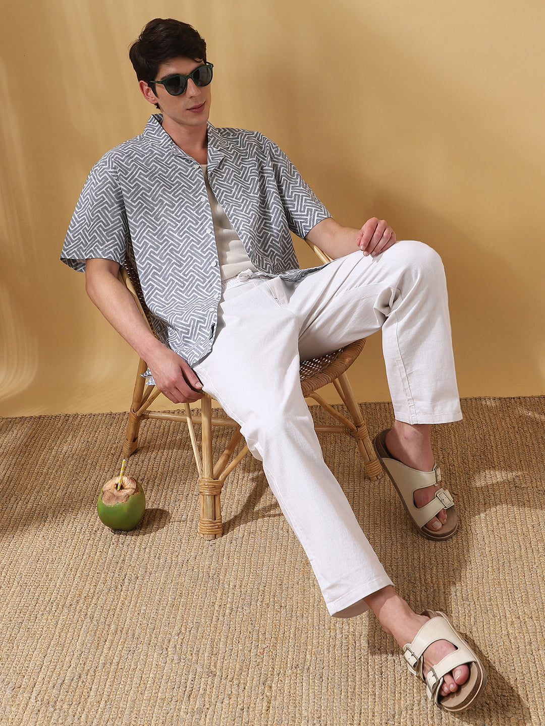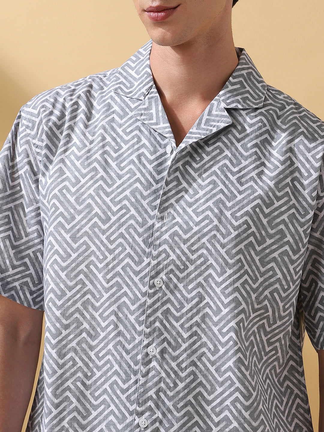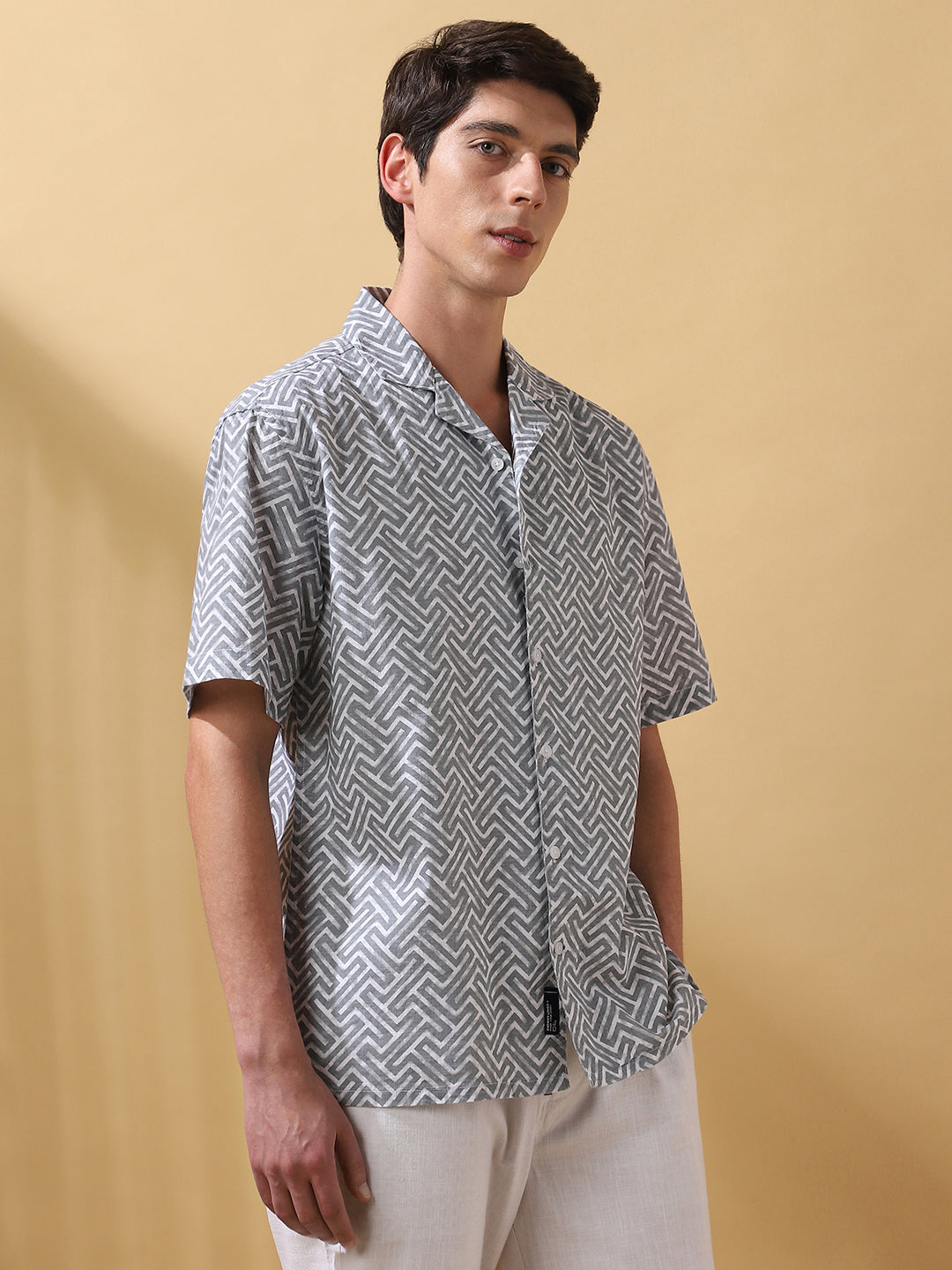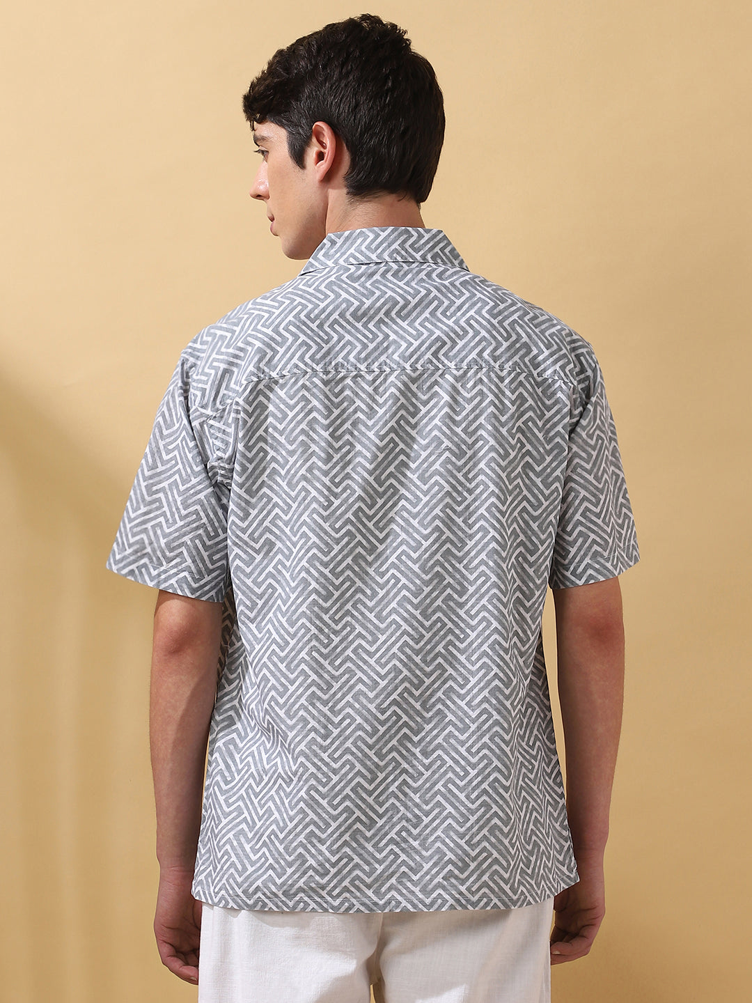 Men Printed Cuban Collar Short Sleeves Relaxed Fit Shirt