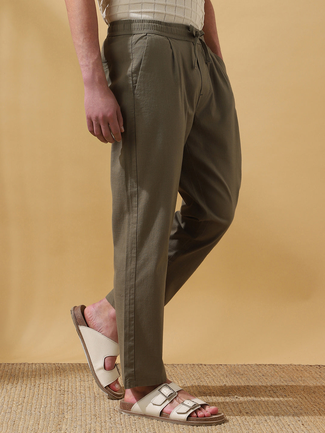 Men's Solid Straight Fit Regular Trousers