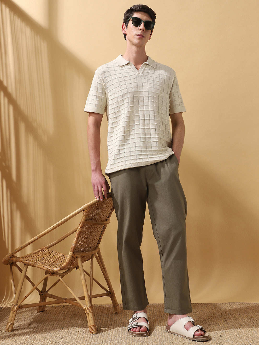 Men Solid Straight Fit Chinos Trousers