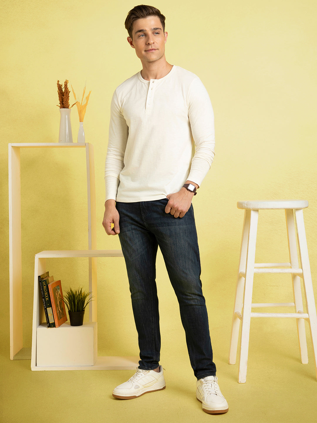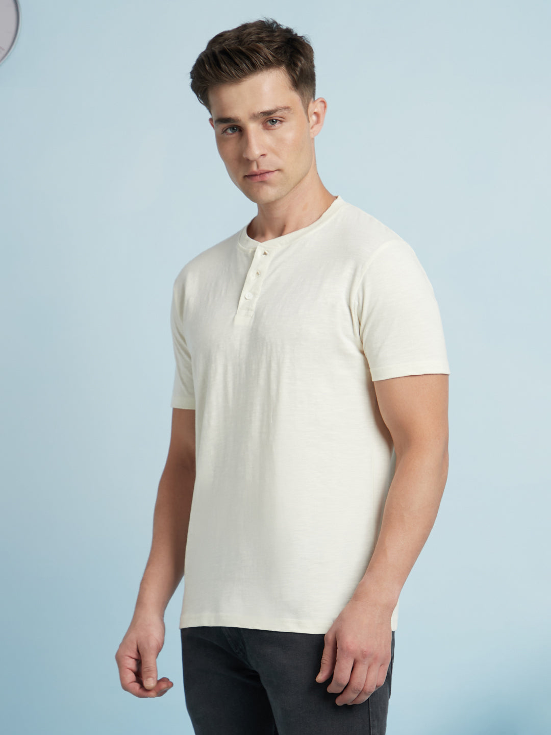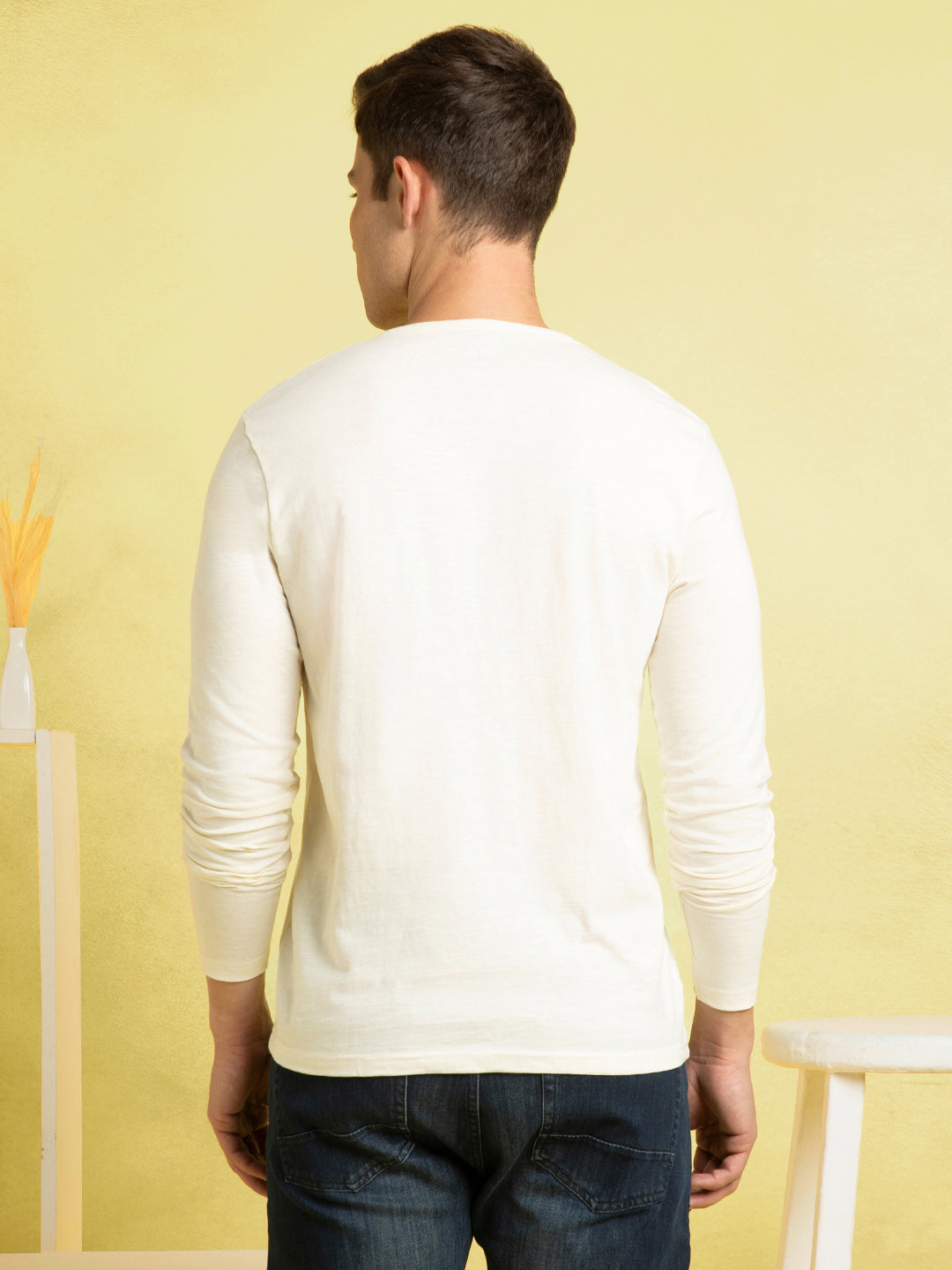 Men's Off-White Henley Neck Full Sleeves T-shirt