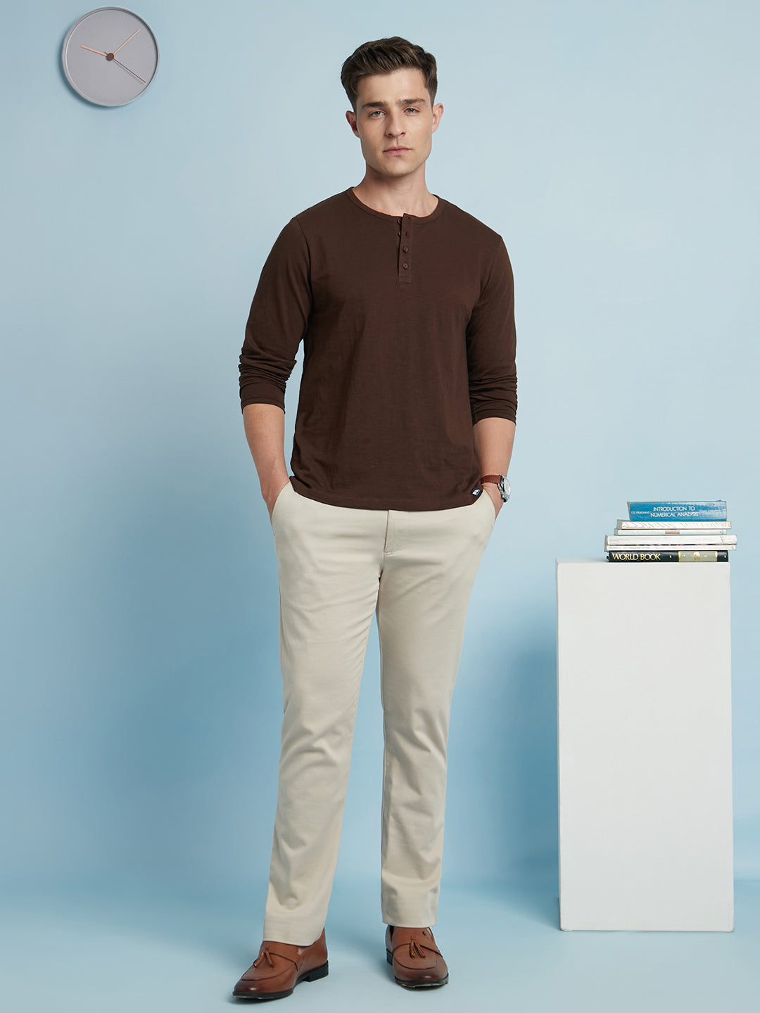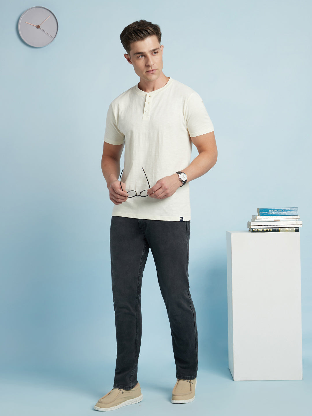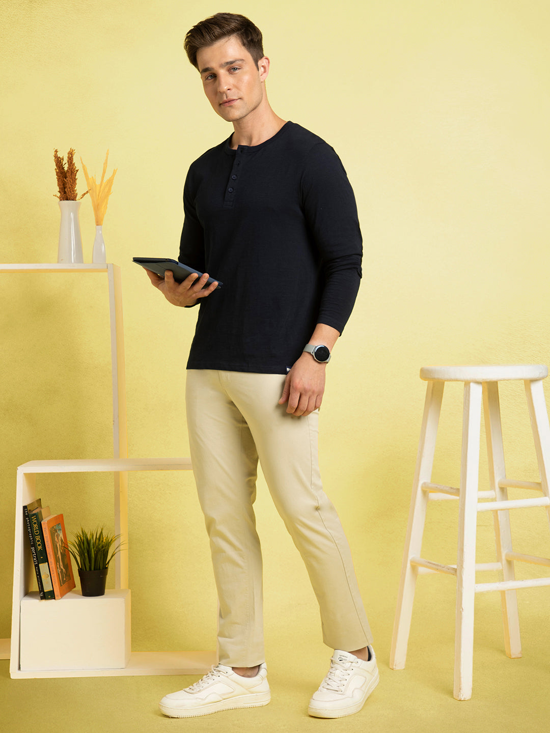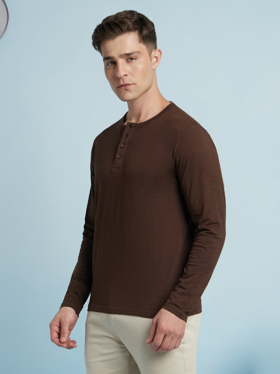 Men's Off-White Henley Neck Full Sleeves T-shirt