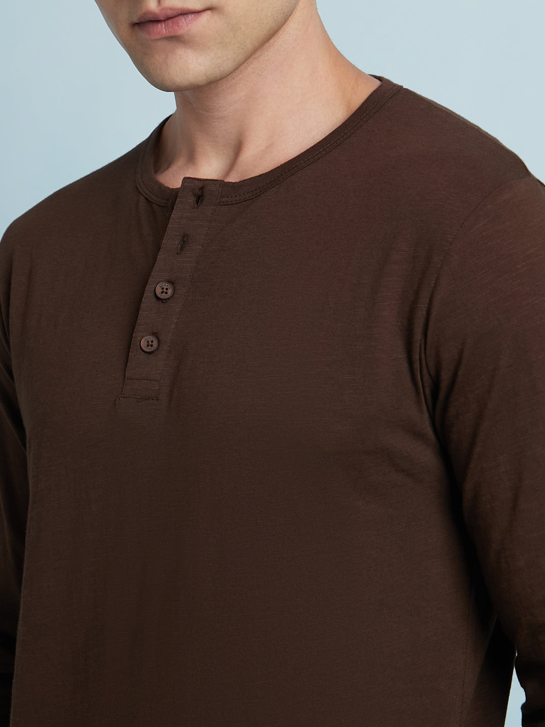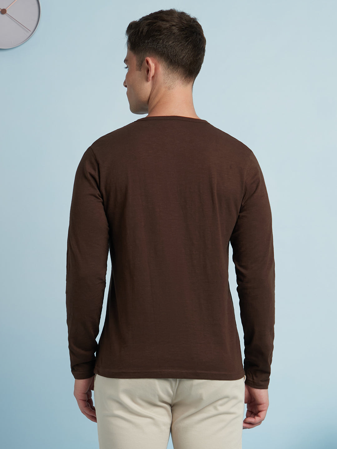 Men's Brown Solid Round Neck Full Sleeves T-Shirt