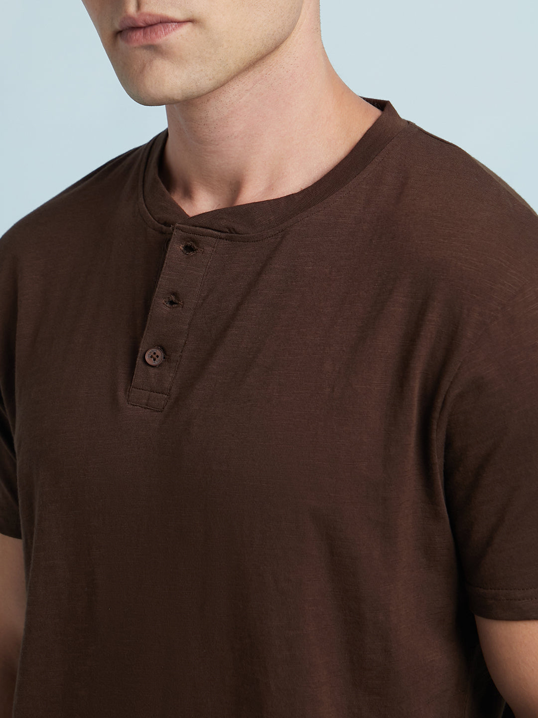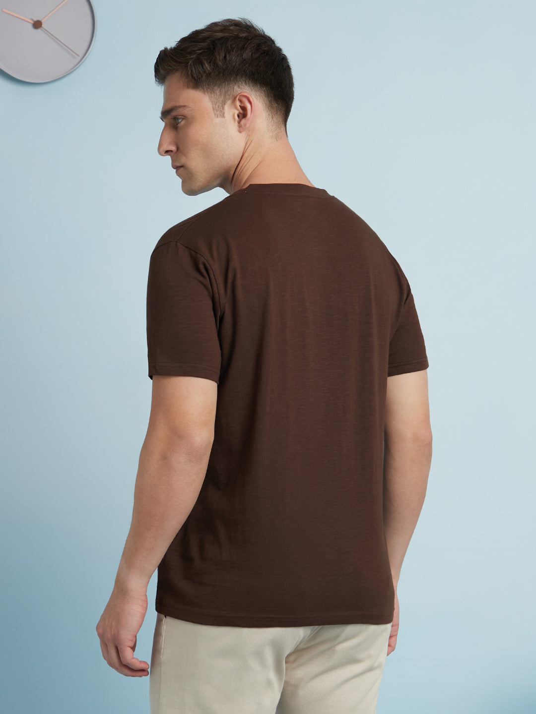Men Brown Solid Round Neck Half Sleeves Regular Fit T-Shirt