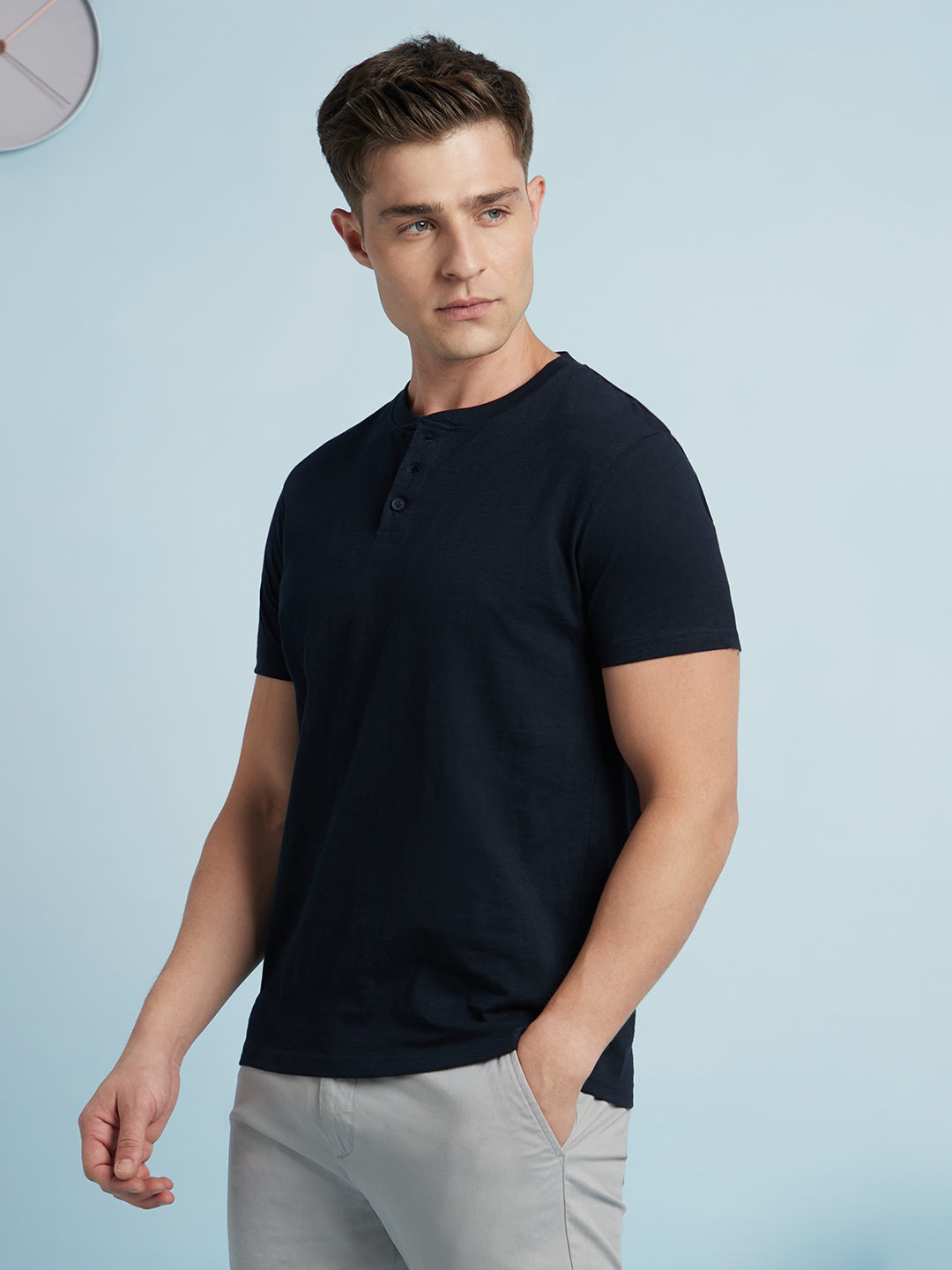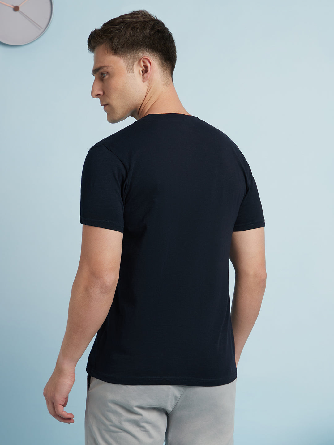 Men Navy Blue Solid Round Neck Half Sleeves Regular Fit T-Shirt