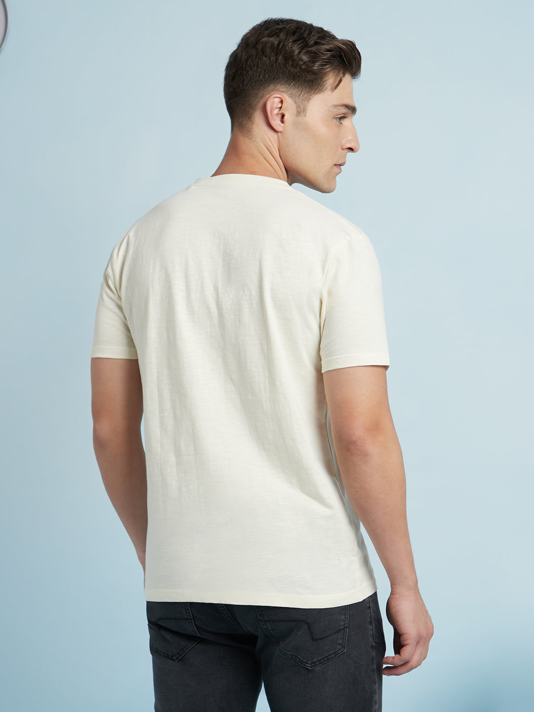 Men Off White Solid Round Neck Half Sleeves Regular Fit T-Shirt