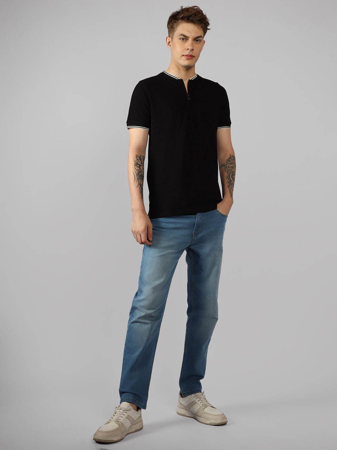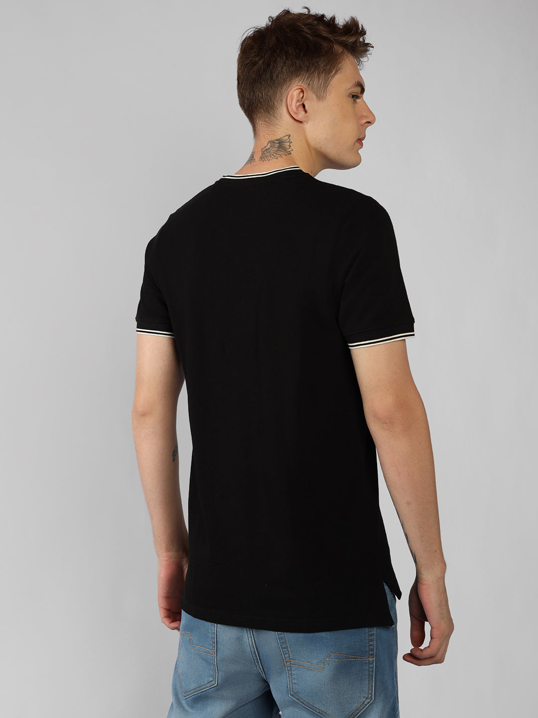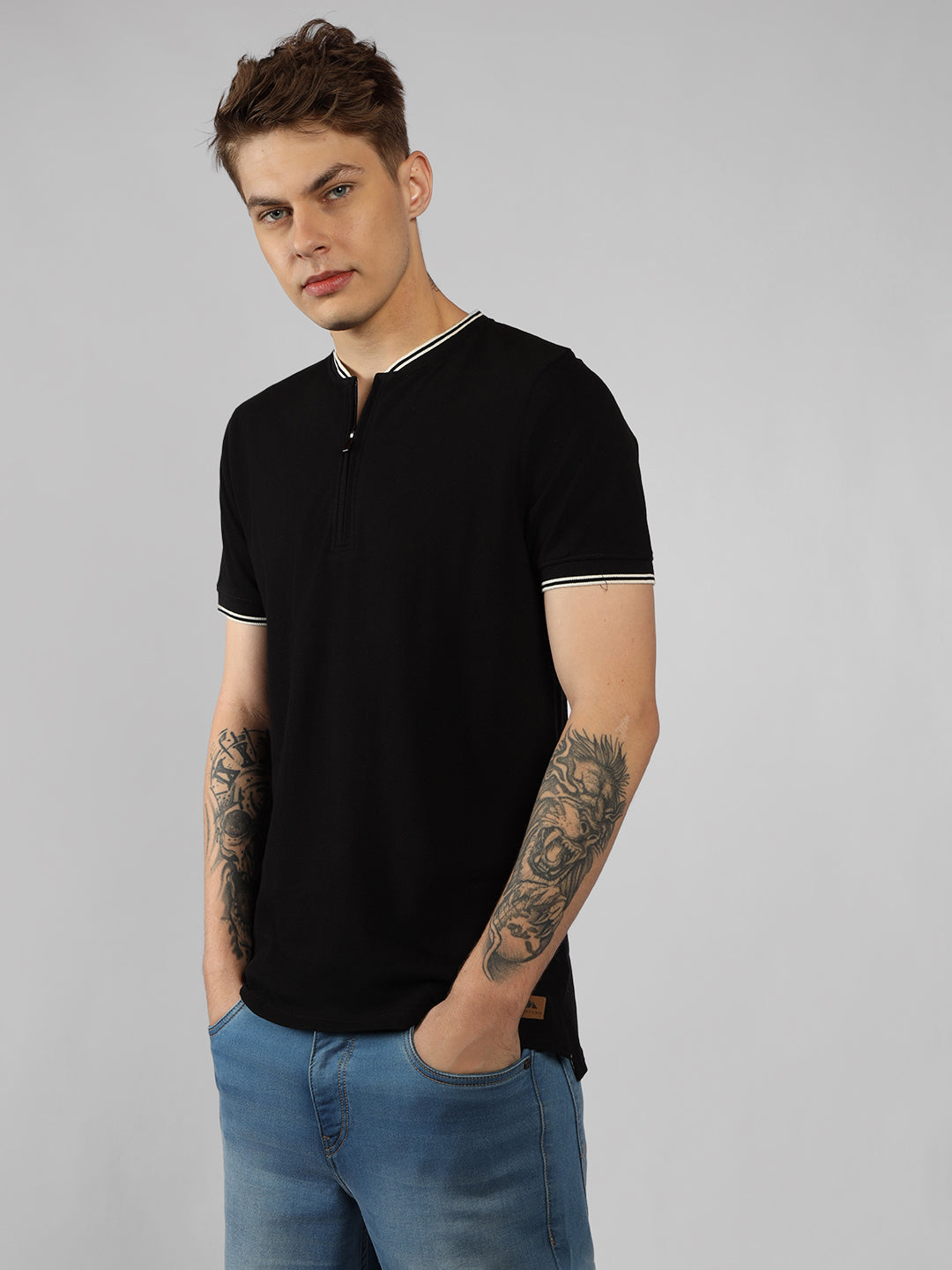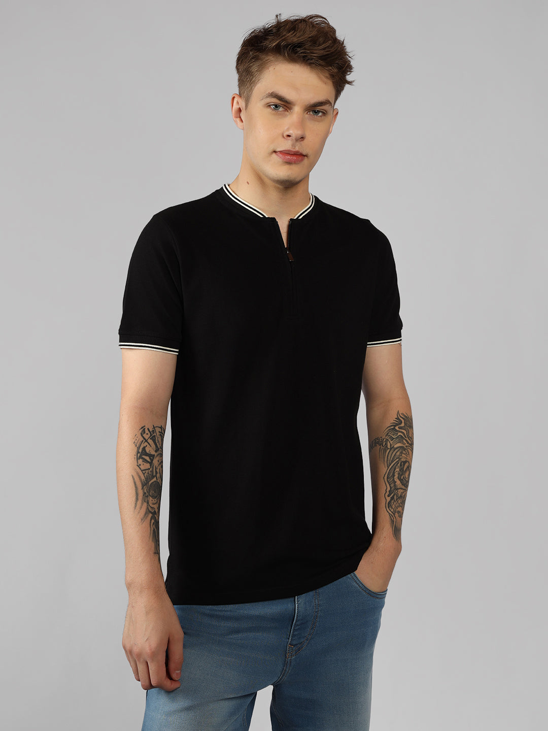 Men's Black Solid Henley Neck Half Sleeve Casual T-Shirt