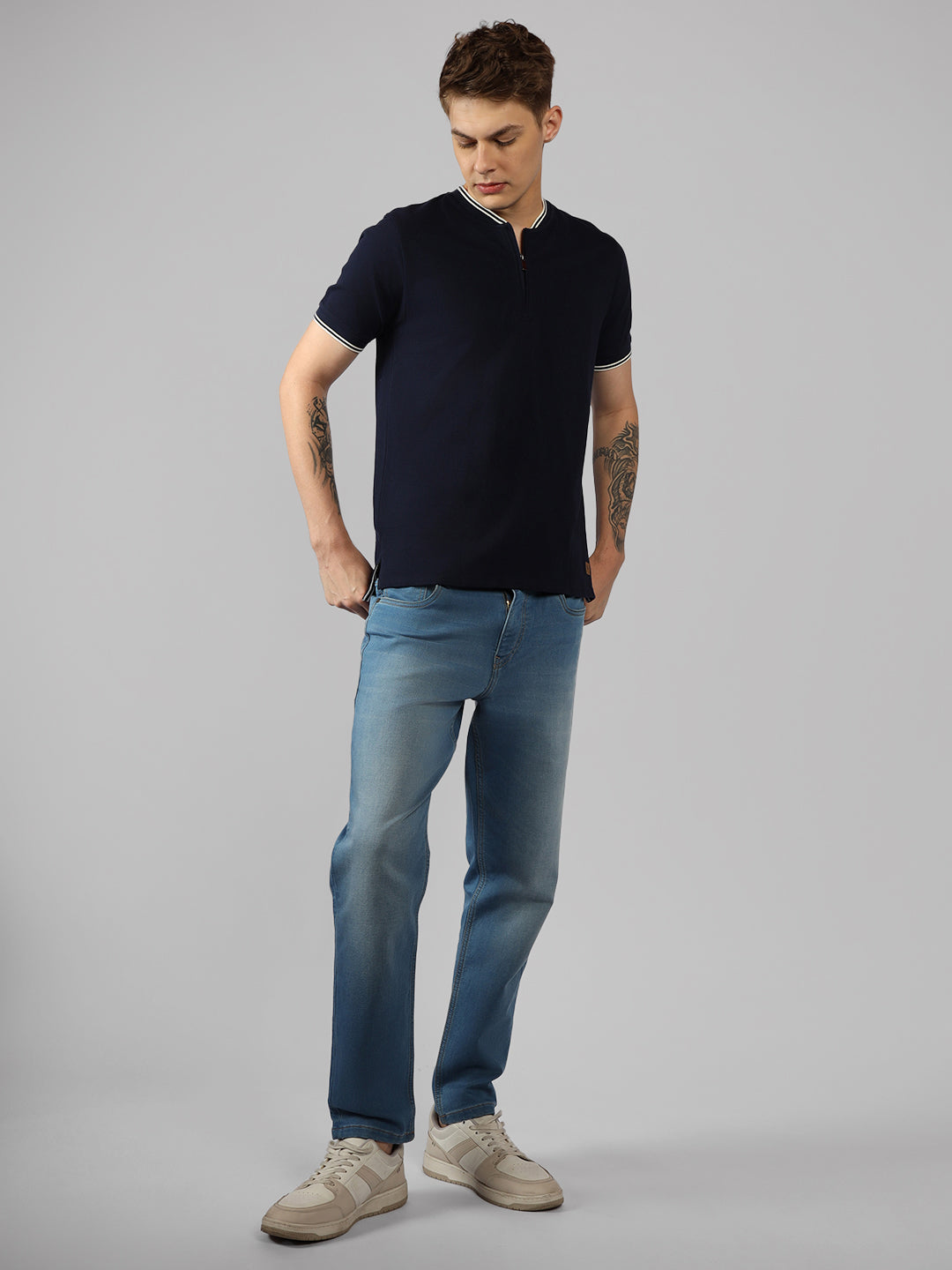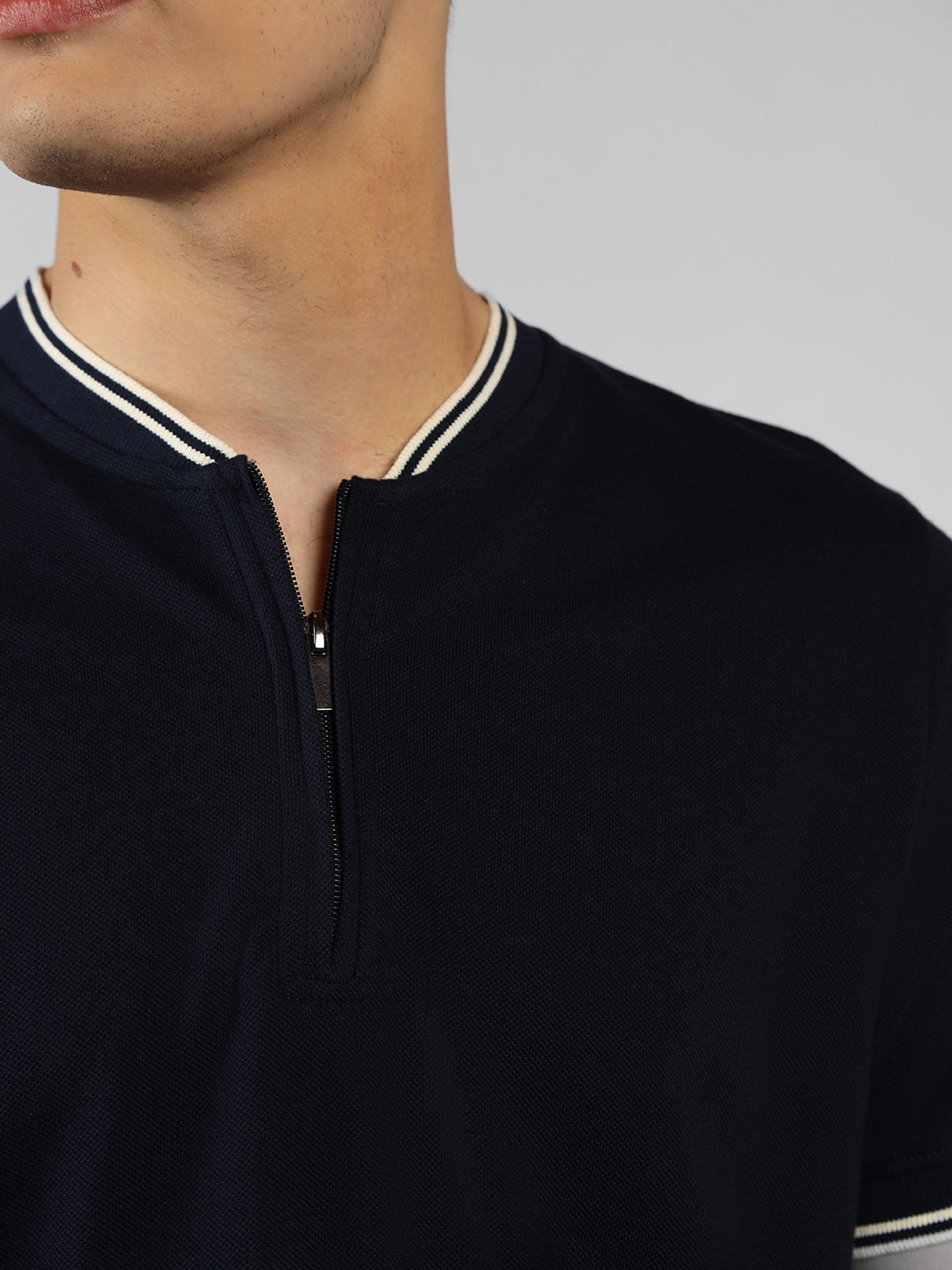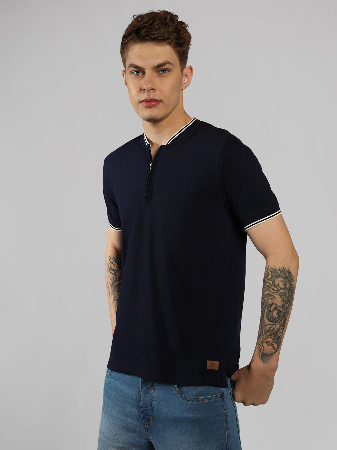 Men's Navy Solid Polo Collar Half Sleeve Casual T-Shirt