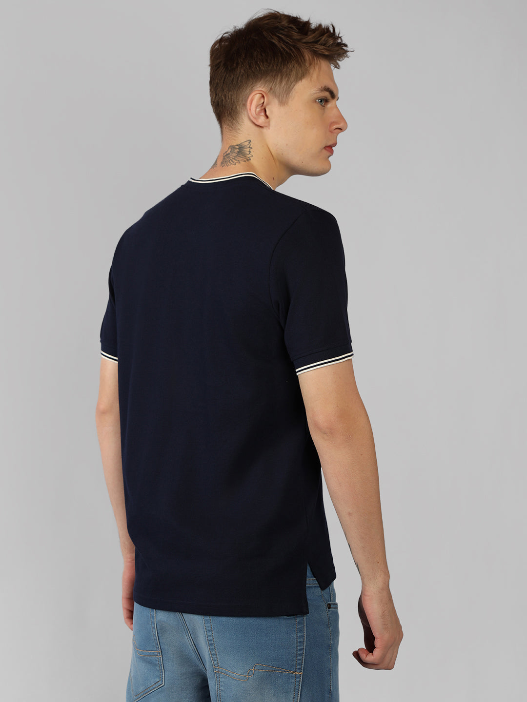 Men's Blue Solid Henley Neck Half Sleeve Casual T-Shirt