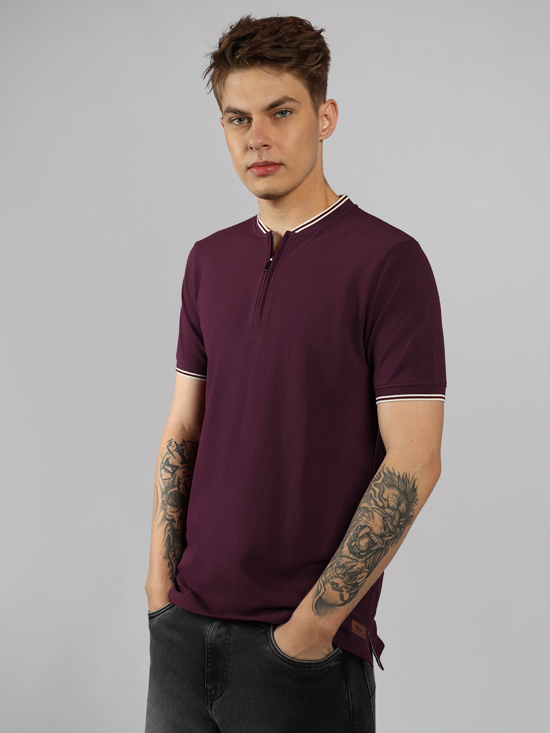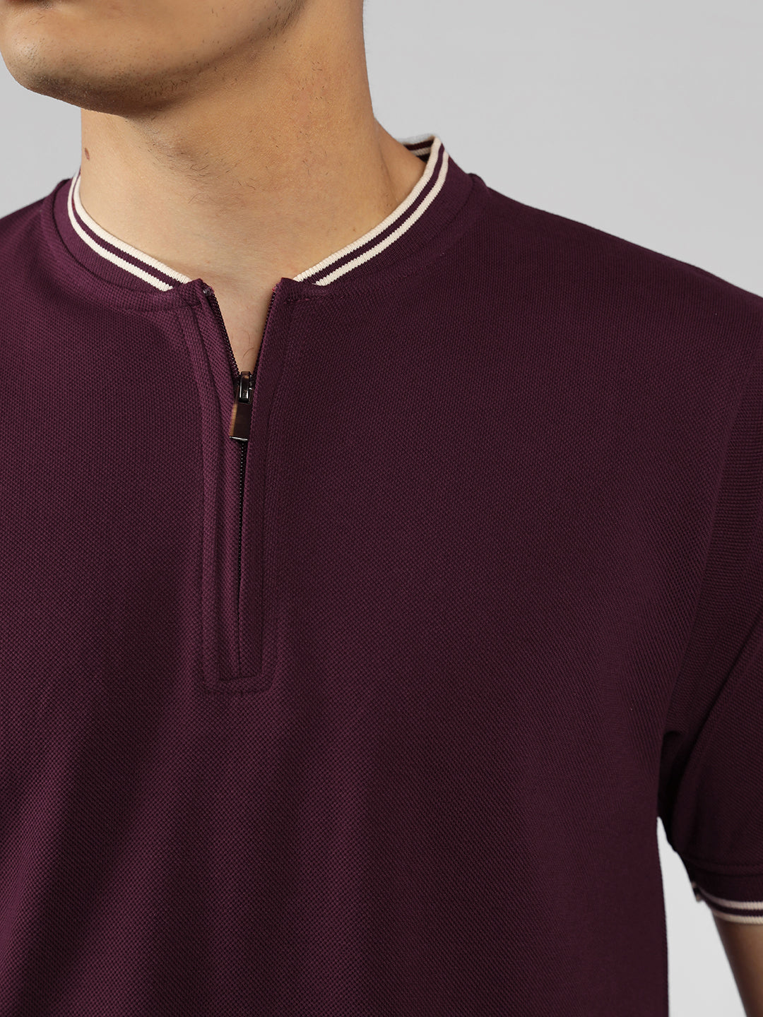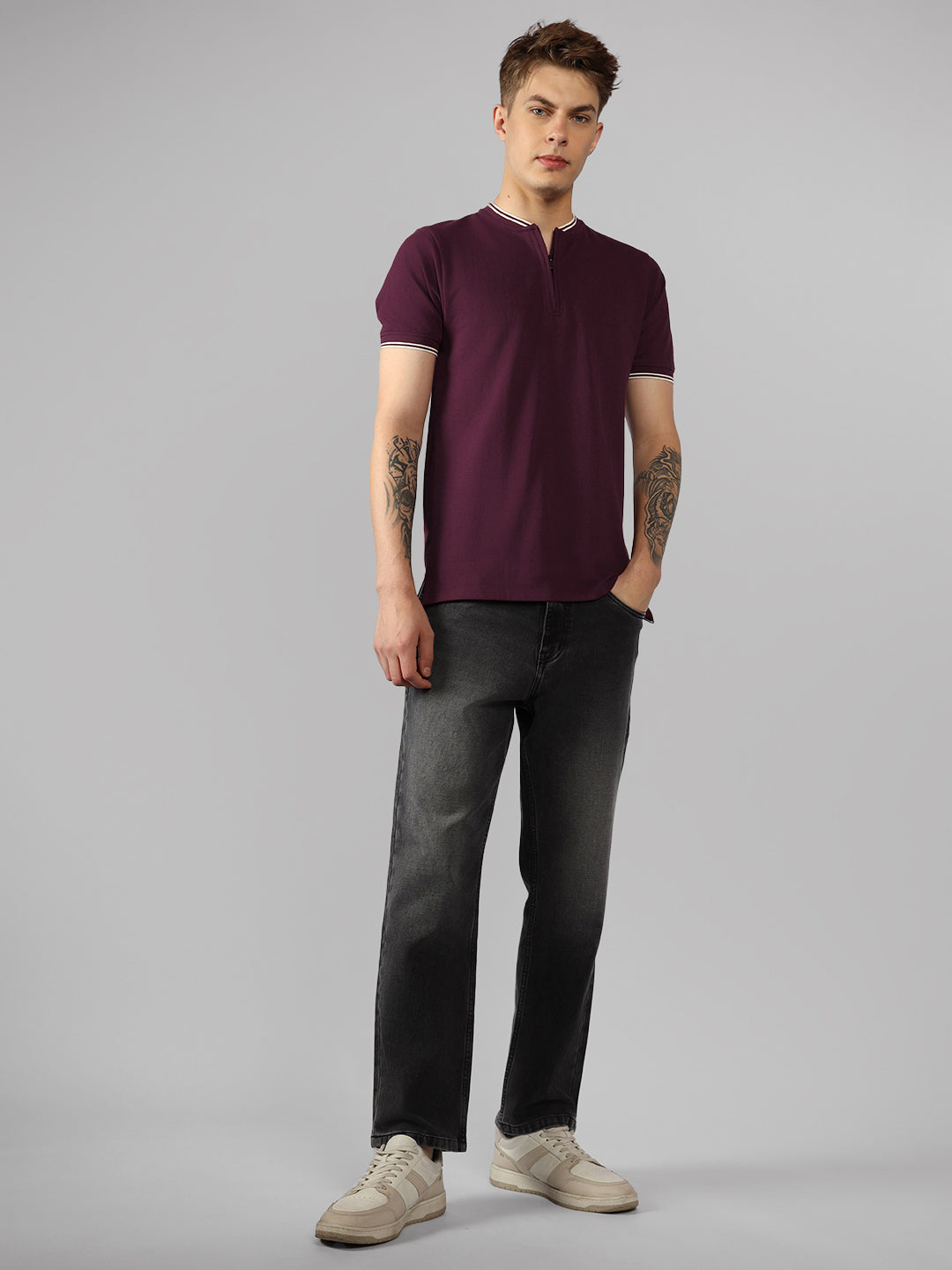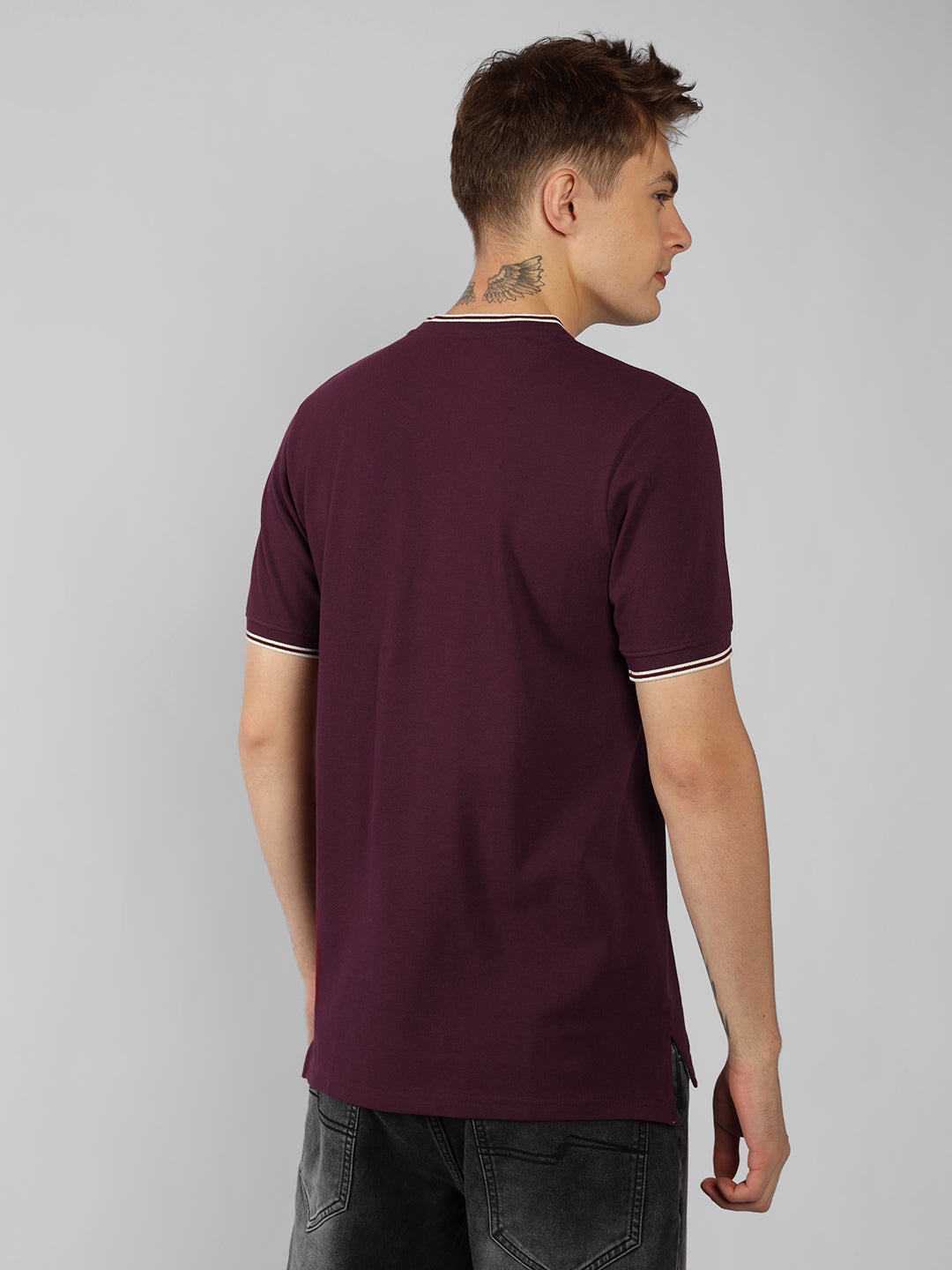 Men's Maroon Solid Henley Neck Half Sleeve Casual T-Shirt