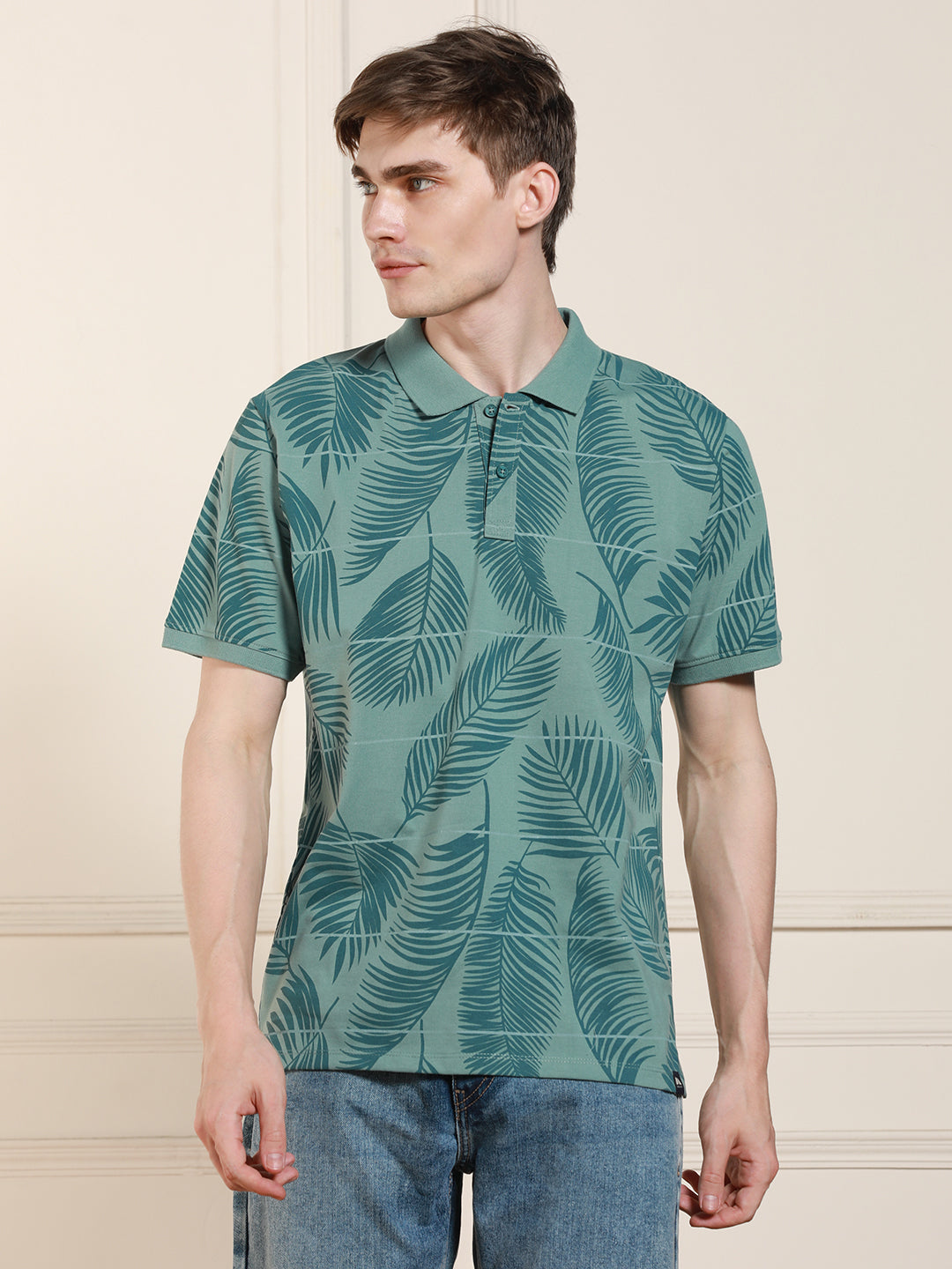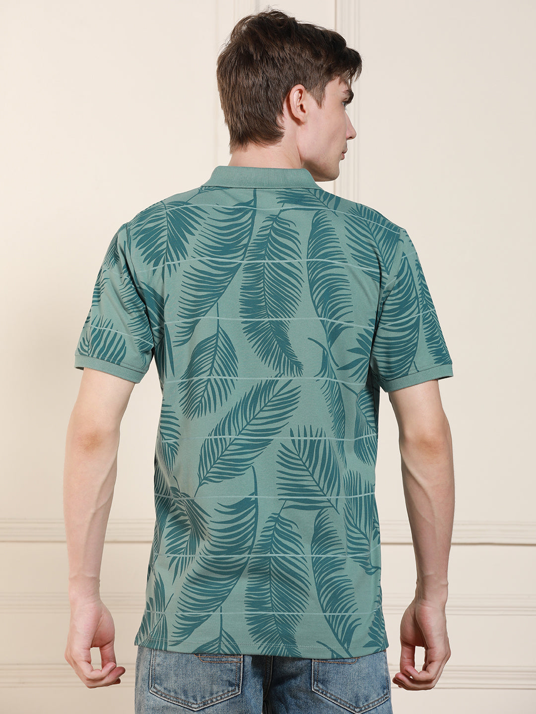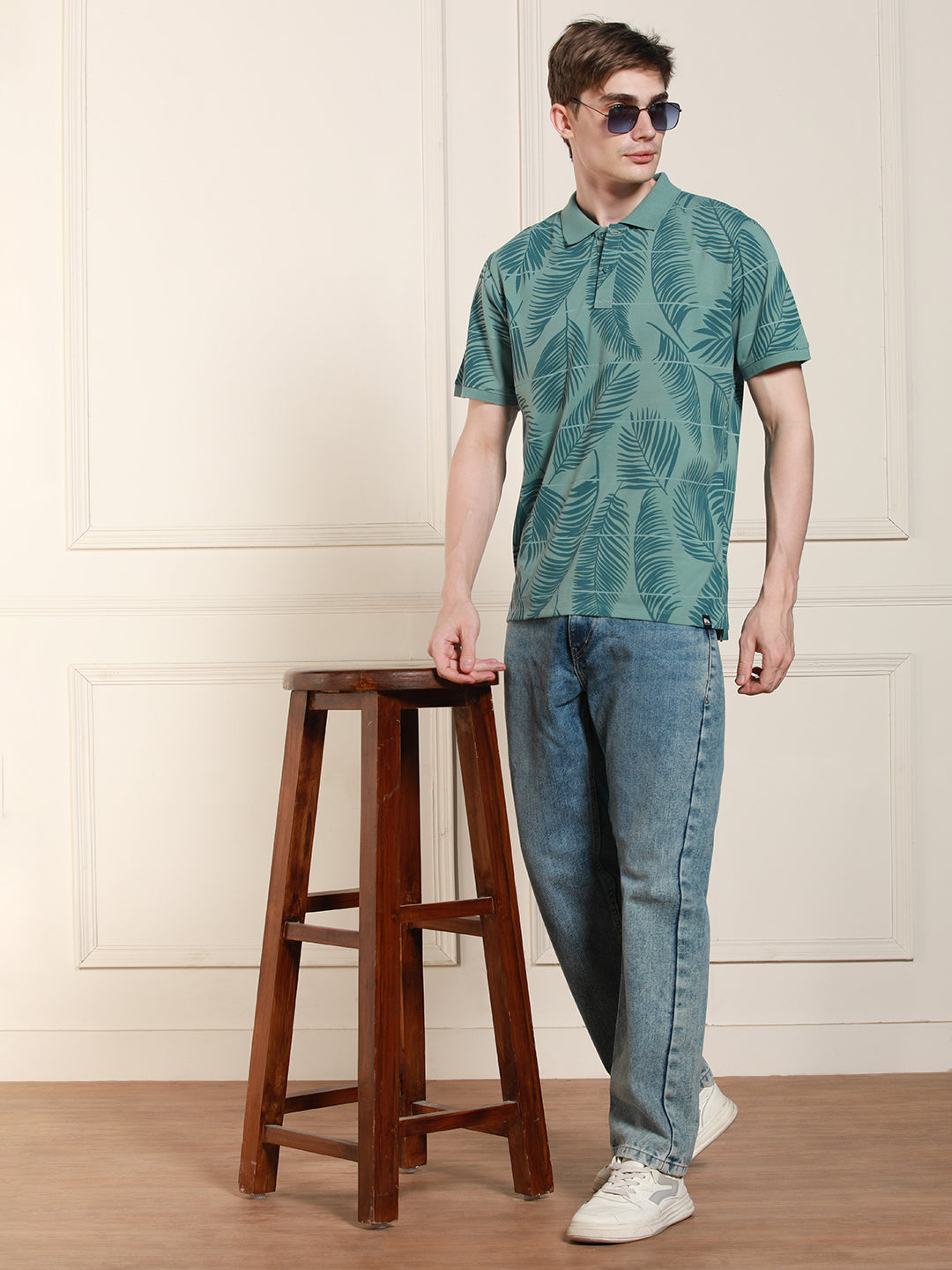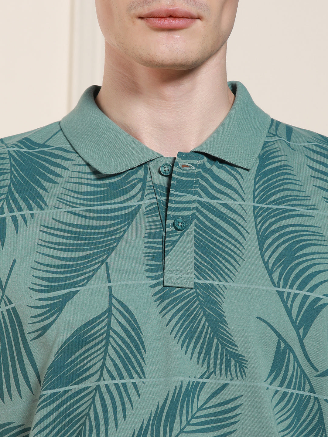 Men's Sage green Printed Polo Collar Half Sleeves T-shirt